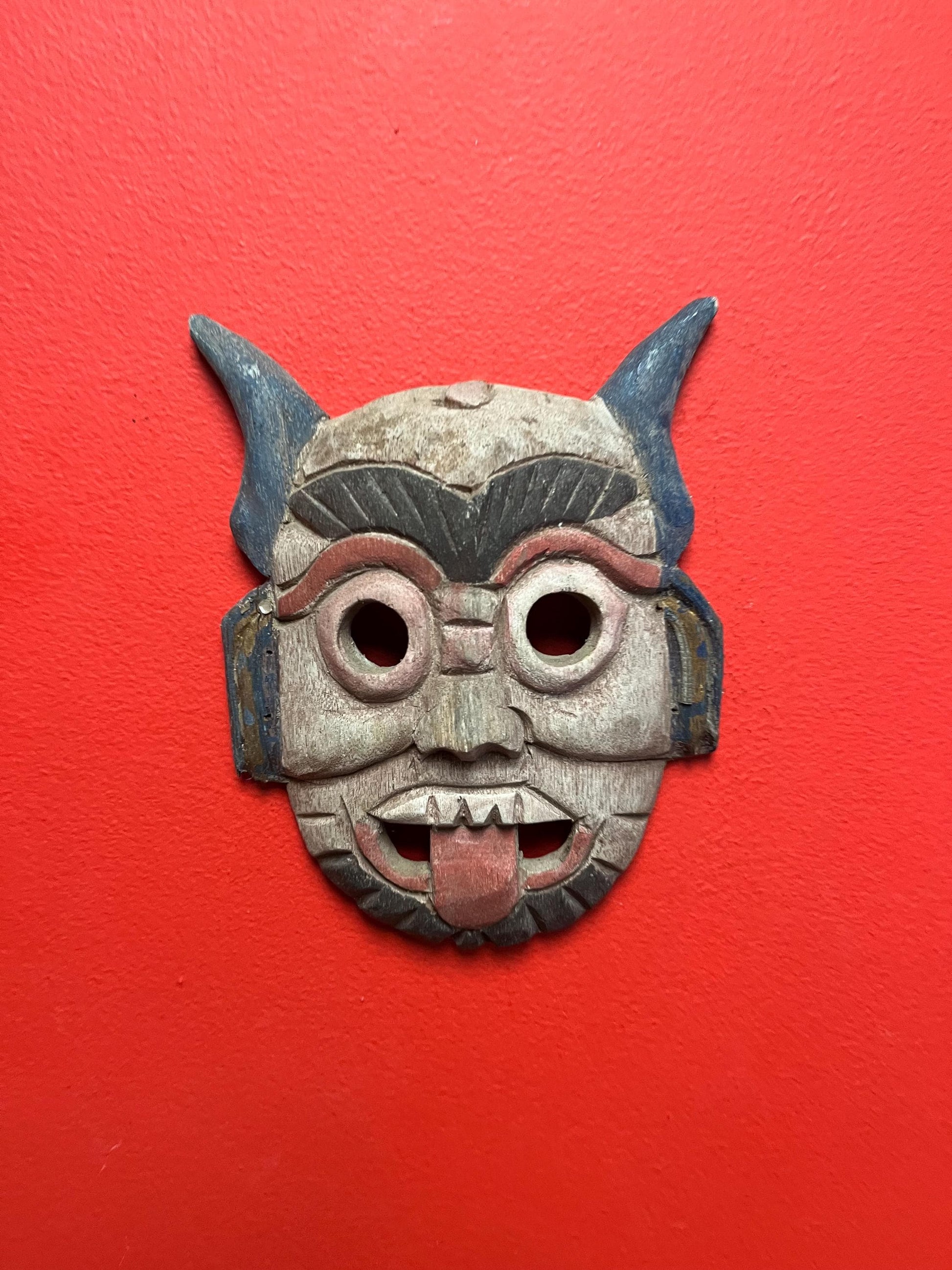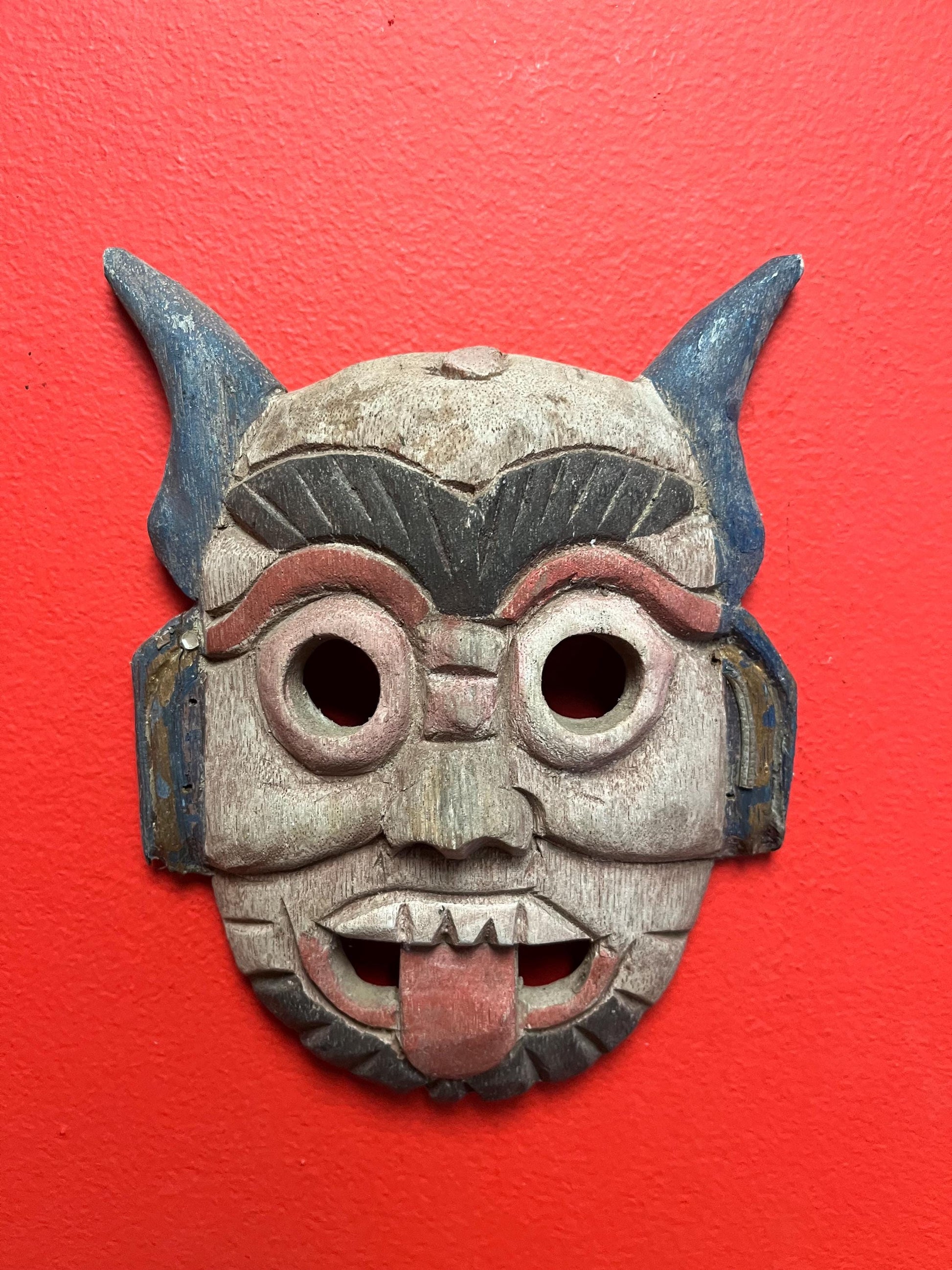 Lovely antique 8 x 6 Tibetan mask with great patina and ready to hang wow small crack