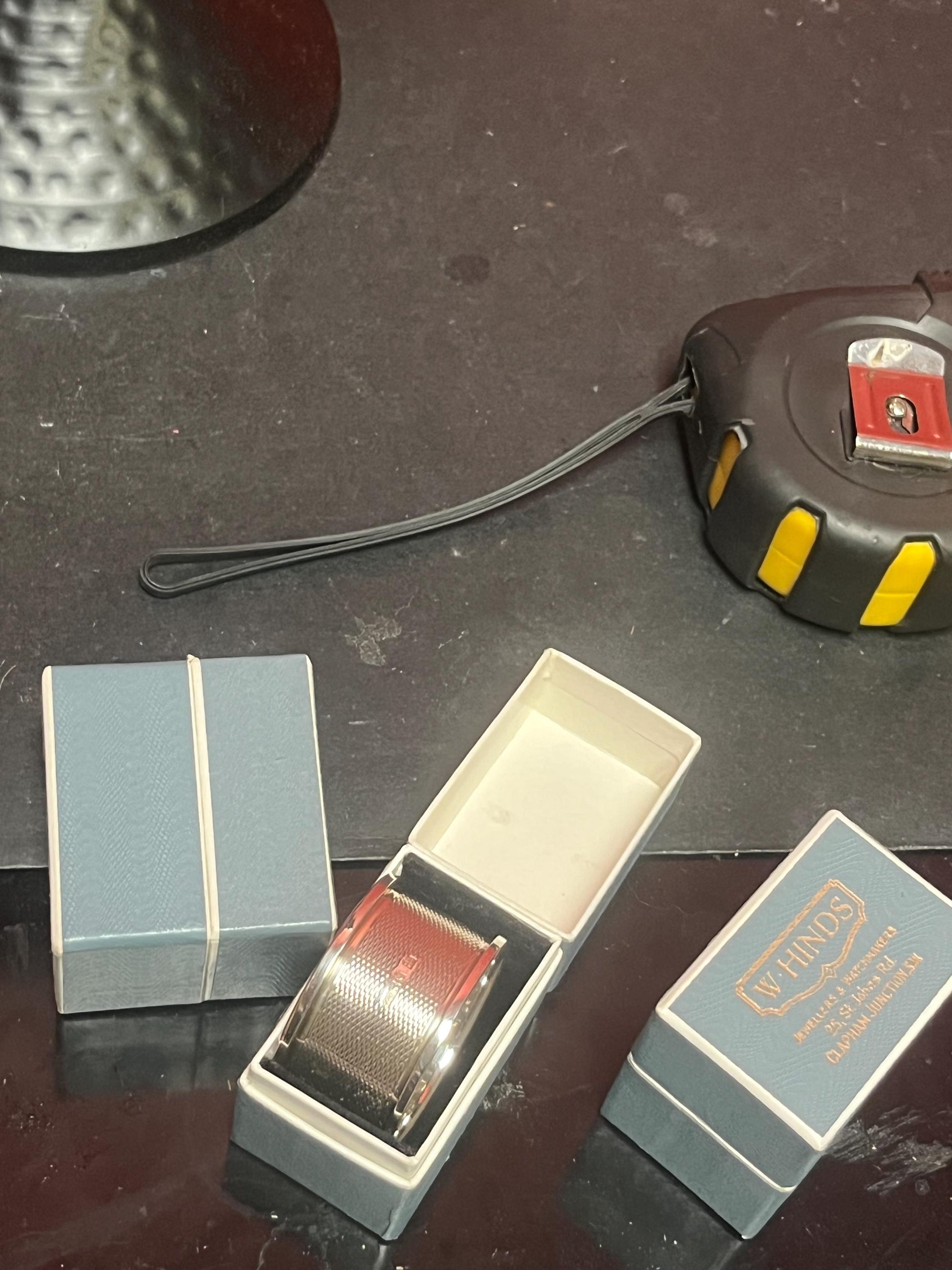 Lovely antique English hallmarked napkin ring with engine turning in original box monogrammed F 4 matching available all mint condition