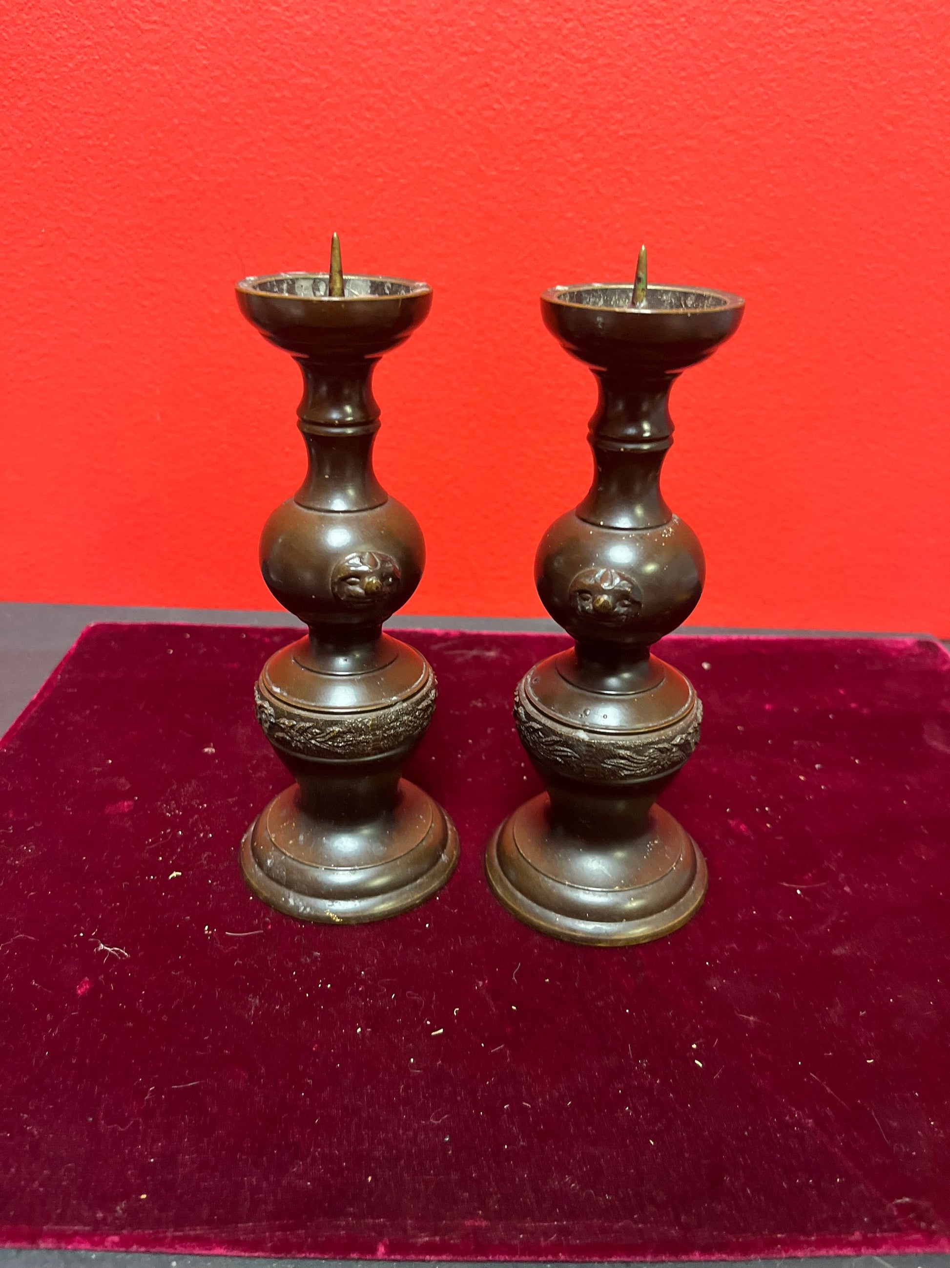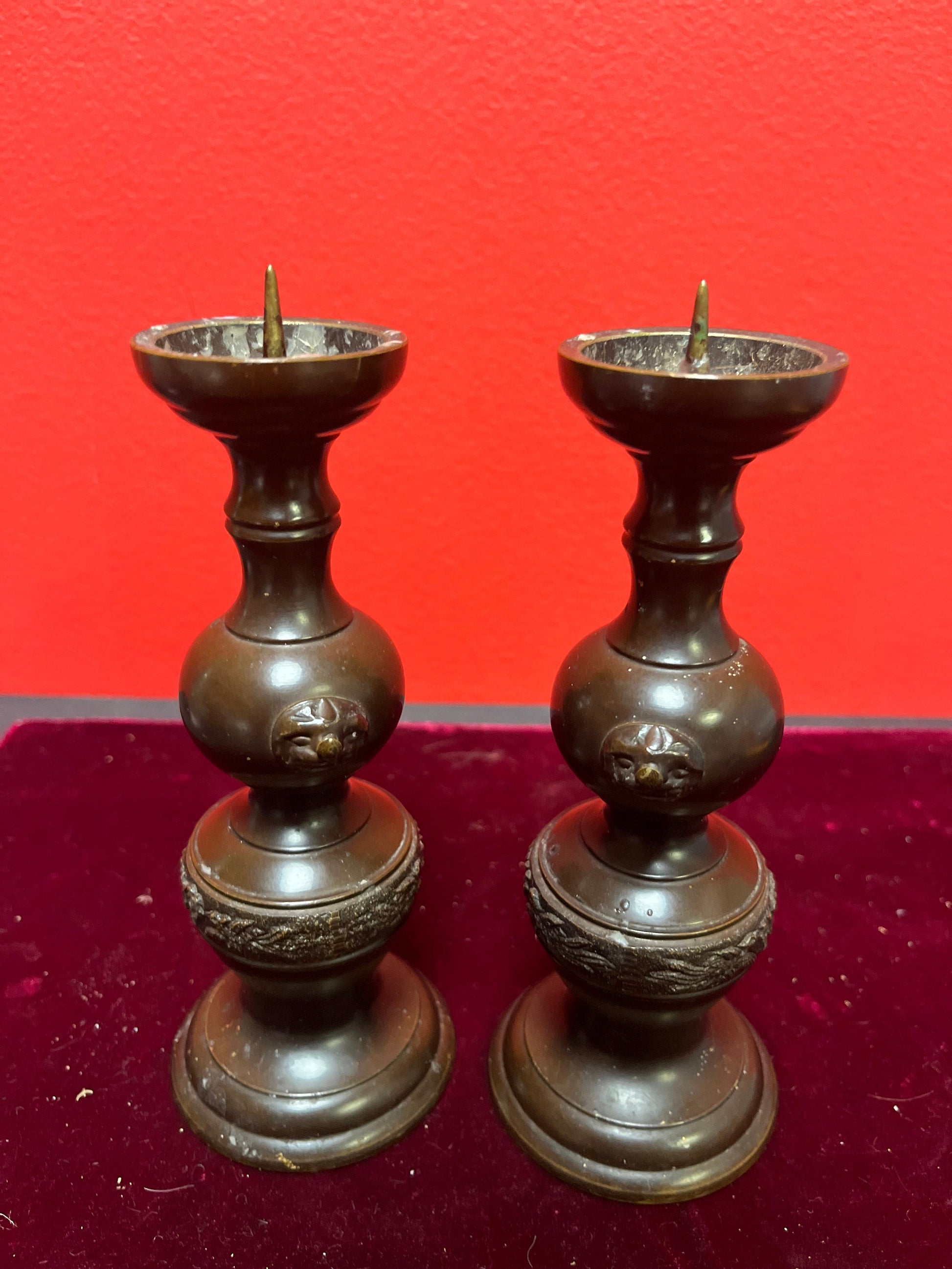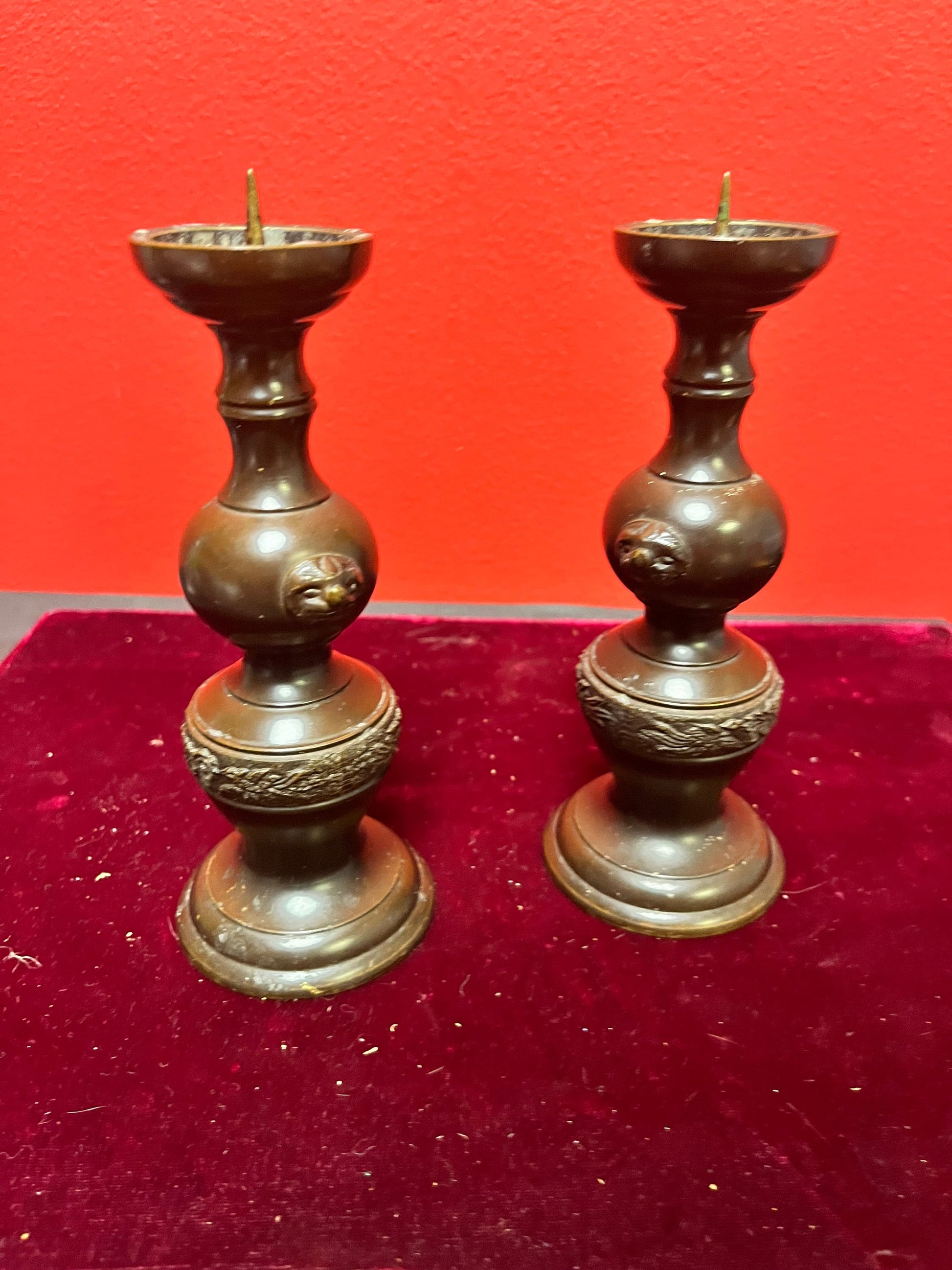 Lovely antique Japanese Meiji bronze 6 inch high candlesticks - great condition and a super gift wow
