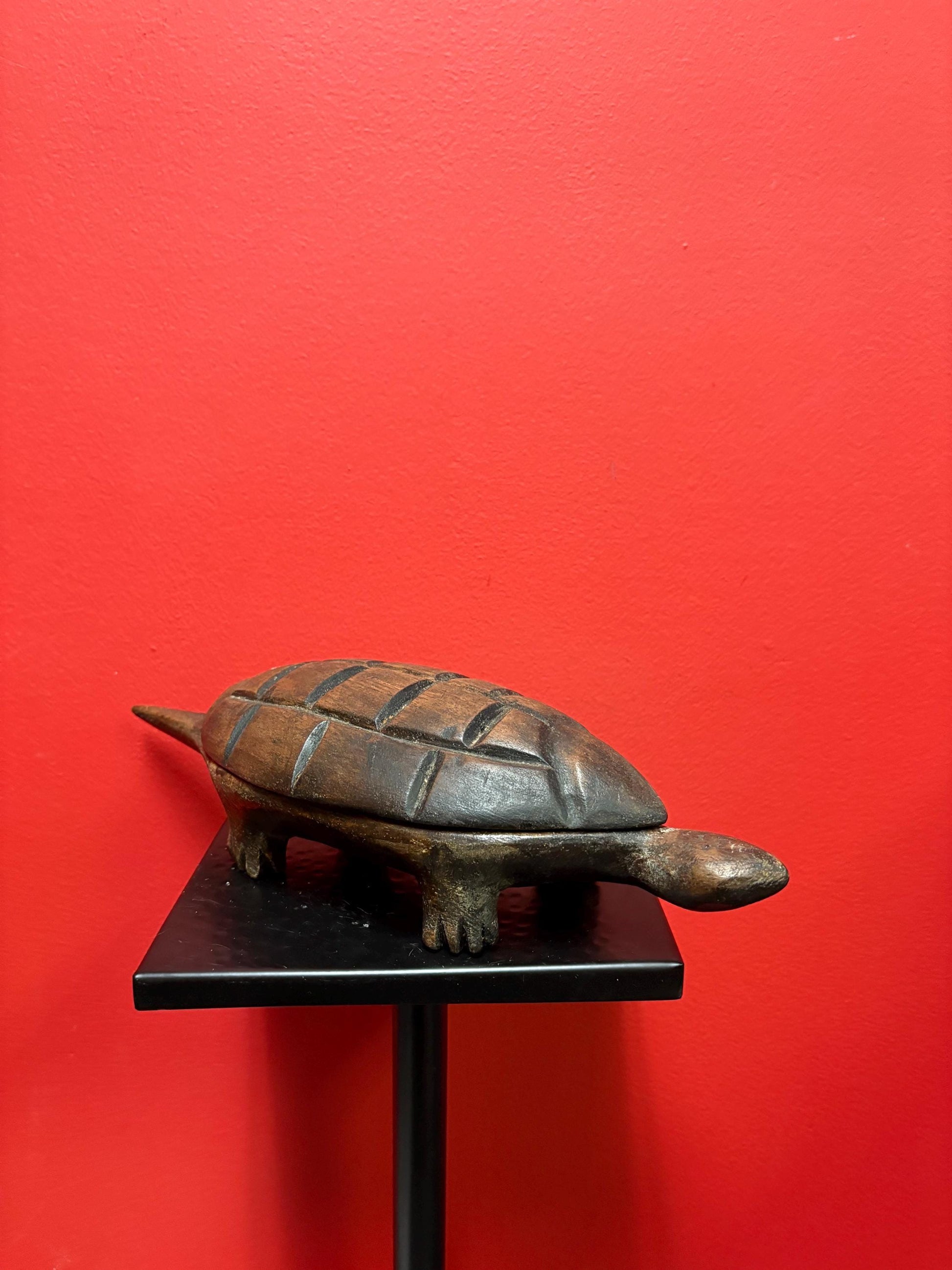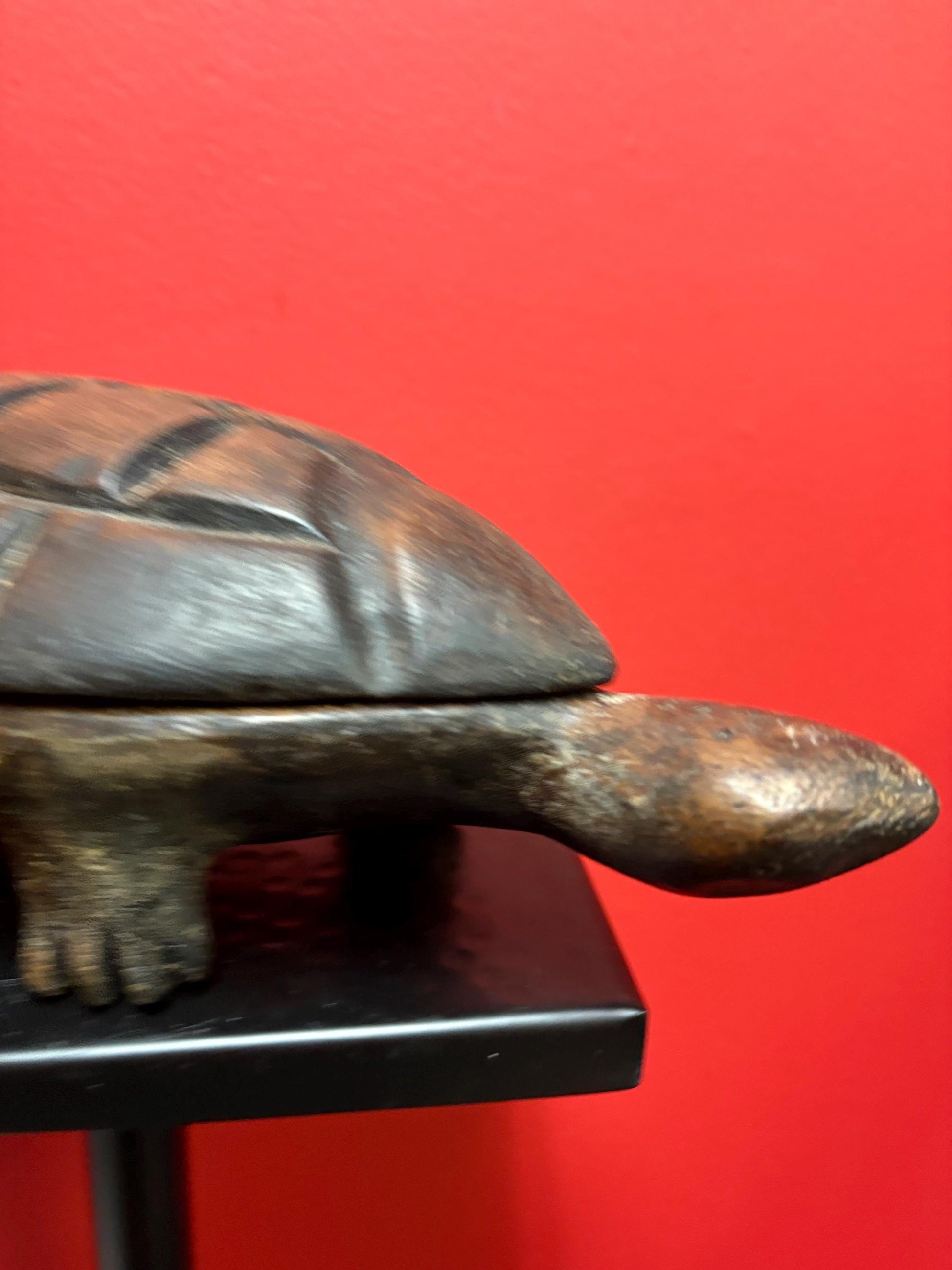 Lovely antique oceanic carved wooden turtle box very cool imagery and detail - great condition great gift 13 inches long heavy