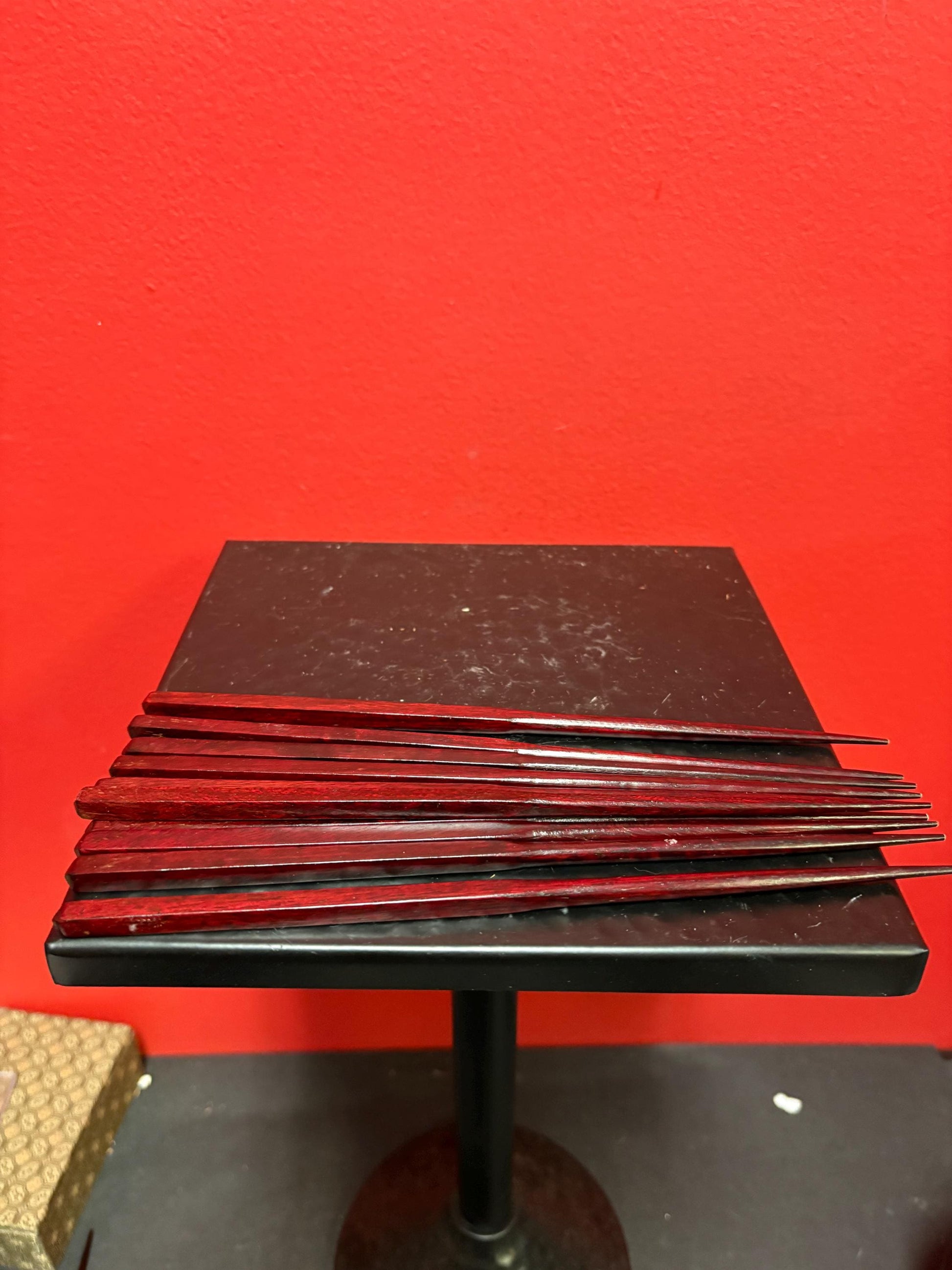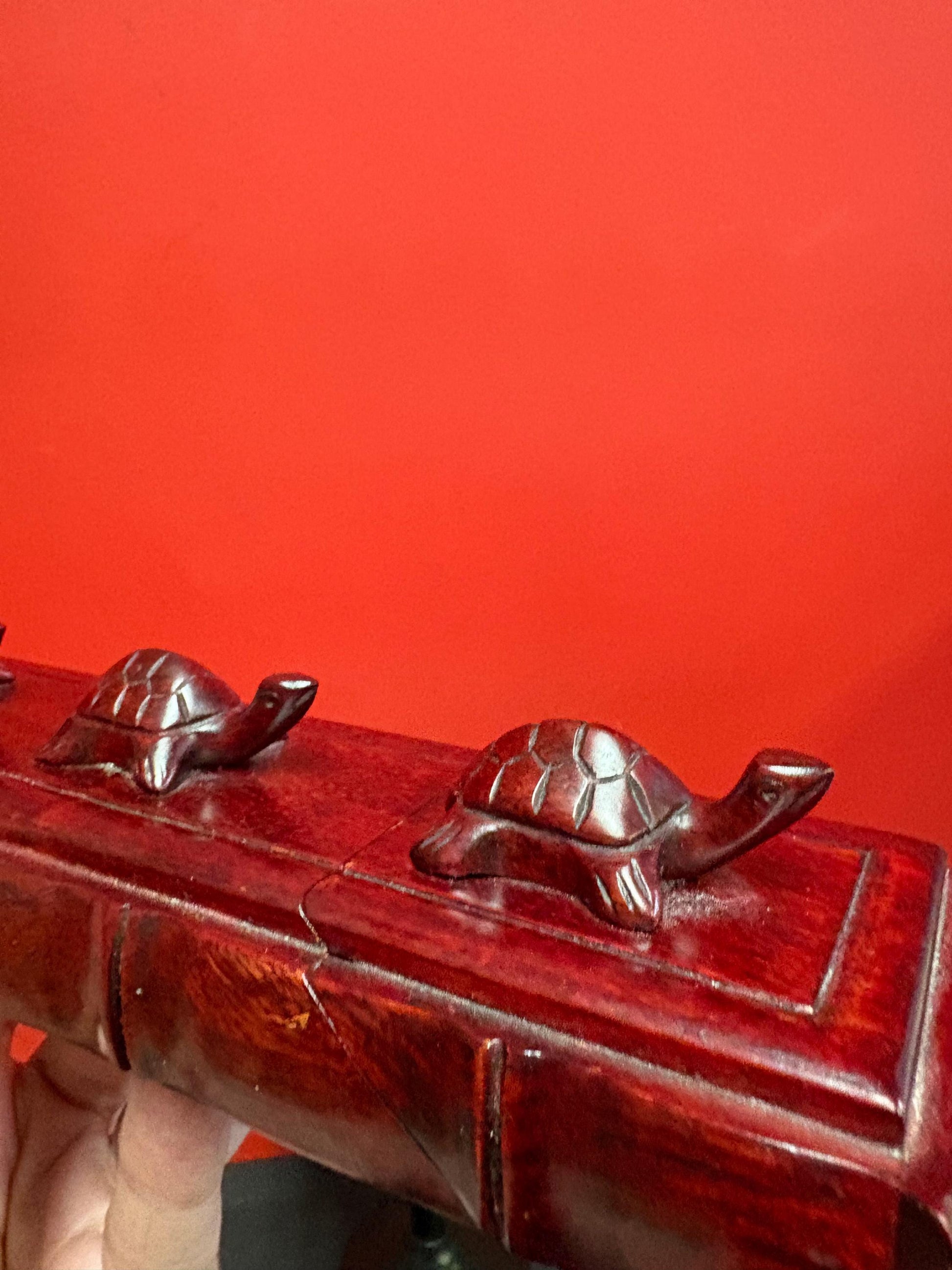 Lovely Asian Rosewood chopstick box with turtles on top 9 inches long comes with five sets of chopsticks wonderful gift