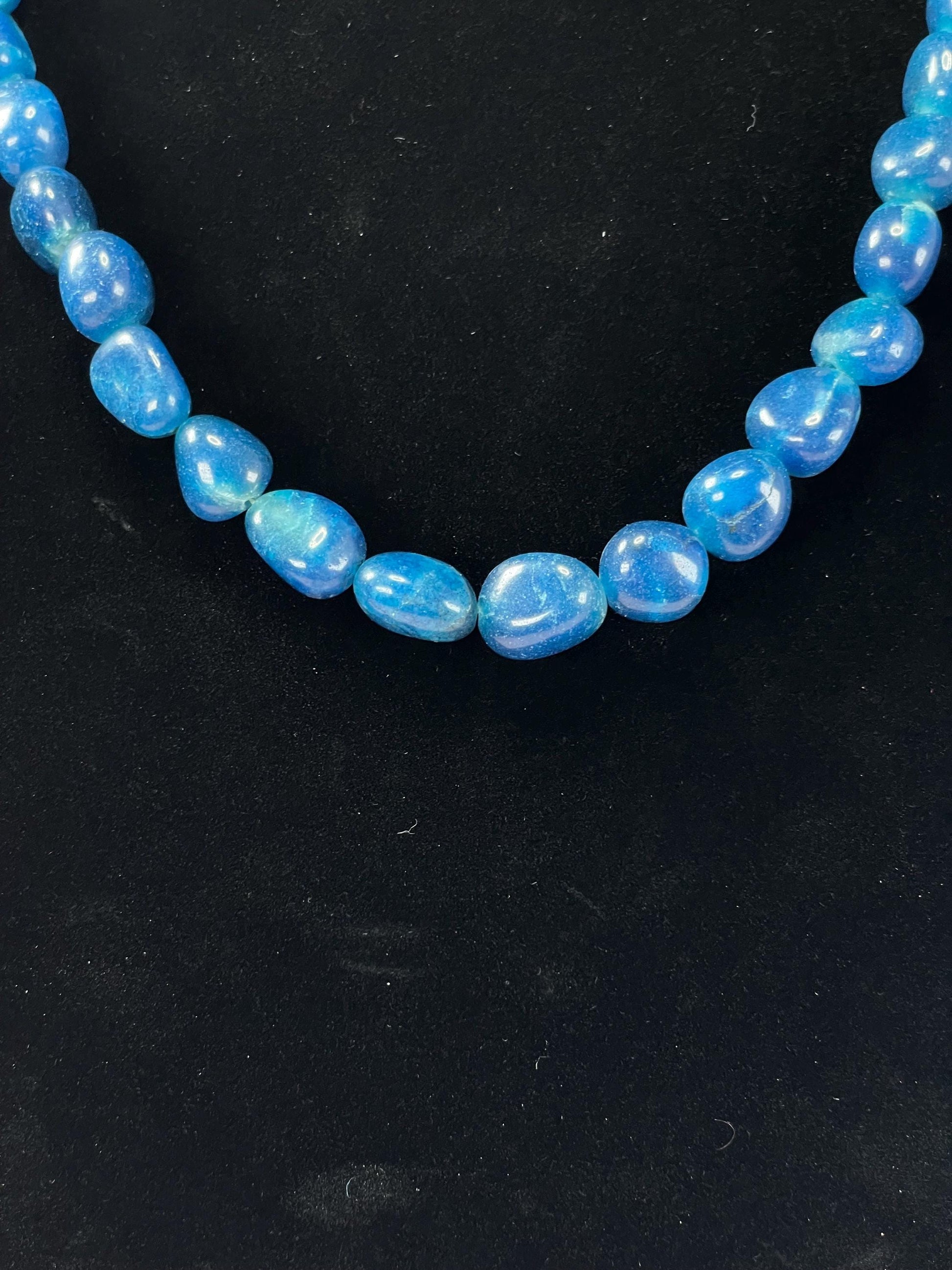 This necklace features stunning blue glass beads for a stylish, elegant look. Perfect for any occasion. Approx 22 inches