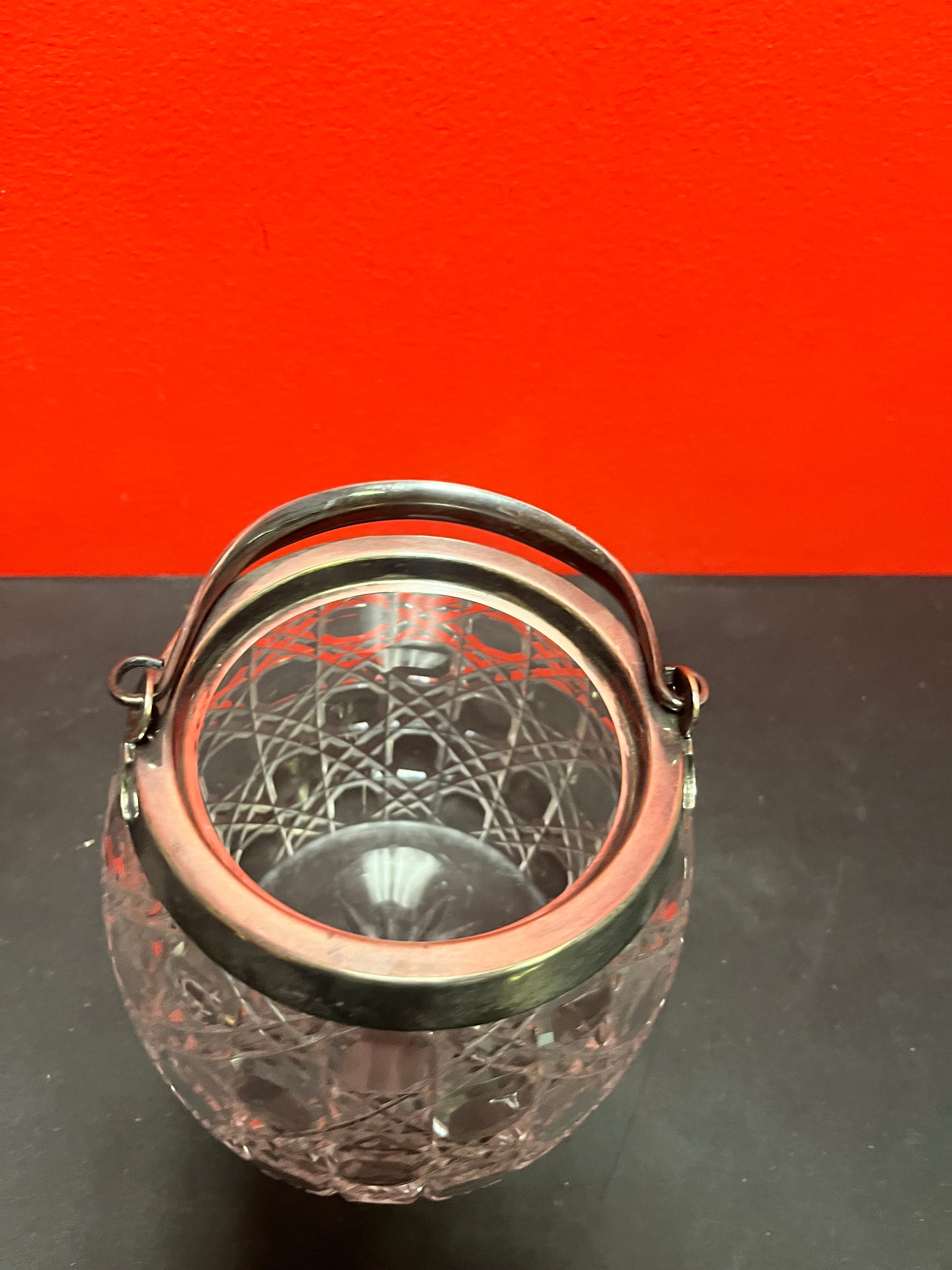 Lovely English silver plated and crystal 9 inch tall cookie jar perfect condition. a great gift or for your own home