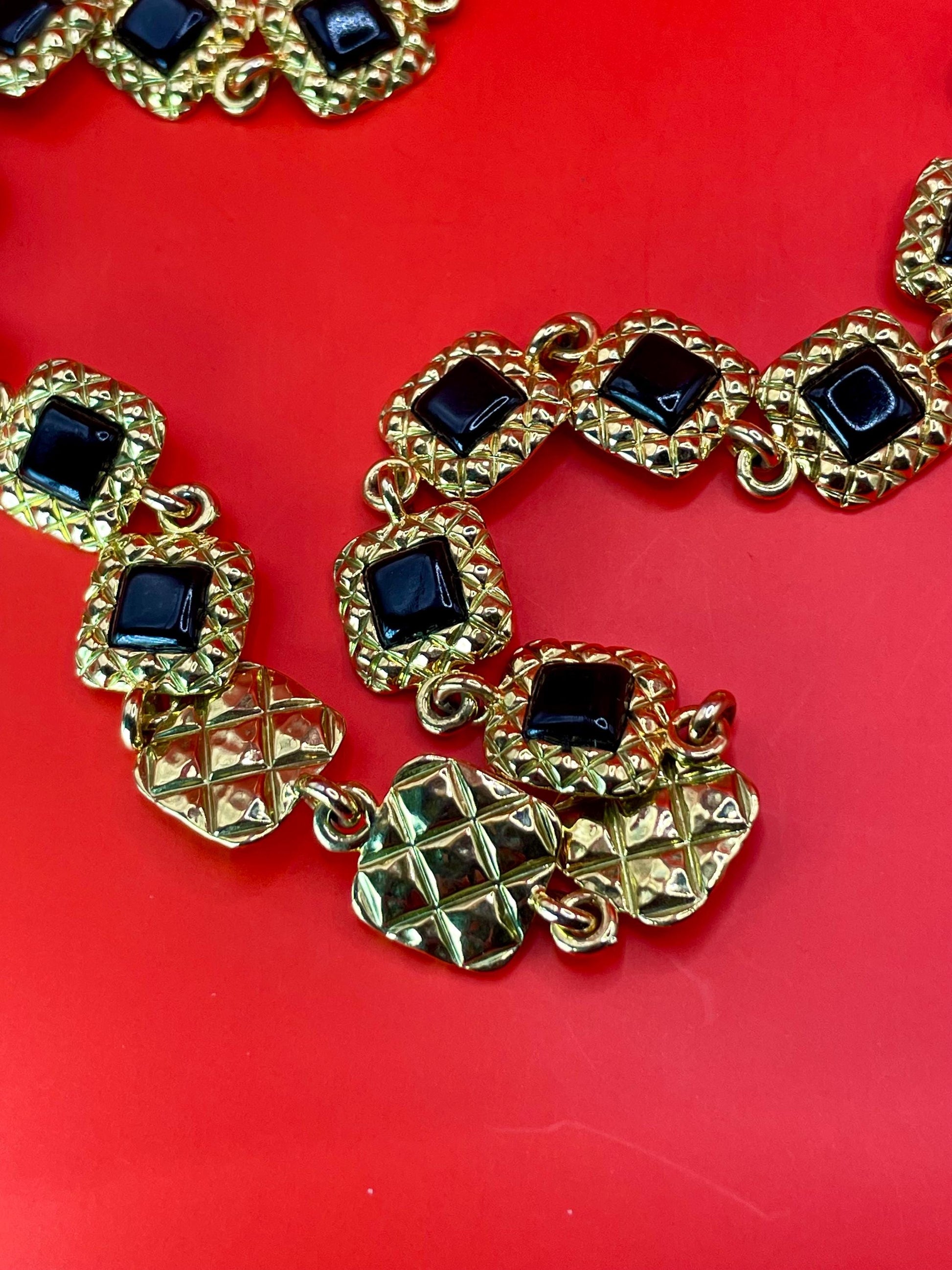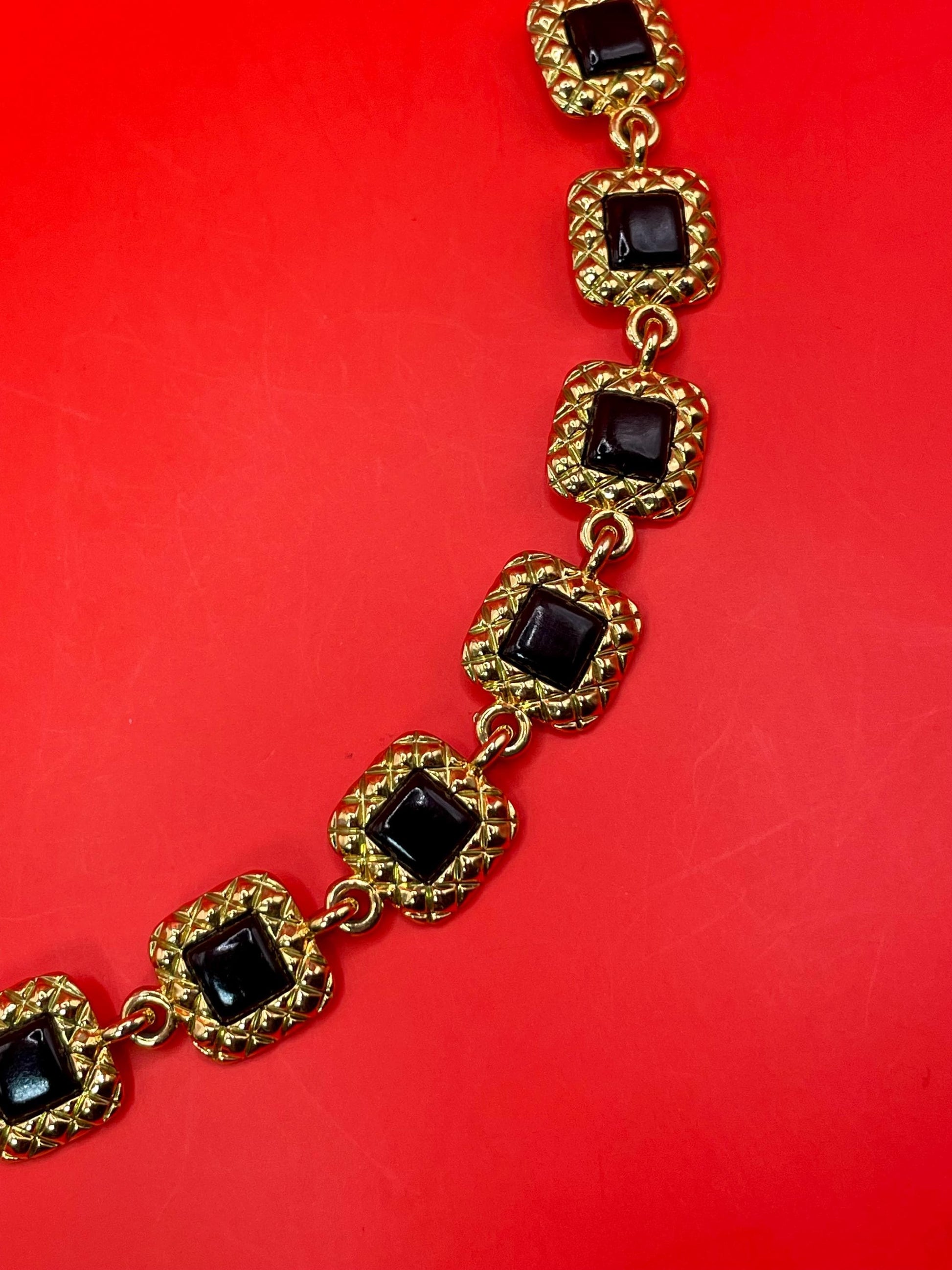 Stunning gold toned necklace with black accent beads. Elegant and classy.
