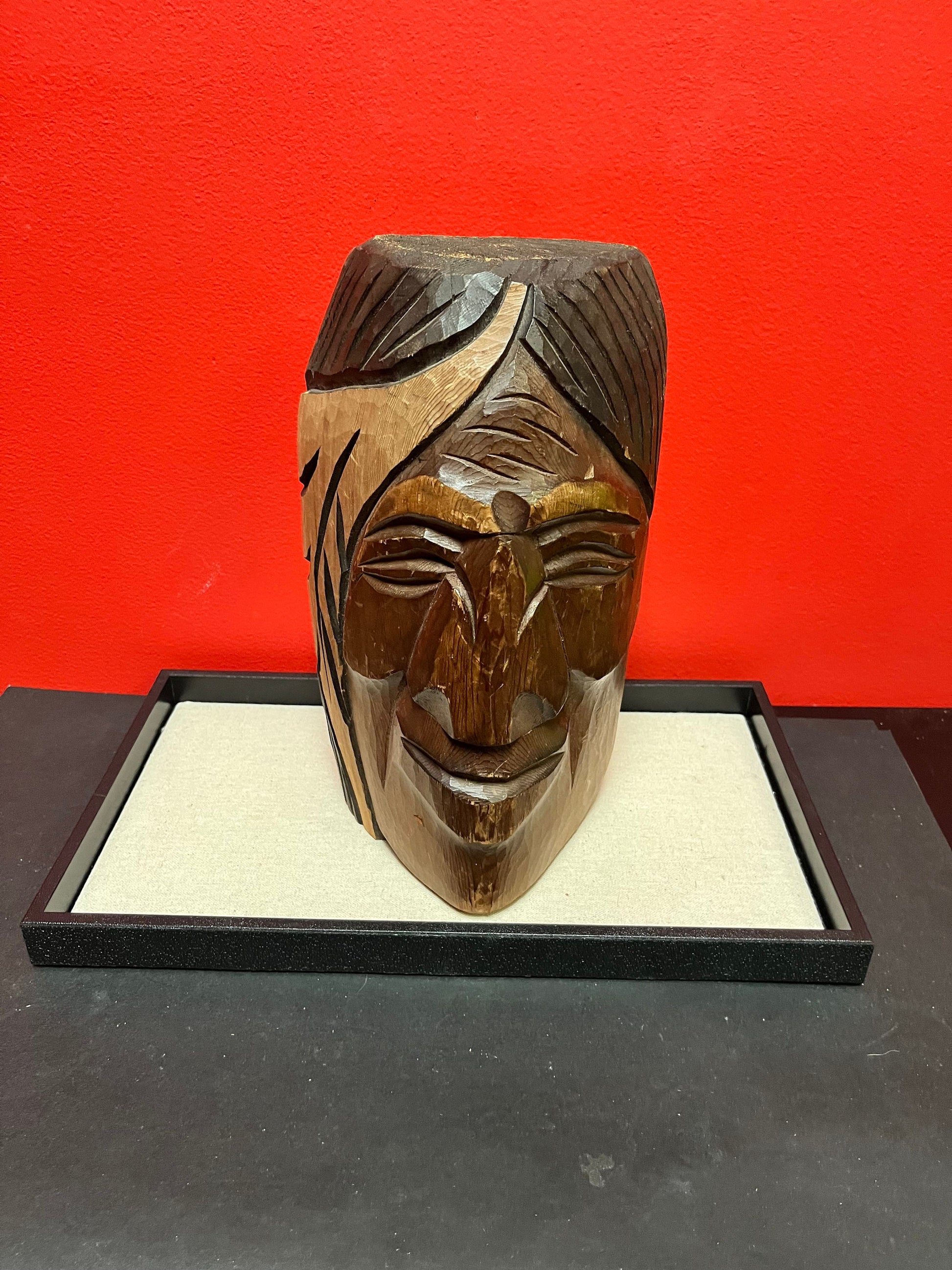 Lovely, heavy 9 inch tall indigenous First Nations pacific northwest coast bust of a chief signed on back unique piece