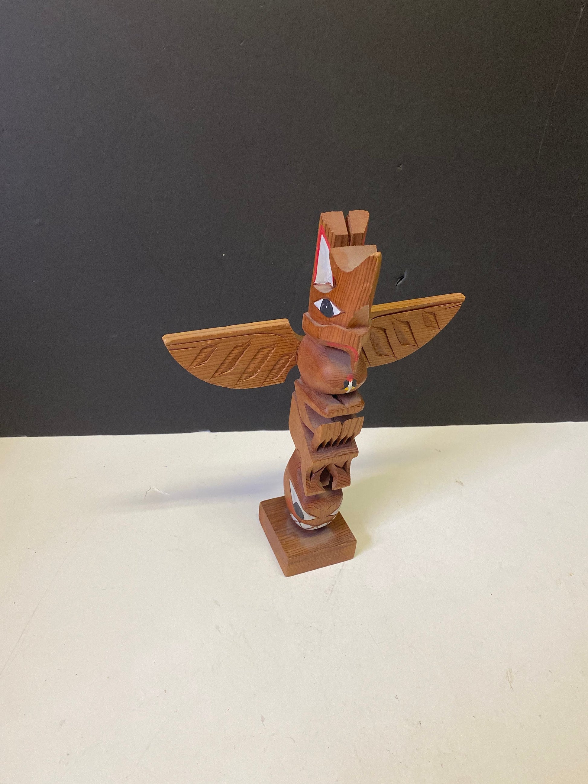 Lovely indigenous antique folk art 10 x 8 totem pole unsigned Well detailed and painted- First Nations native art Great price
