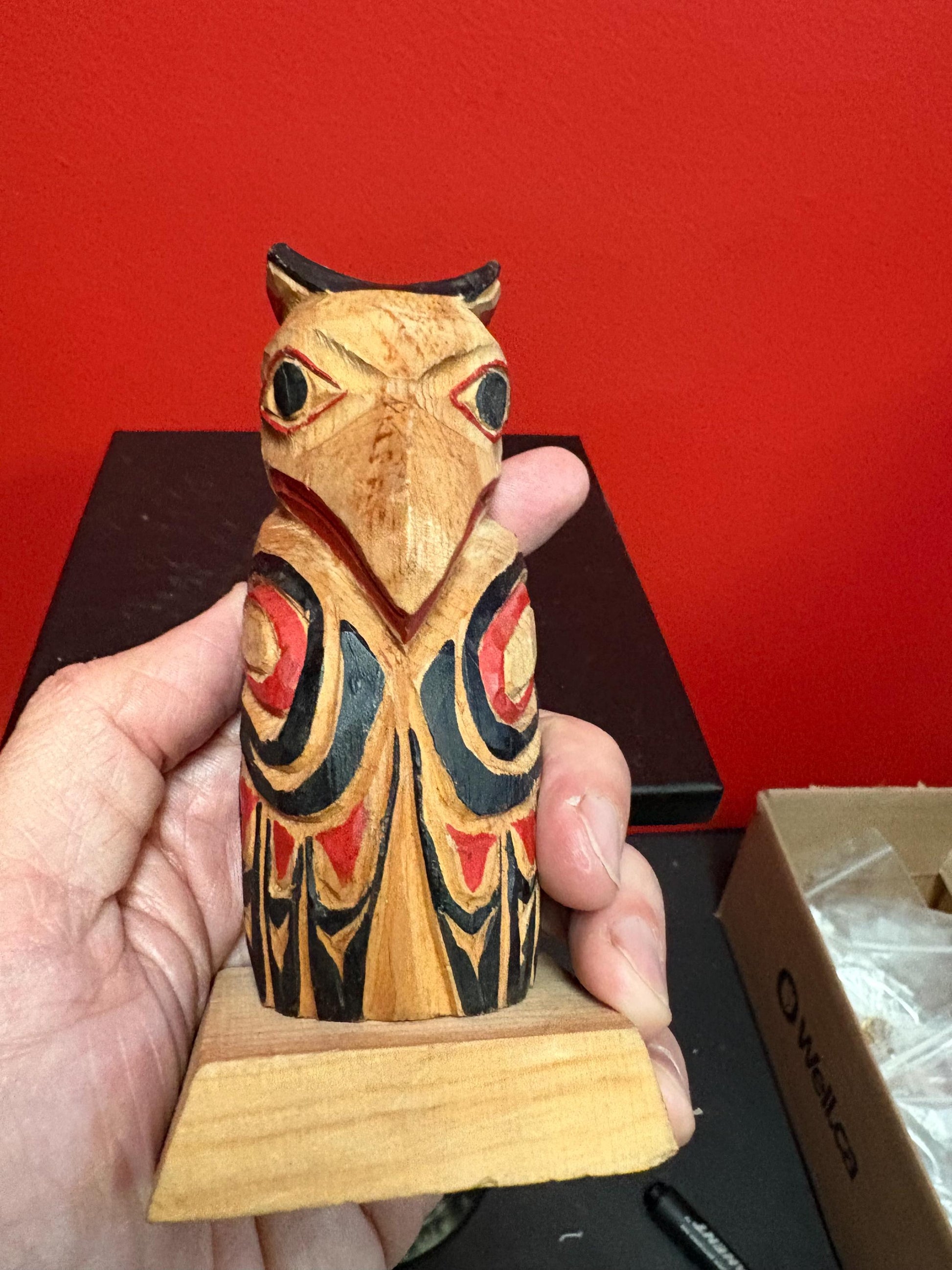 Lovely indigenous first nation pacific north West Coast 5 inch tall Thunderbird totem attributed to Bradley Joseph Junior great value