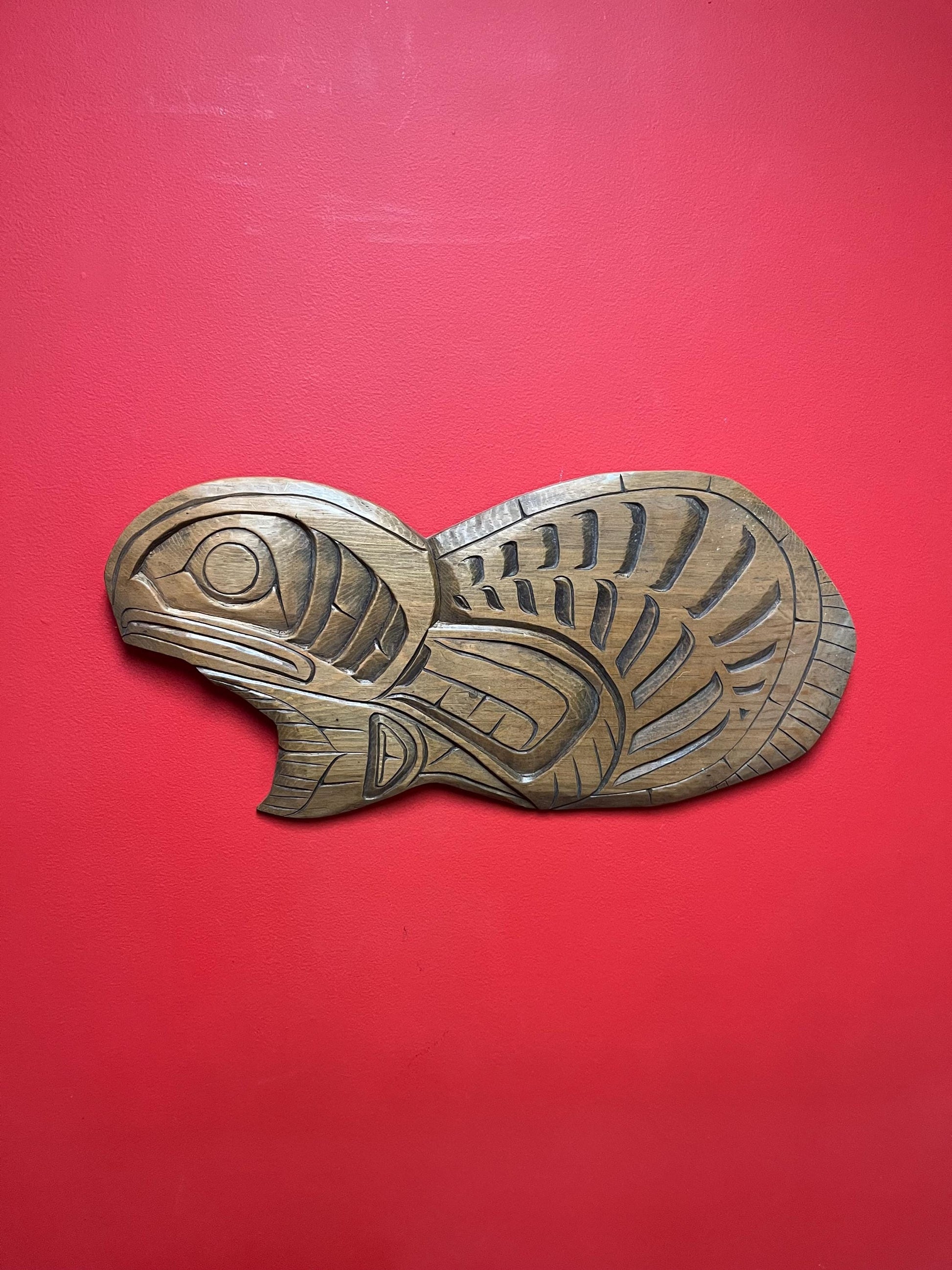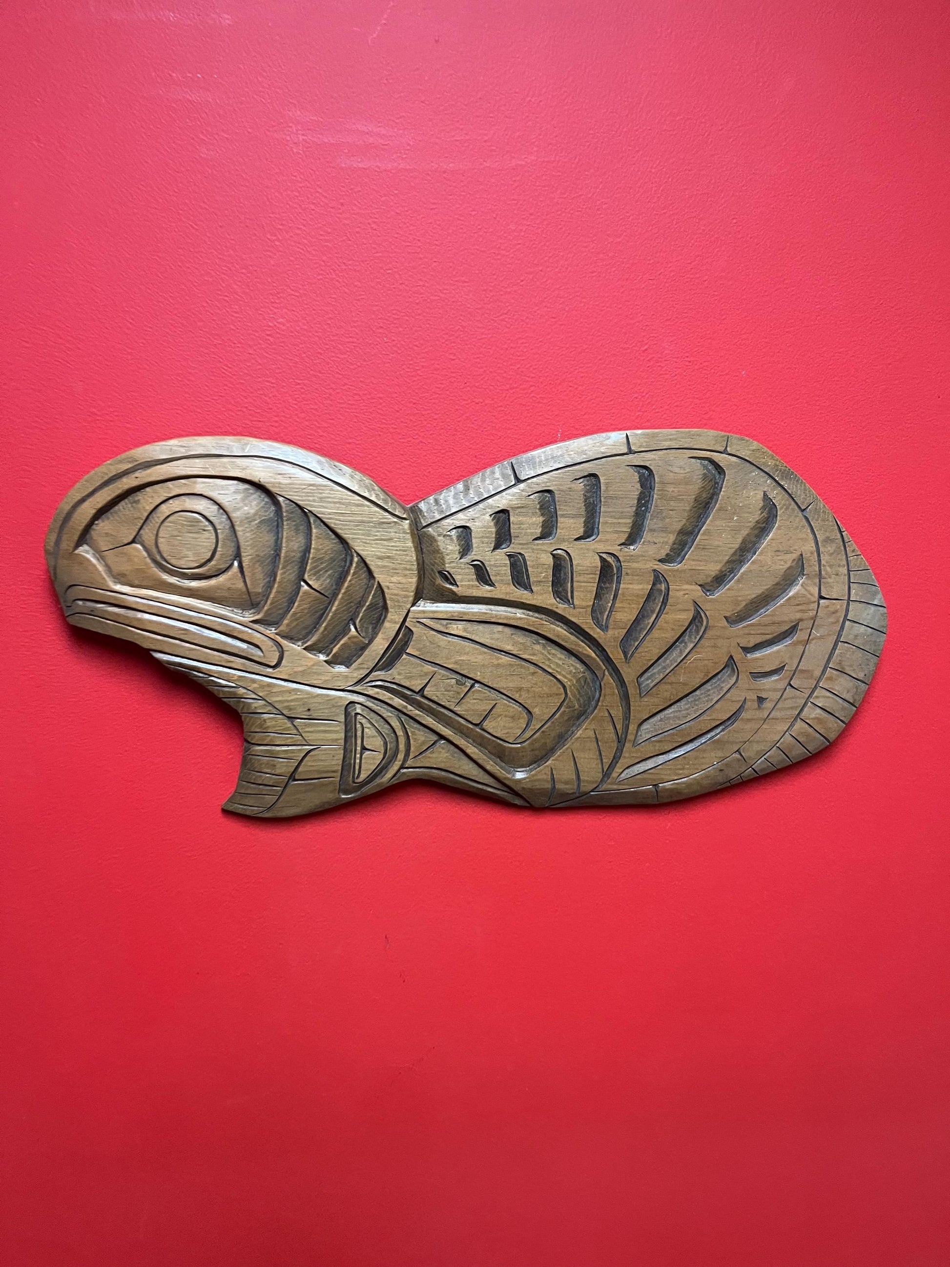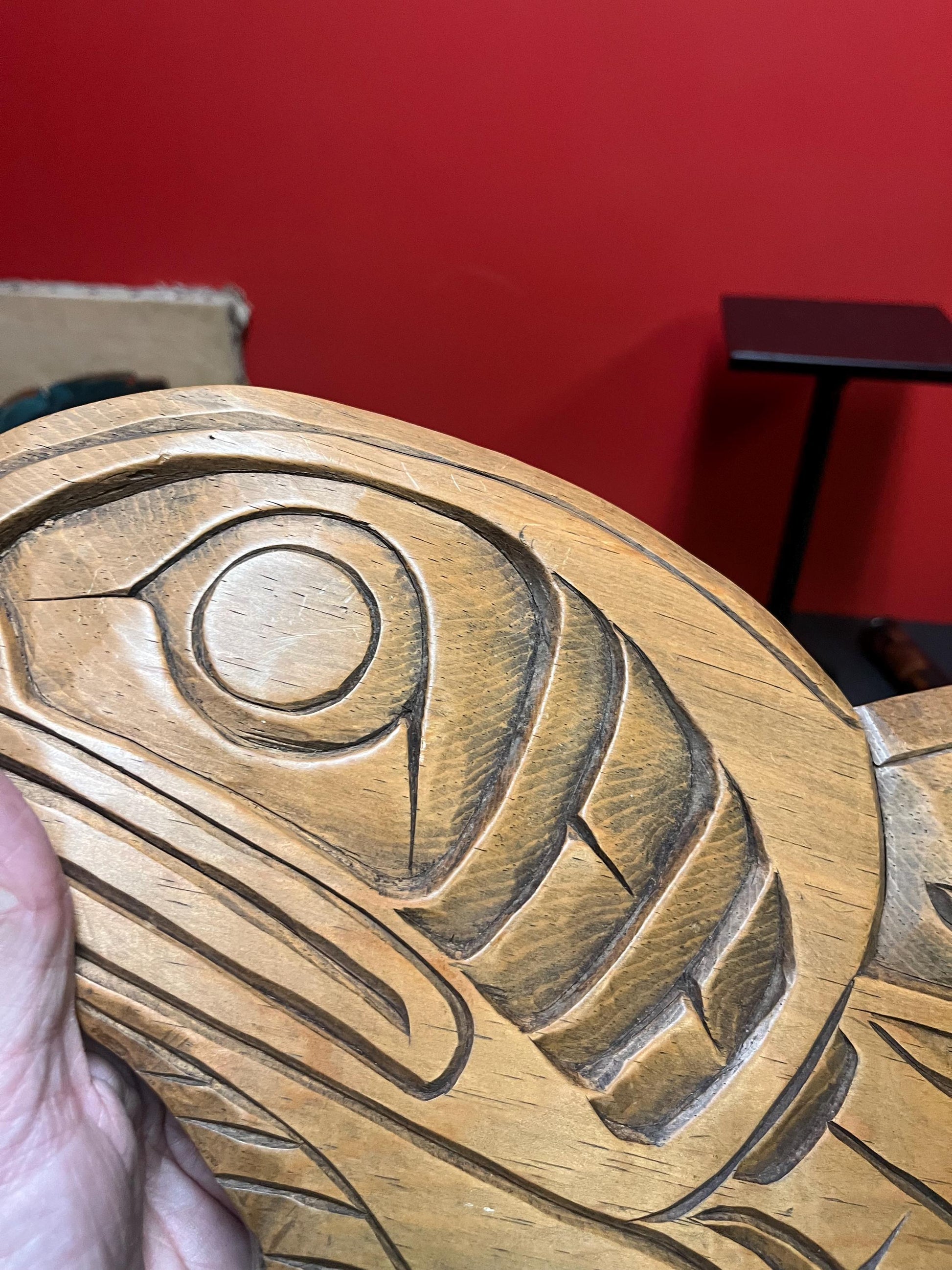 Lovely indigenous first nation pacific north West Coast Albert Bruce 23 x 12 salmon plaque in cedar great detail ready to hang