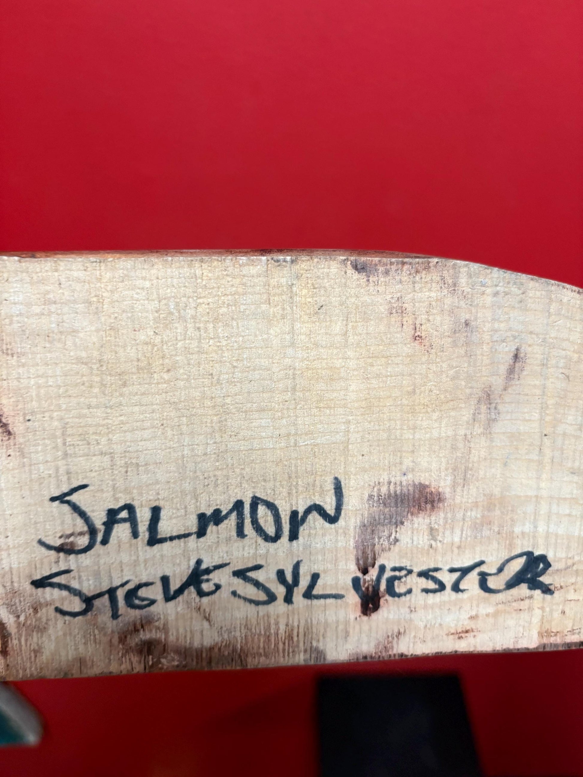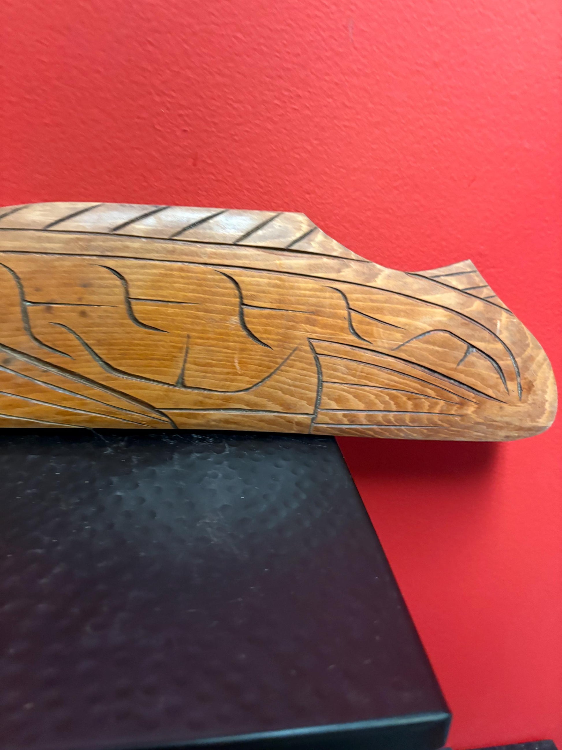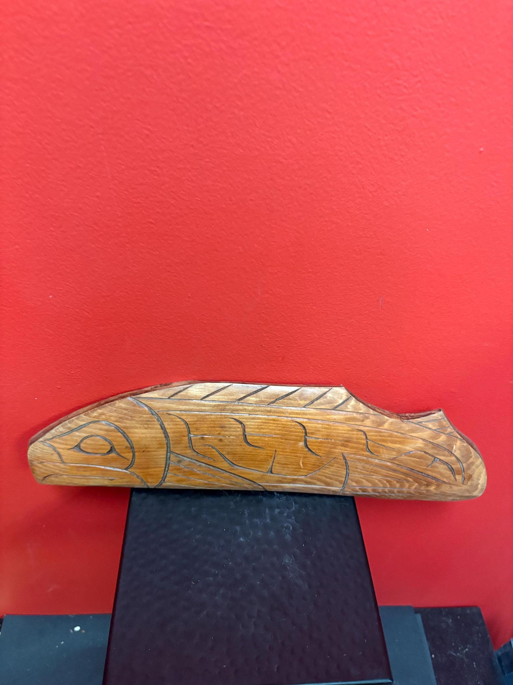 Lovely indigenous first nation Pacific north West Coast signed Steve Sylvester 15 x 4 cedar salmon needs hanger and great value