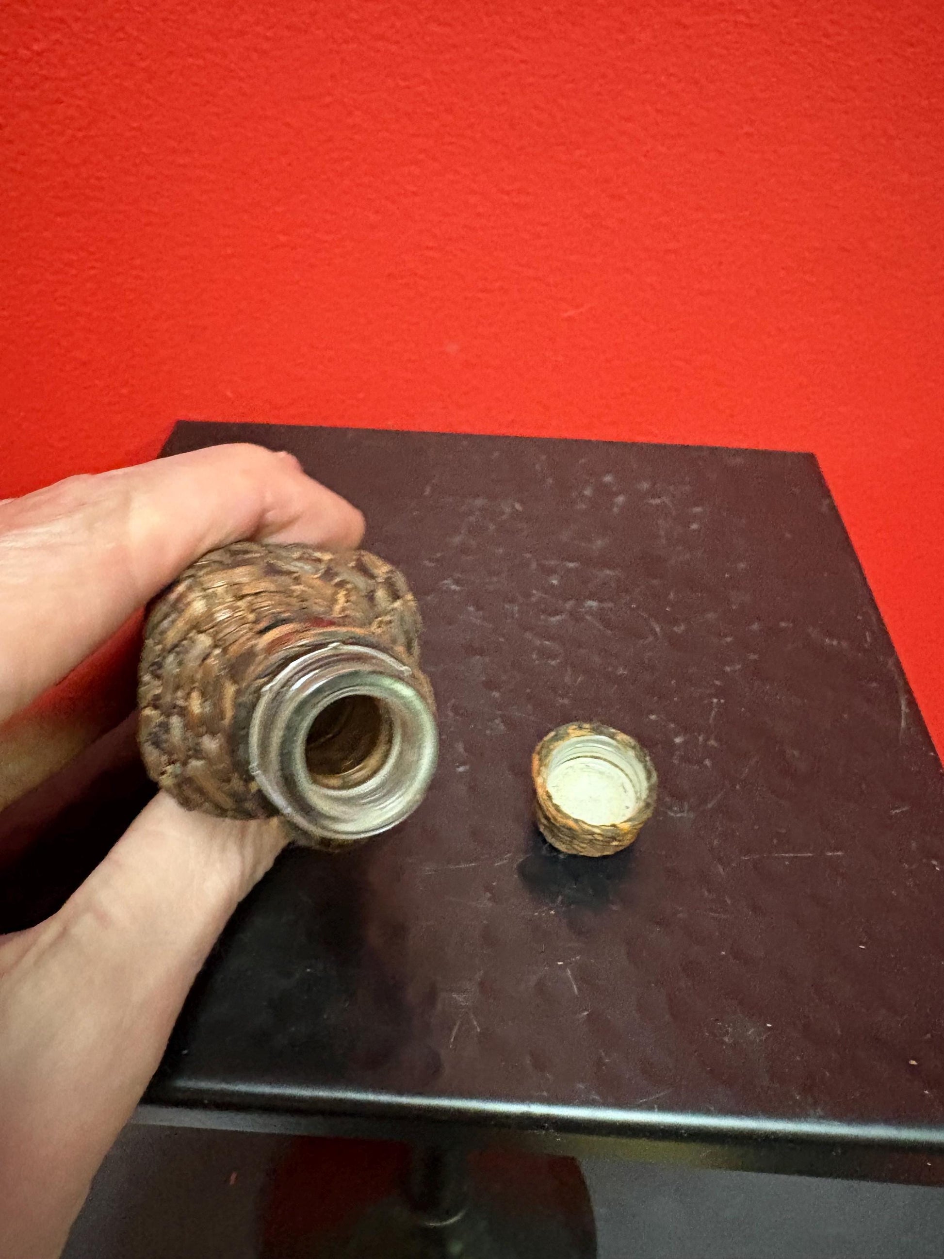 Lovely indigenous first nations cedar Bark wrapped bottle 5 inches tall great condition