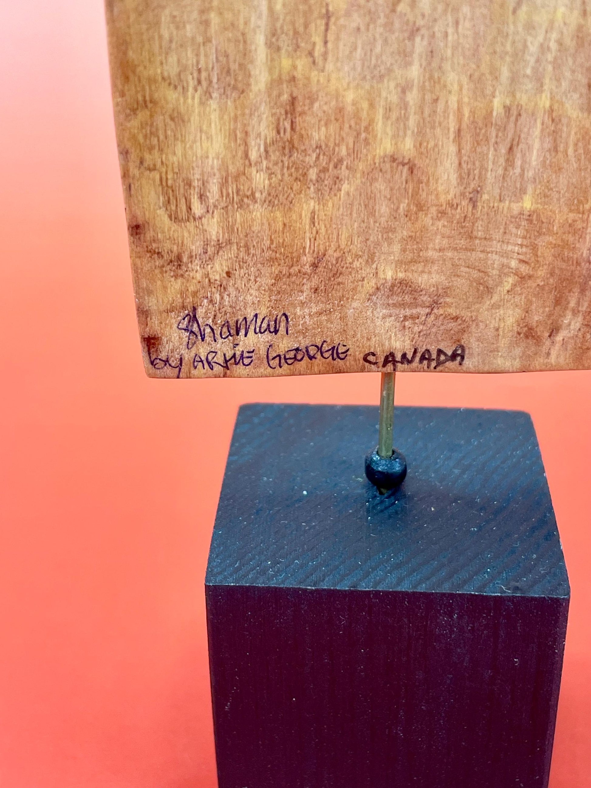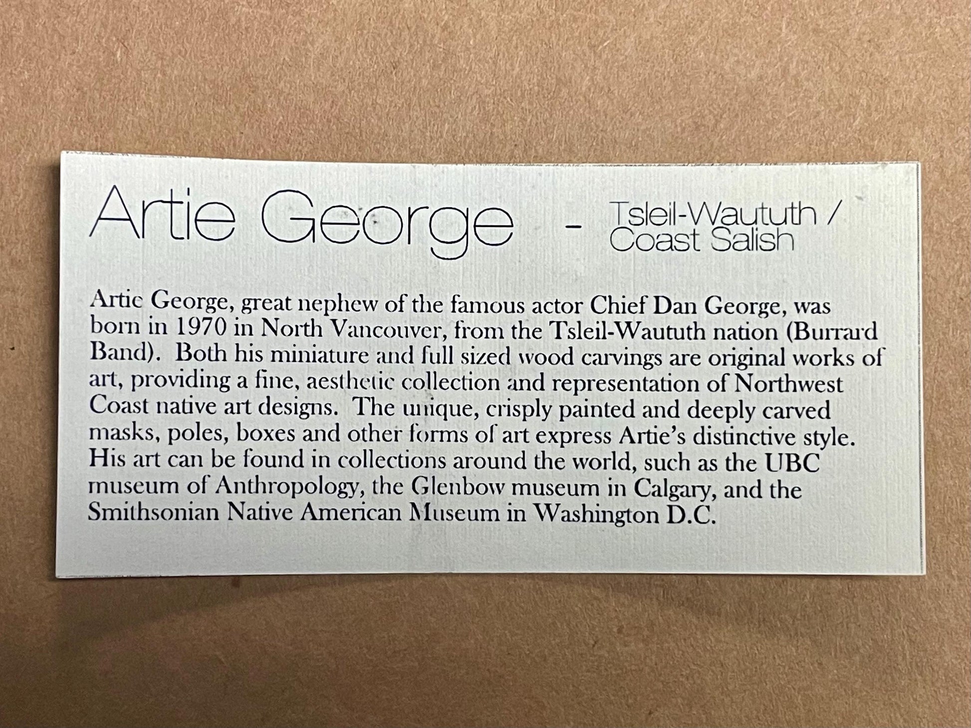 Lovely indigenous first Nations Pacific northwest Coast Artie George Shaman mask on stand total 5 inches Lovely detail and quality