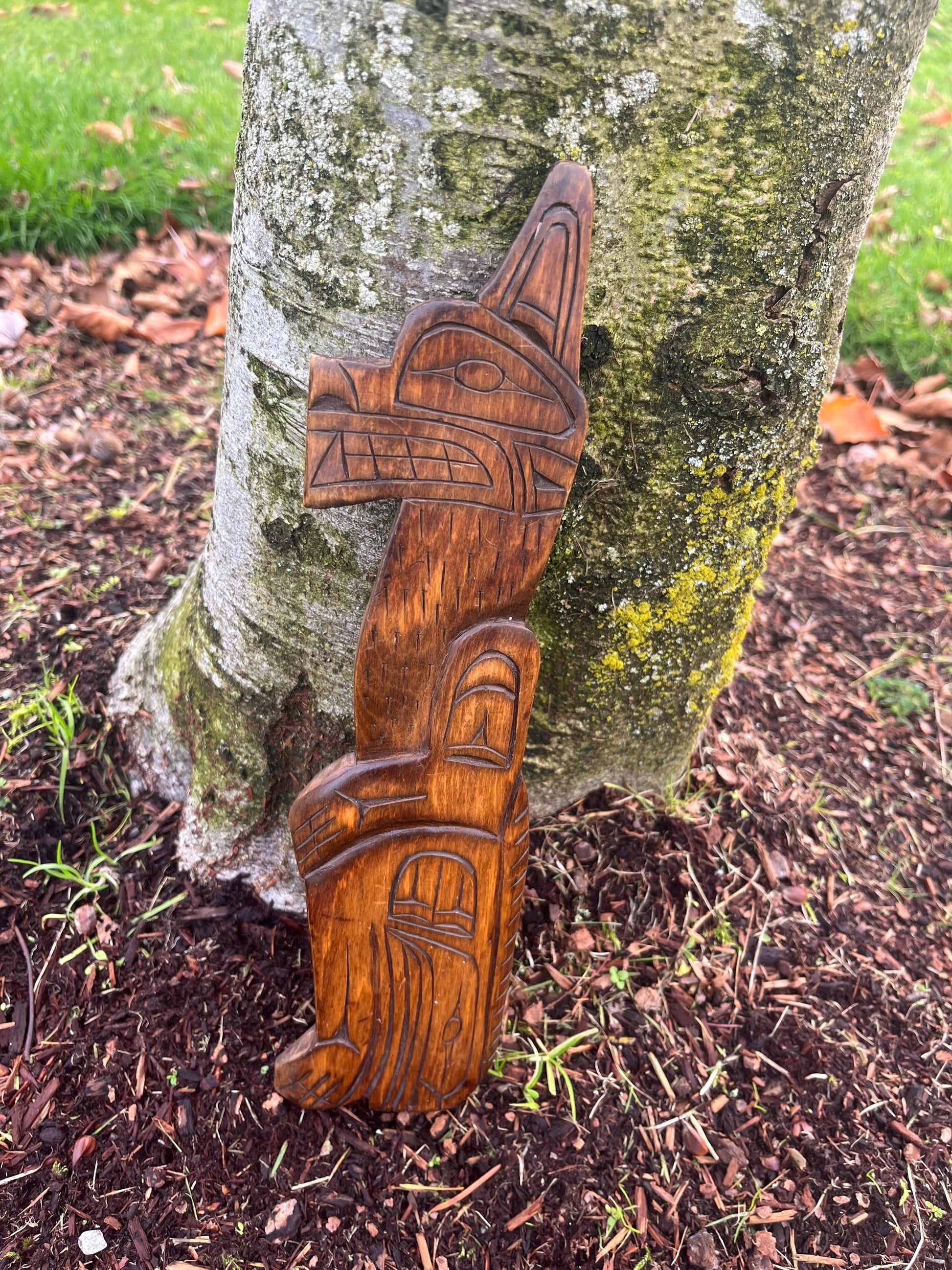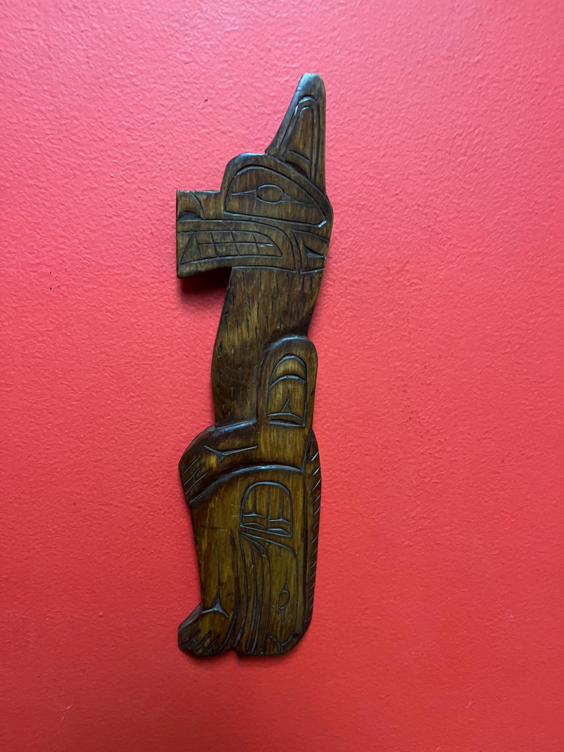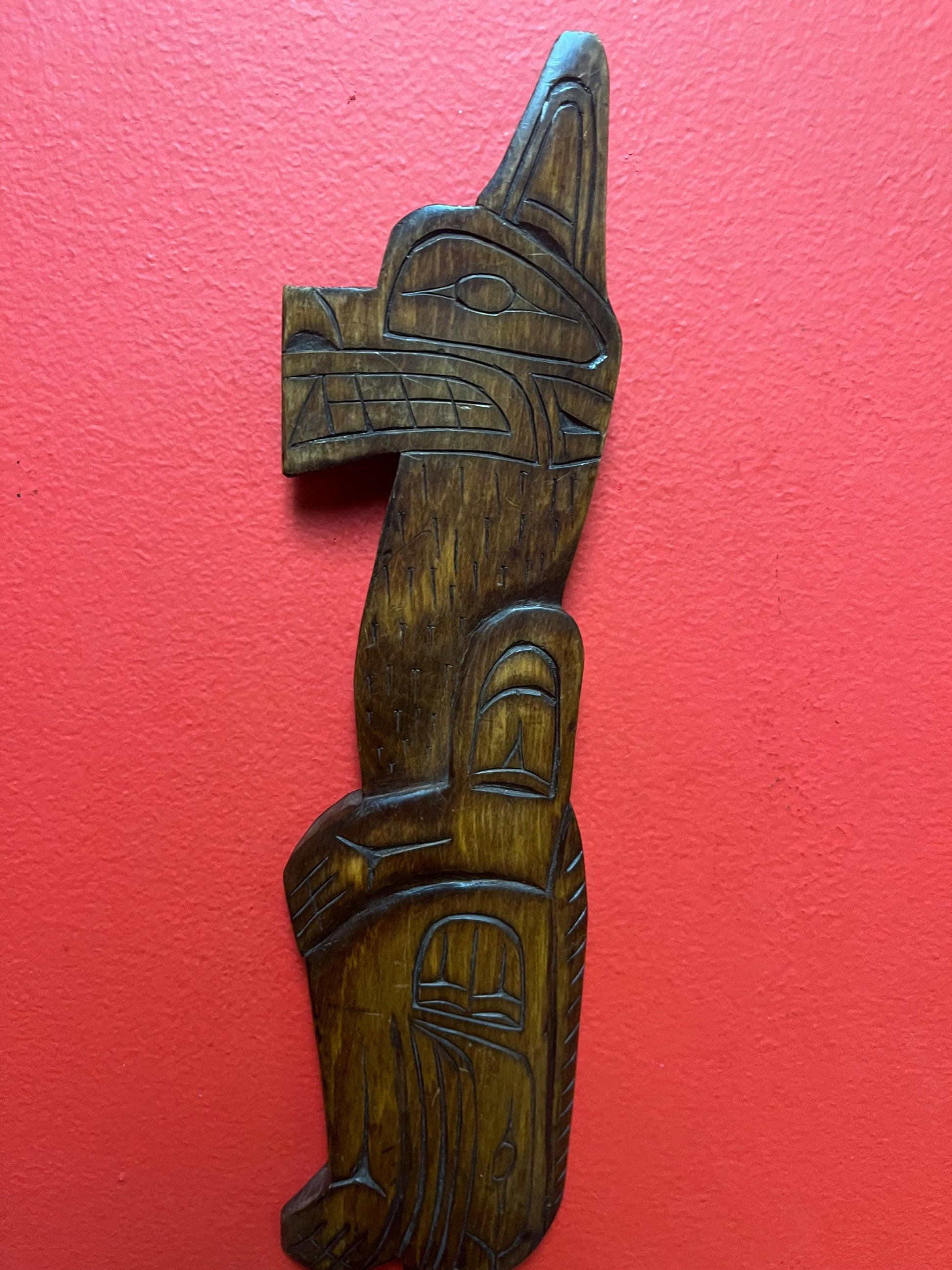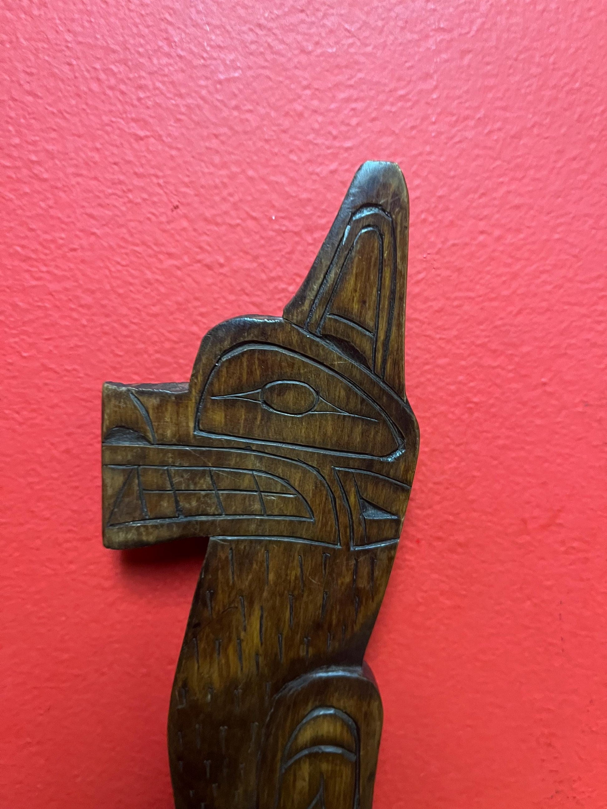 Lovely indigenous First Nations pacific northwest Coast Ronald Thomas carving of a wolf lovely detail