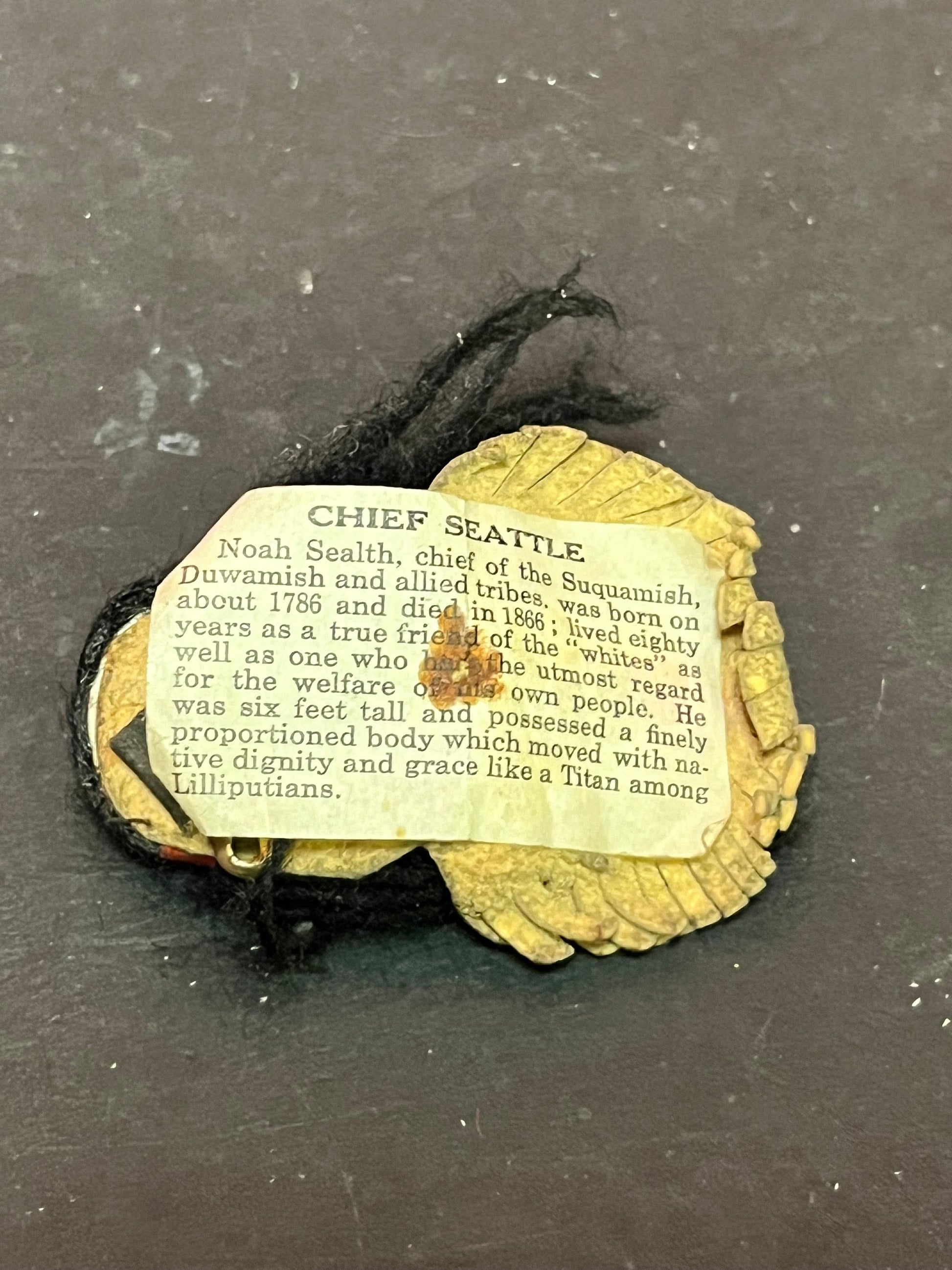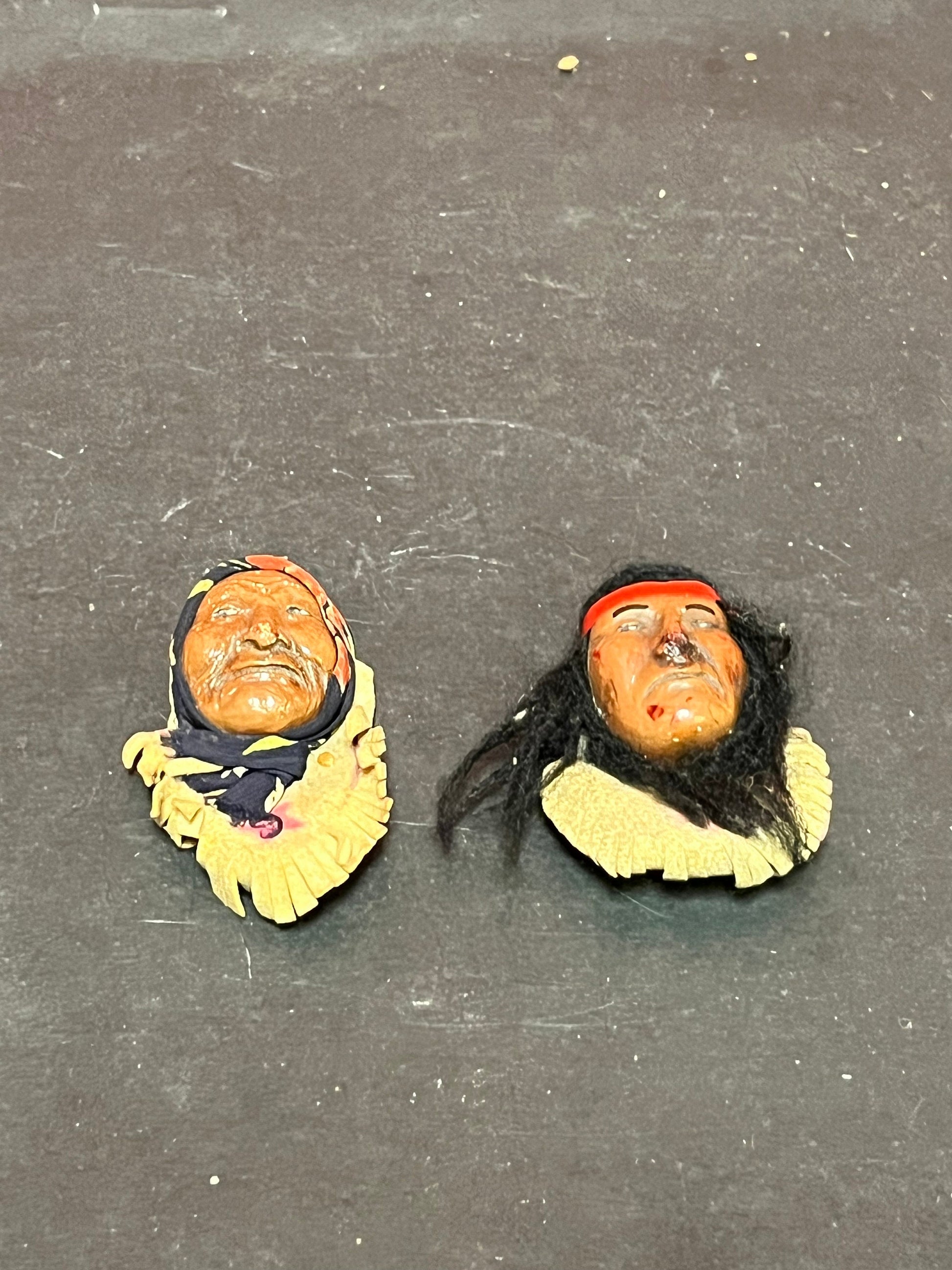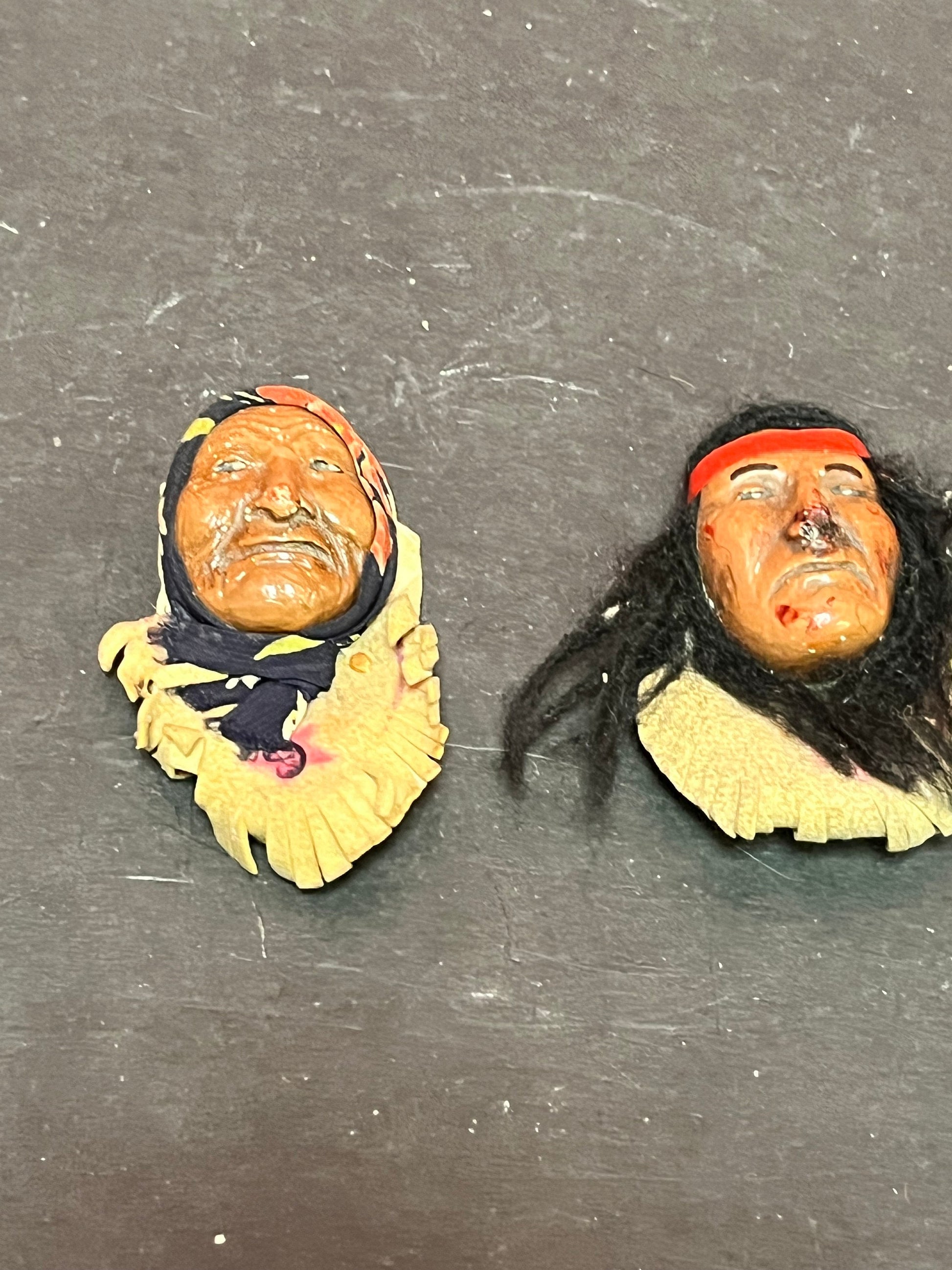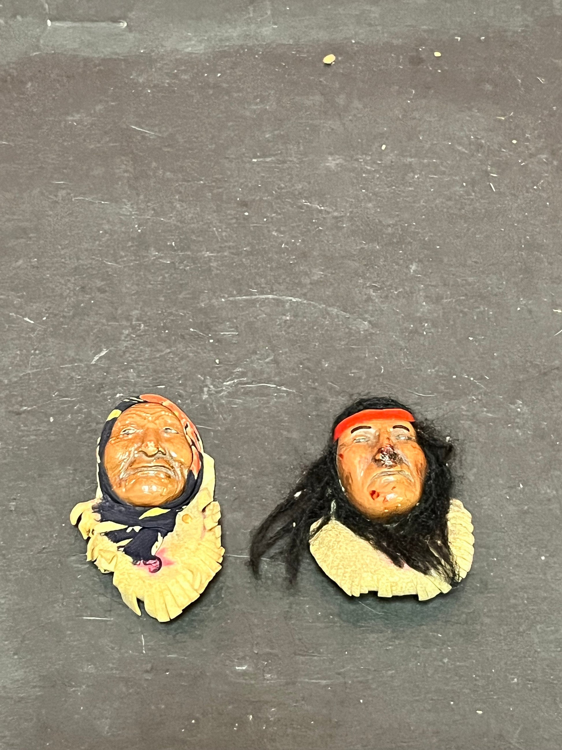 Lovely indigenous first nations pair of decorative heads celebrating chief Seattle and his daughter 3 inches each