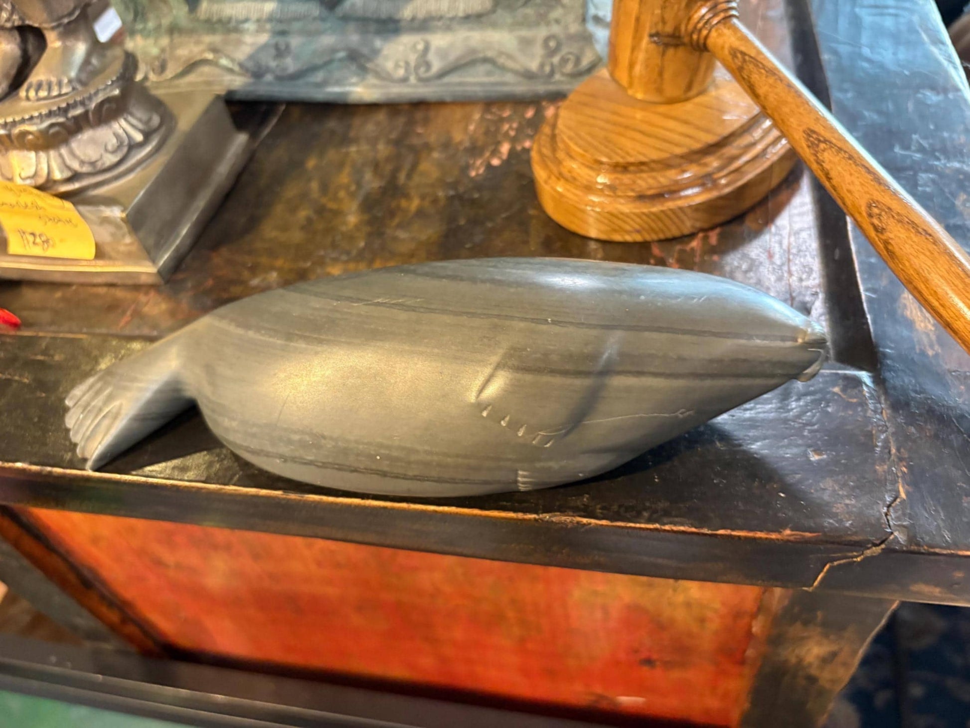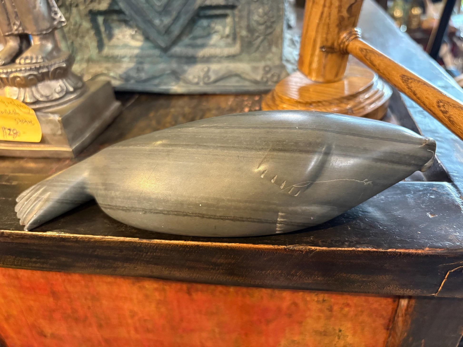 Lovely indigenous Inuit signed soapstone seal — particularly lovely and in perfect condition - 10 x 2 1/2“ wide - great value
