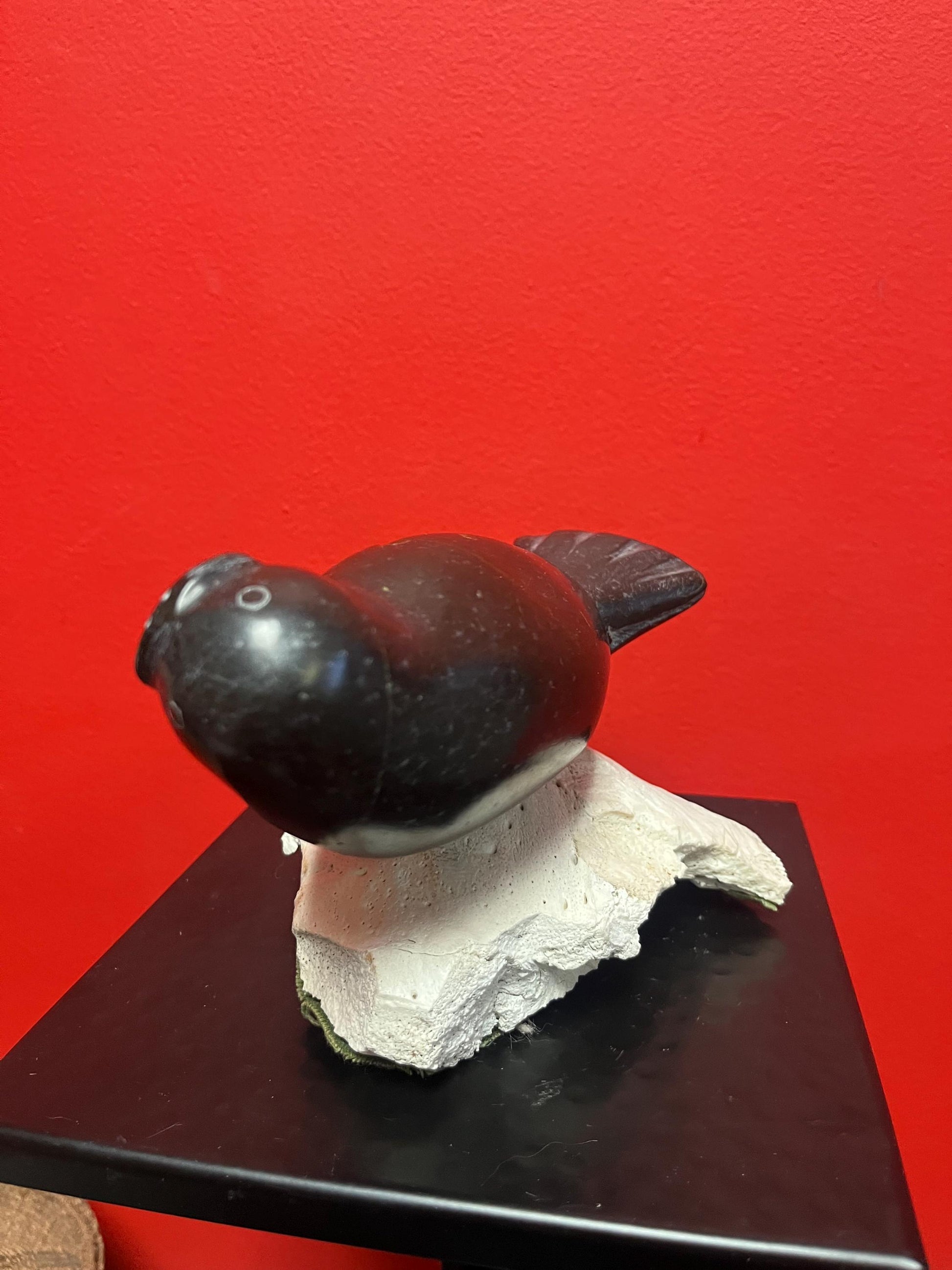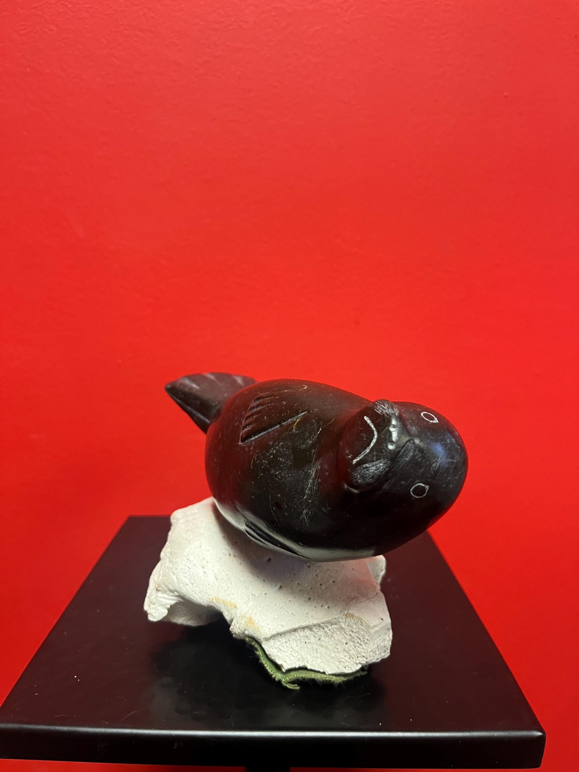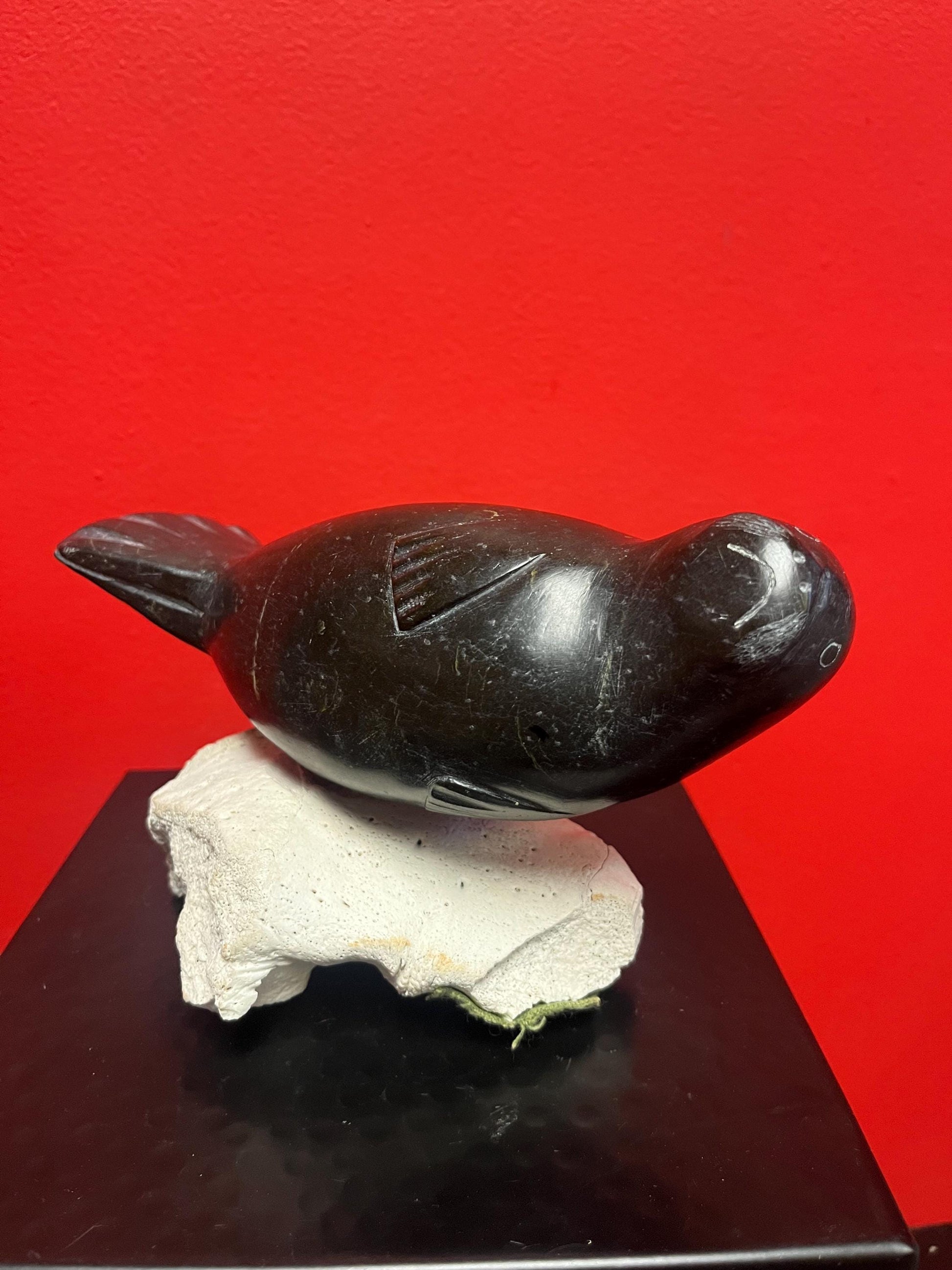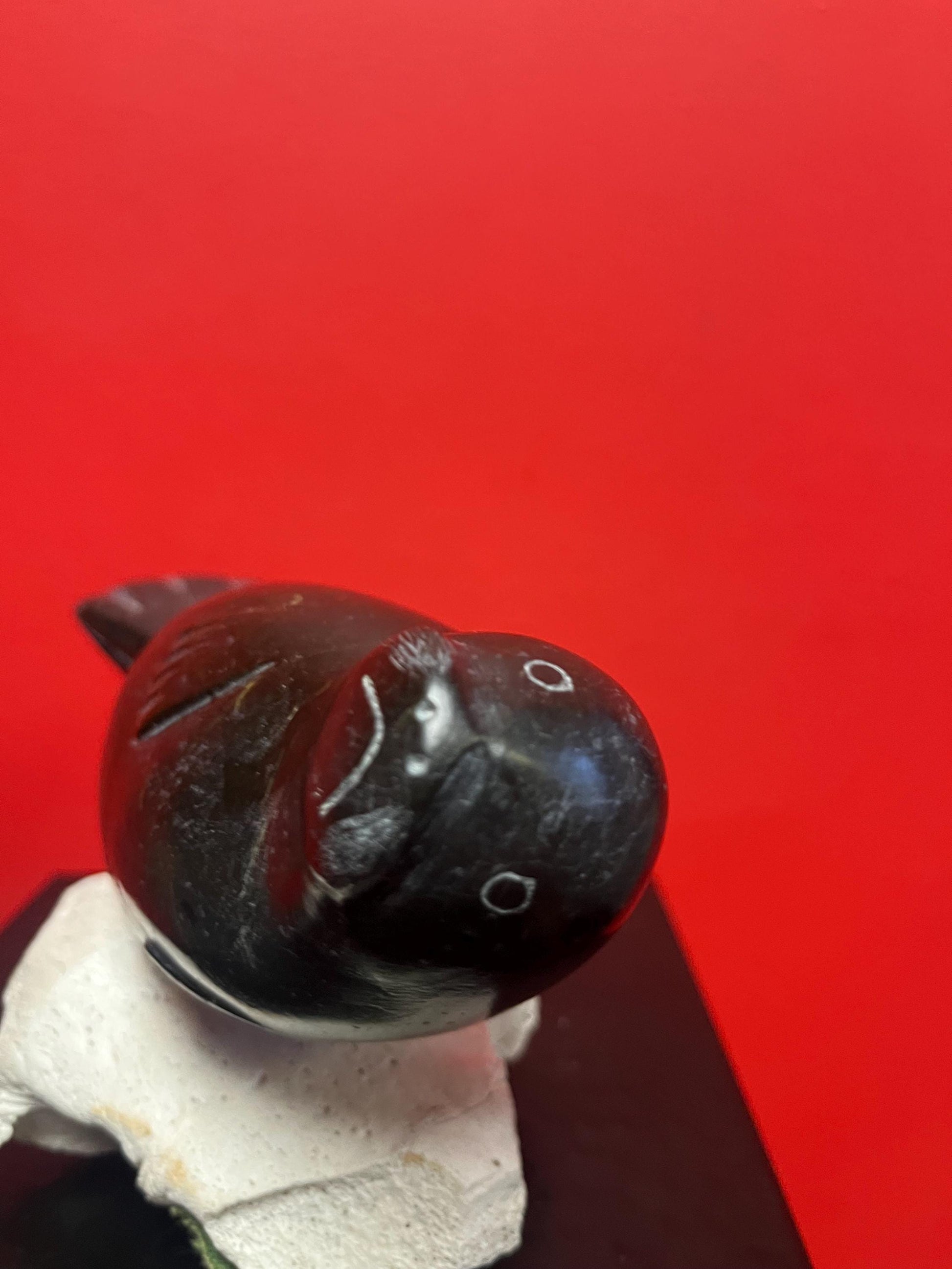 Lovely indigenous Inuit soapstone seal on rock base wonderful condition and imagery 8 x 5 inches high