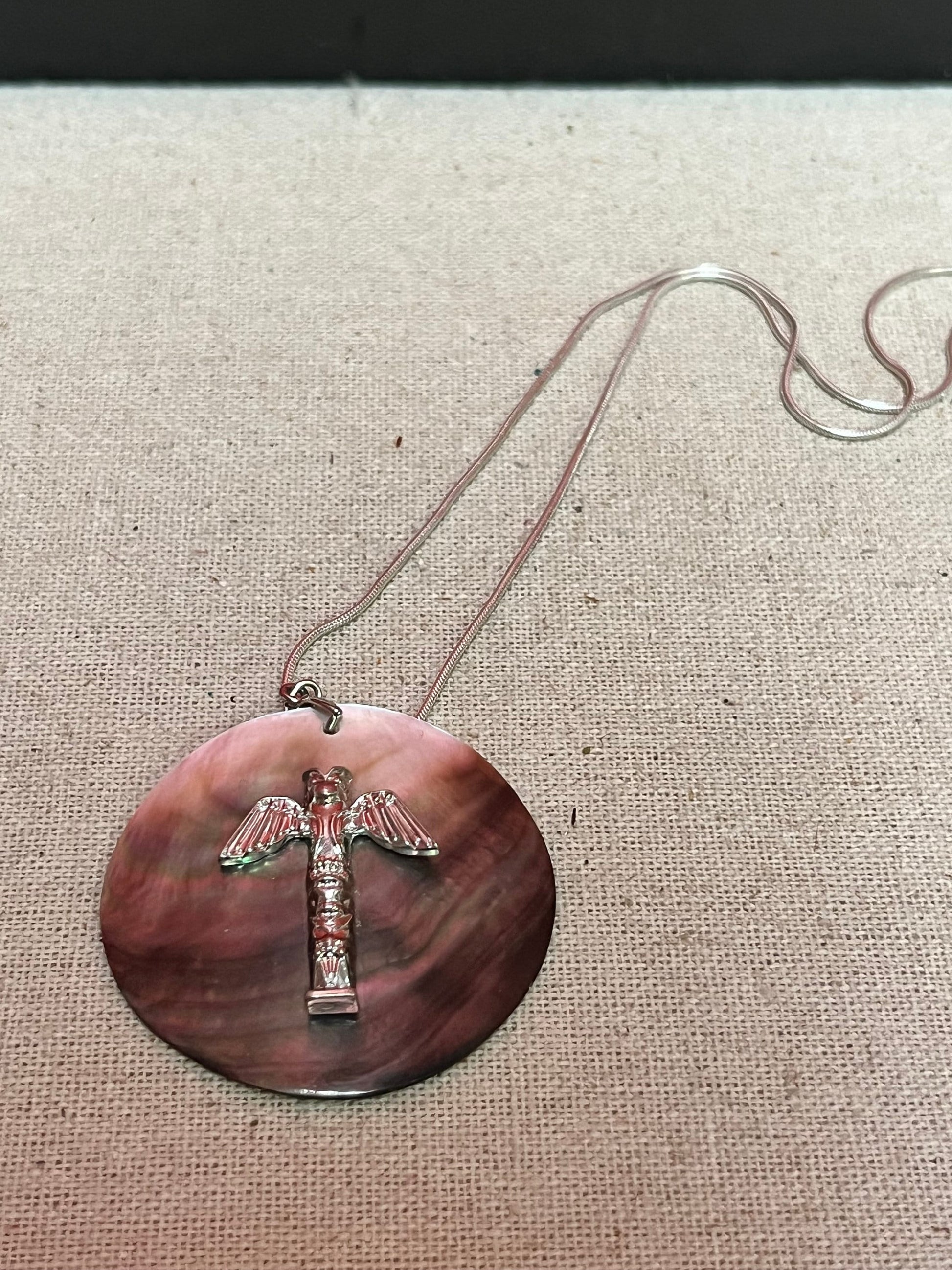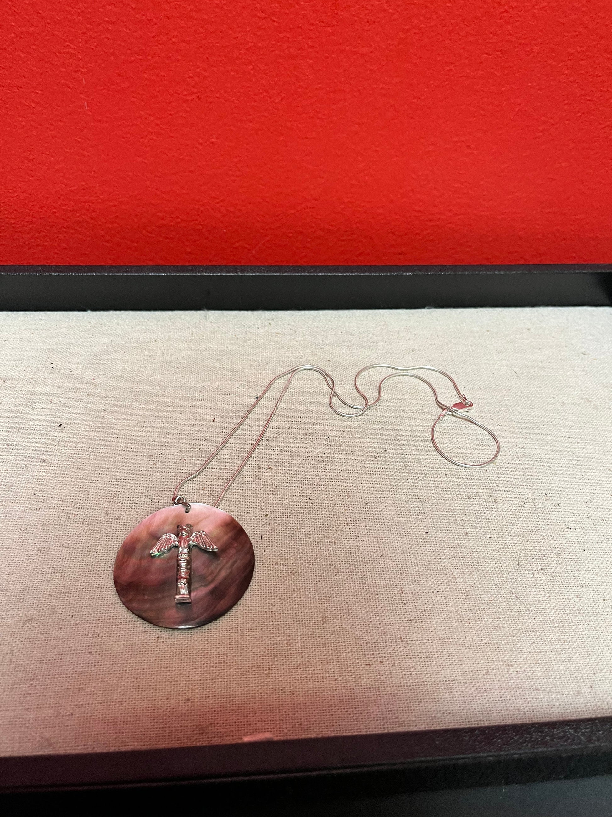 Lovely indigenous native silver and abalone pendant 2 inches long with free silver chain perfect gift