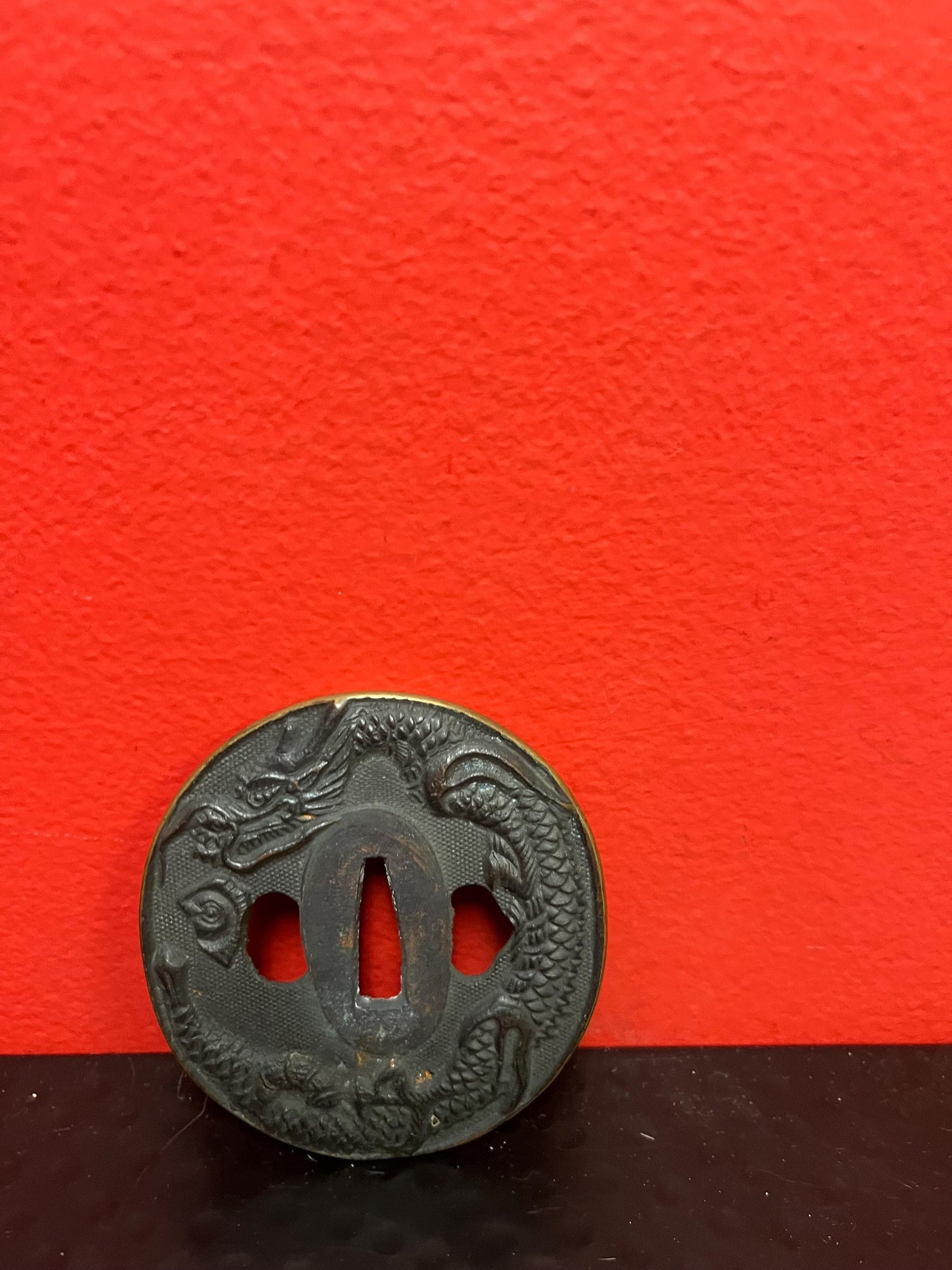 Lovely Japanese bronze 3 inch samurai tsuba from estate great value