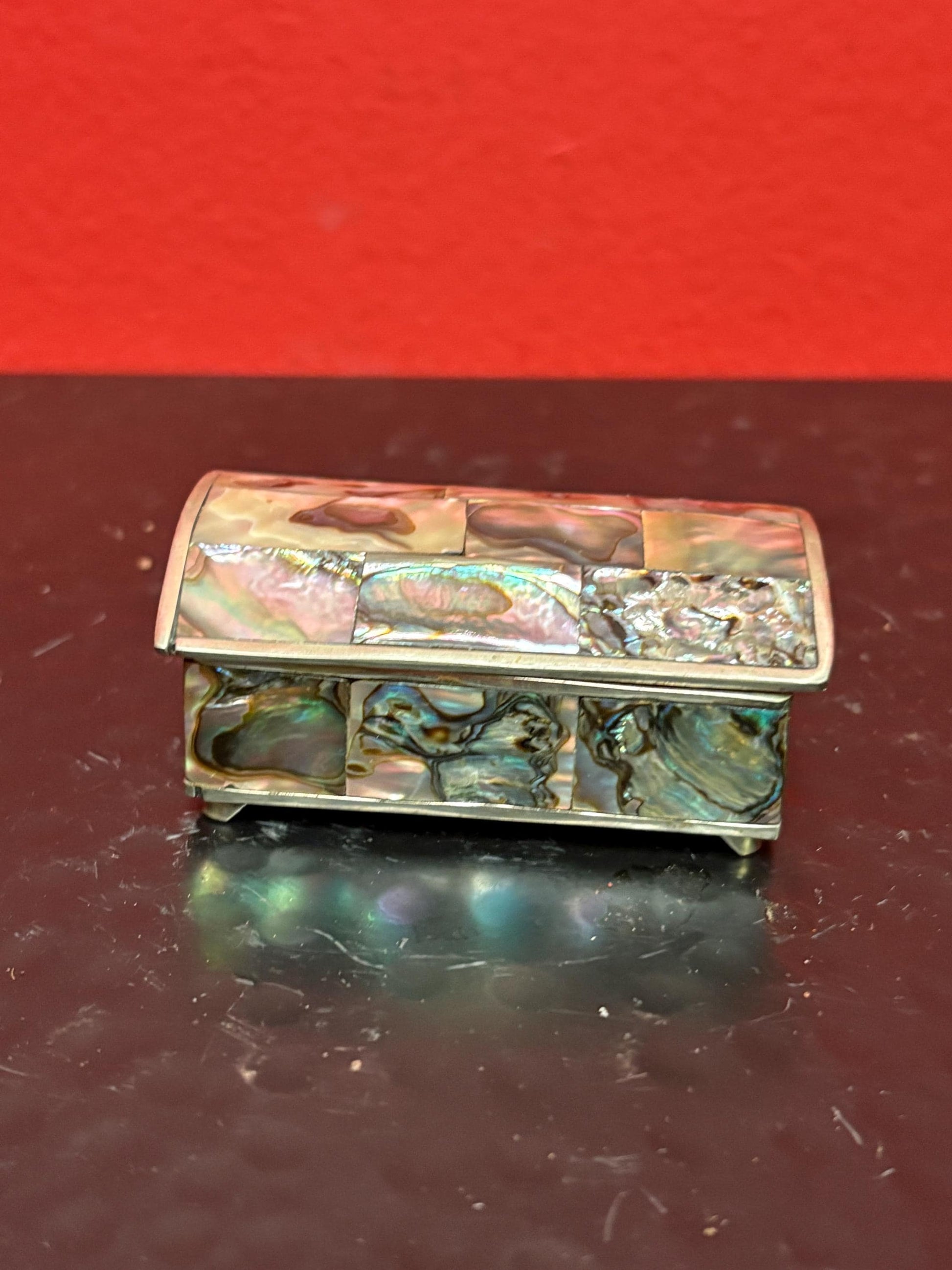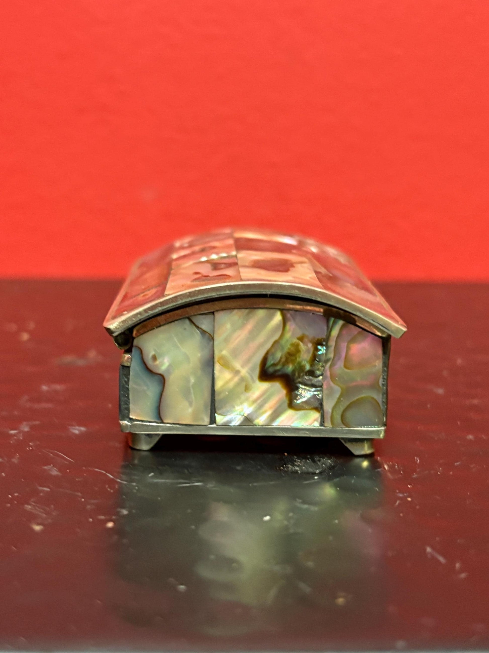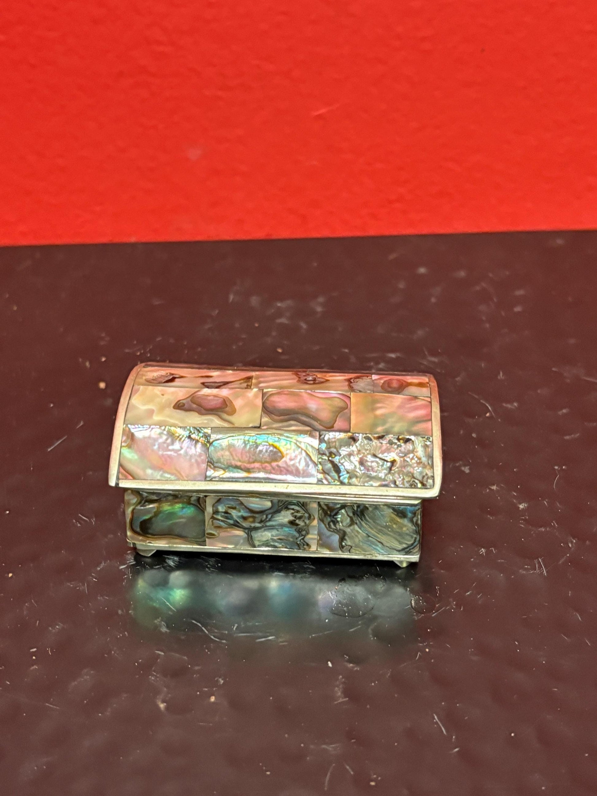 Lovely Mexican alpaca silver and abalone box 2 1/2 by 1 1/2 x 1“ high great condition lovely gift