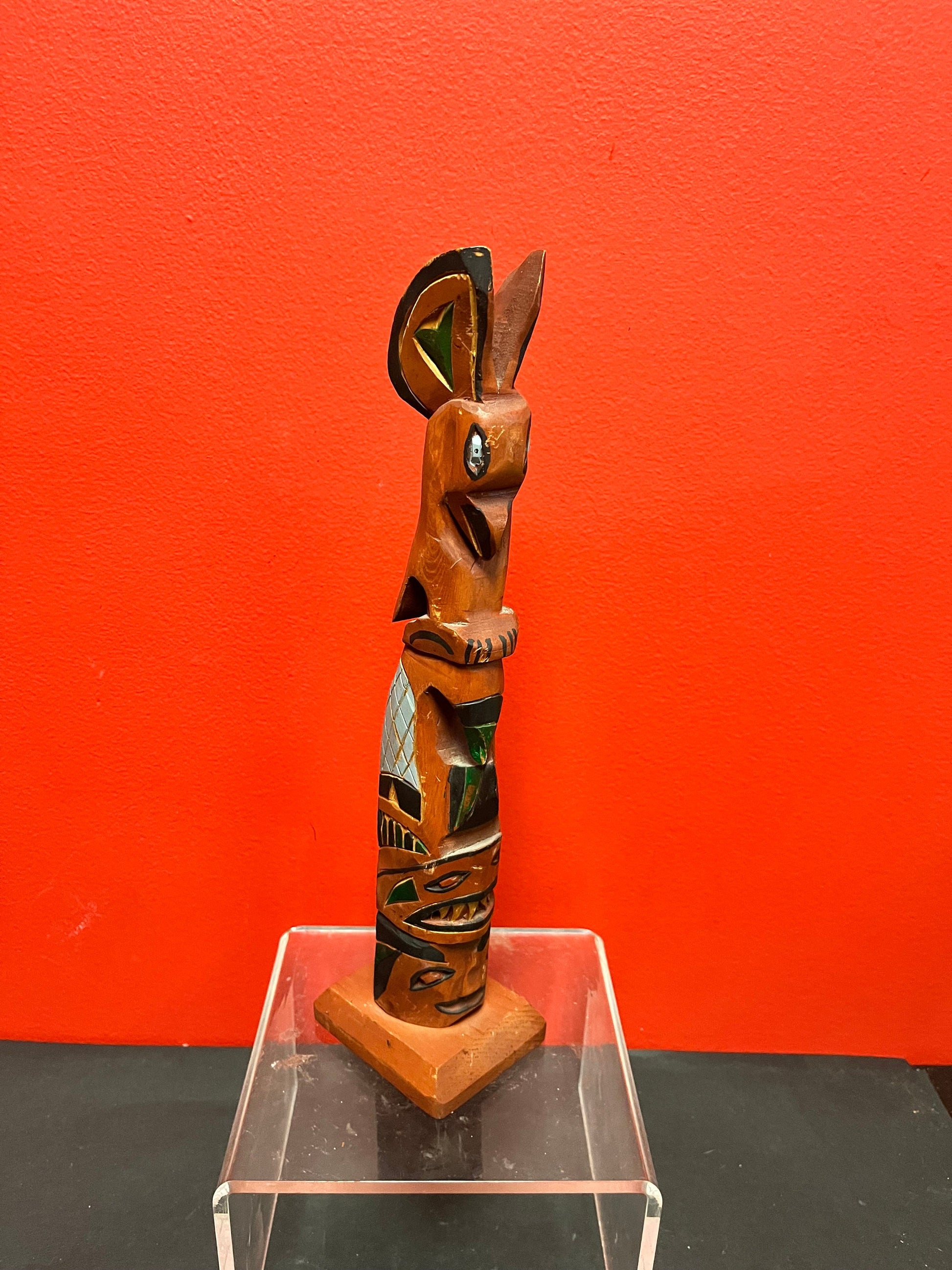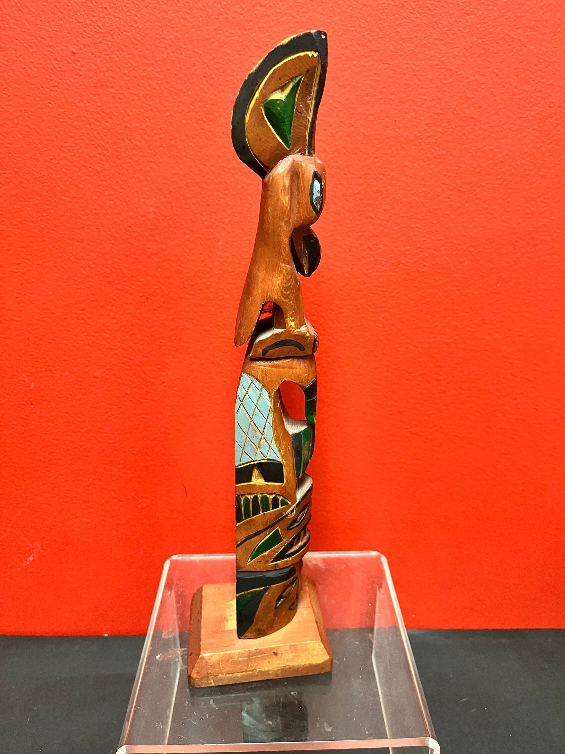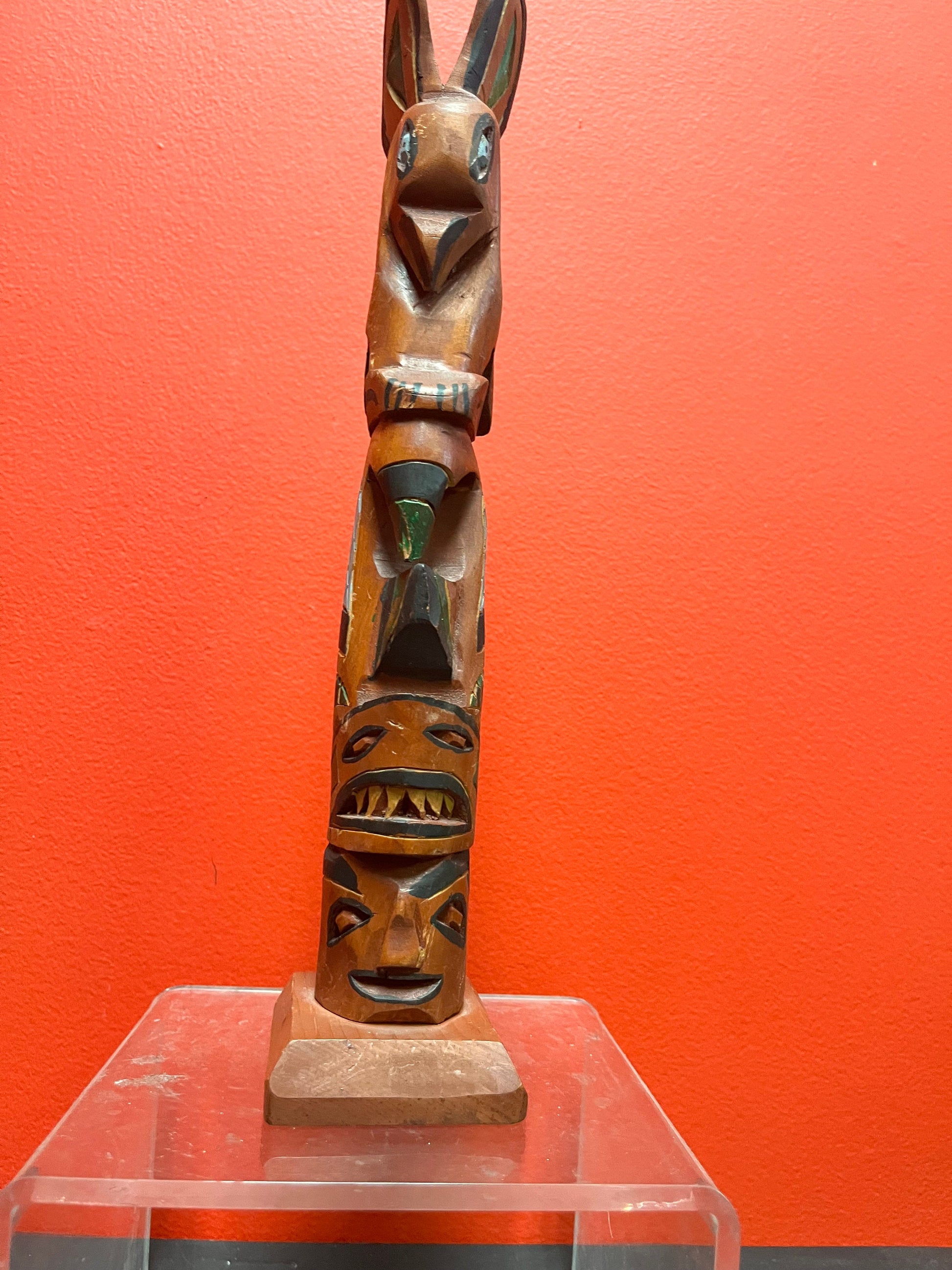 Lovely old 15 inch tall unsigned primitive totem pole indigenous first nations Pacific northwest coast beauty