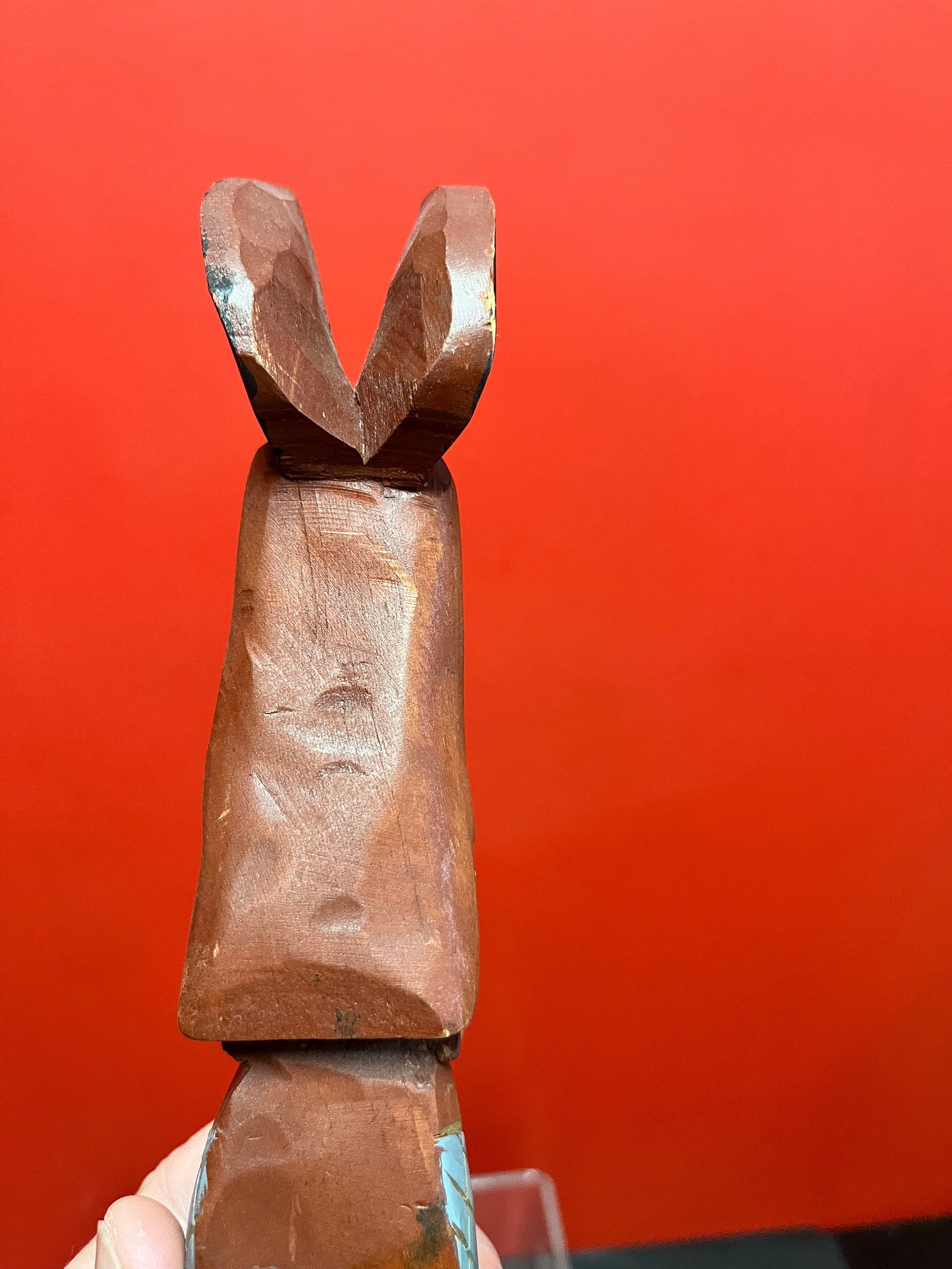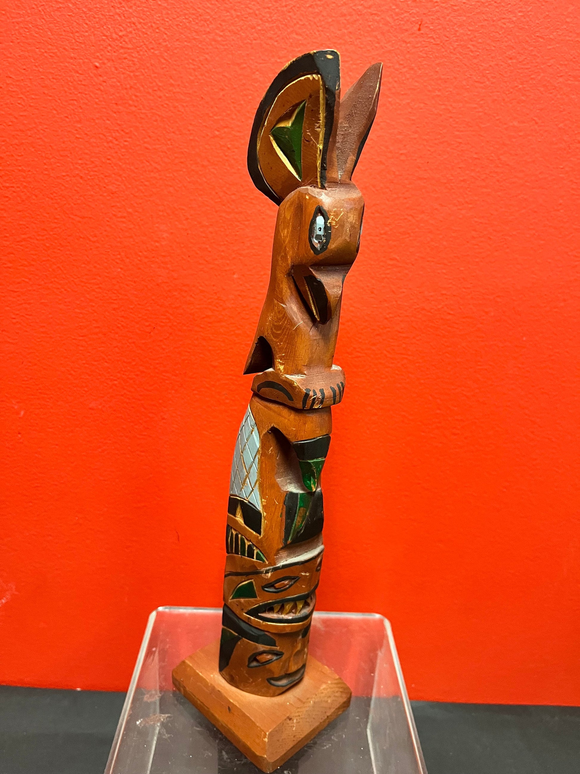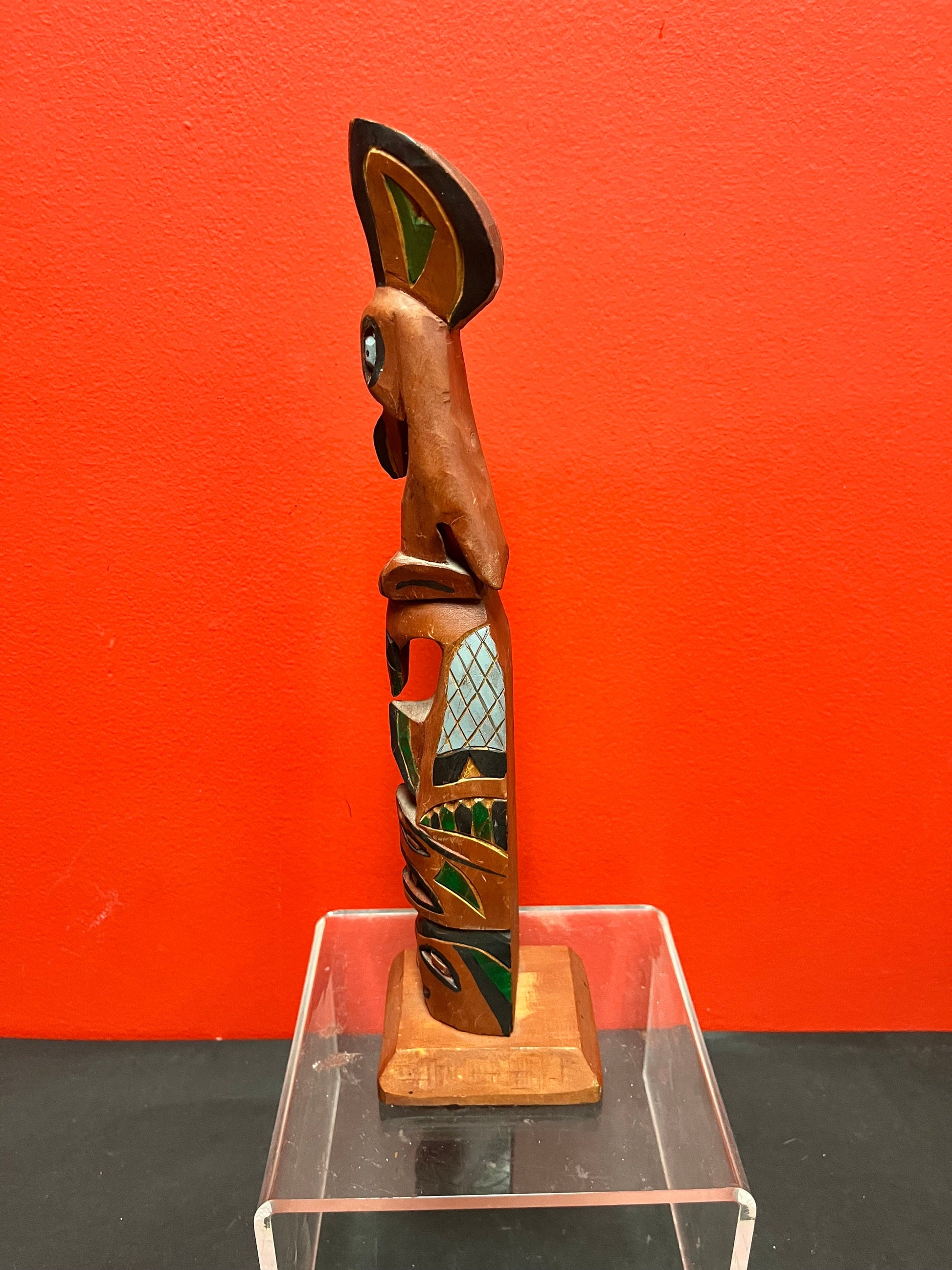 Lovely old 15 inch tall unsigned primitive totem pole indigenous first nations Pacific northwest coast beauty