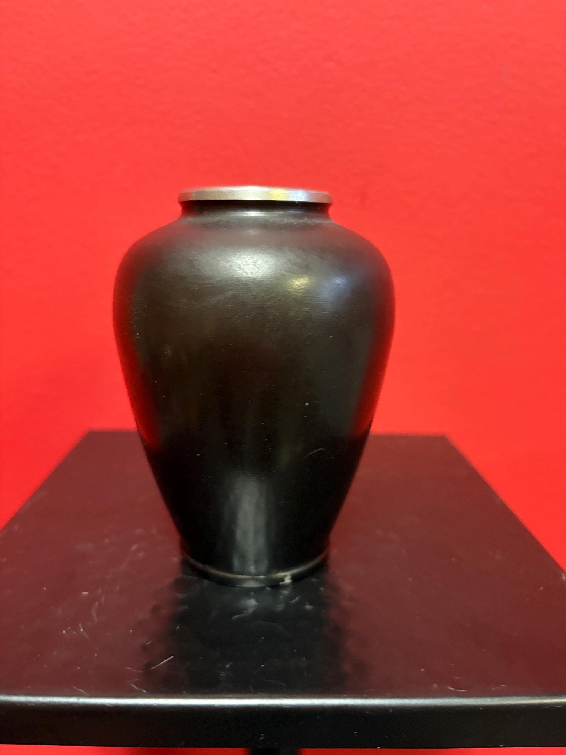 Lovely old 5 inch tall Japanese bronze vase butterfly and flowers see photos great value