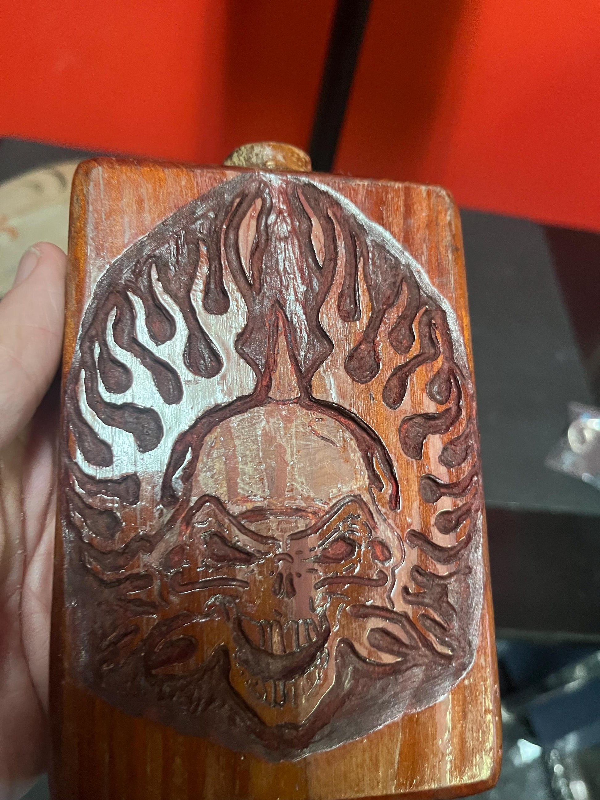 Lovely old 6 x 4 skull flask ready to use unique wooden beauty