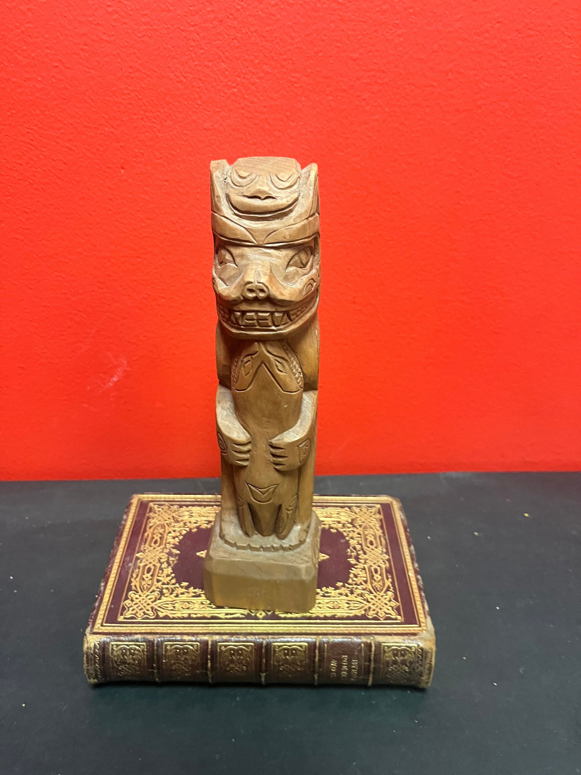 Lovely older 8 inch indigenous first nations pacific northwest coast cedar bear totem pole great detail