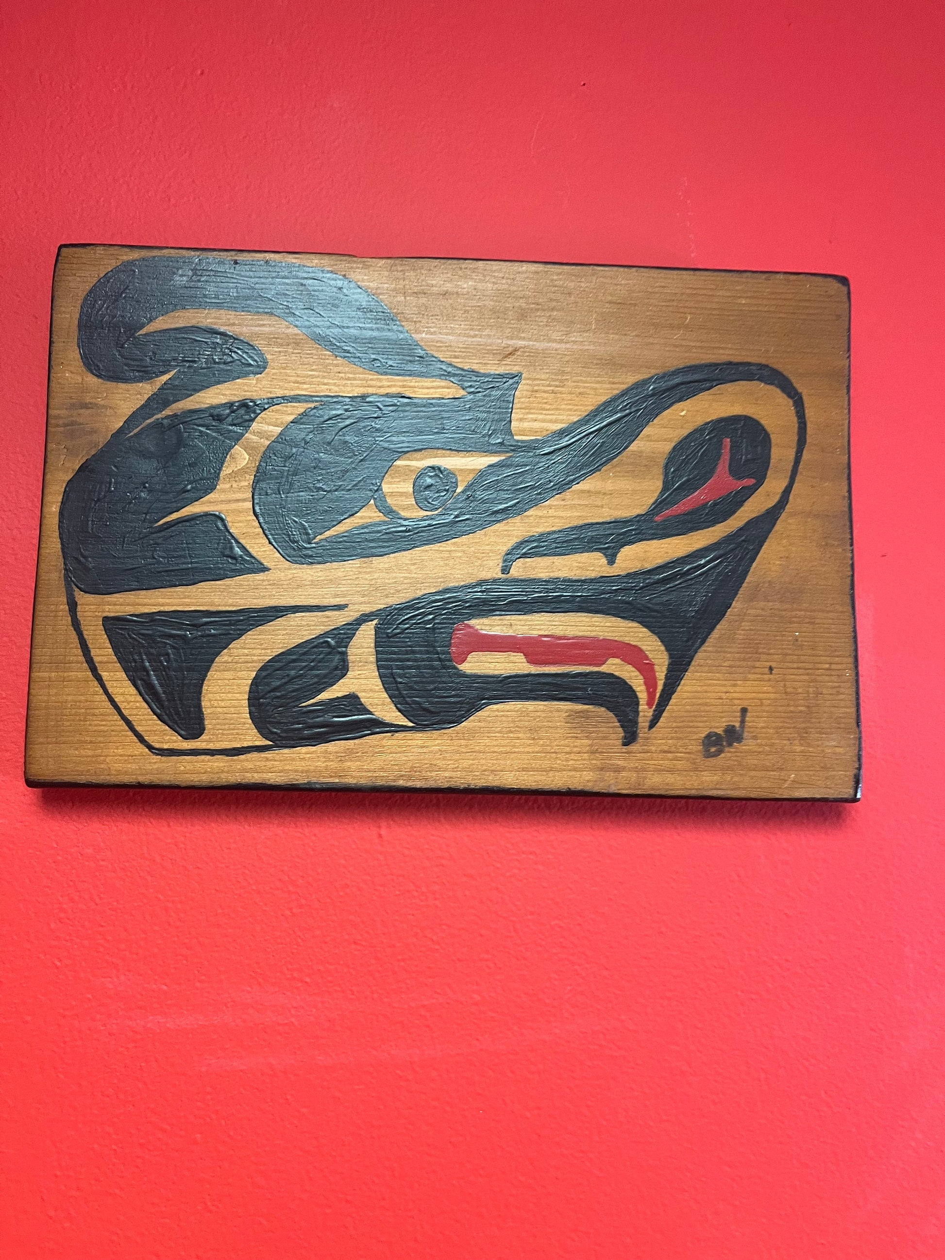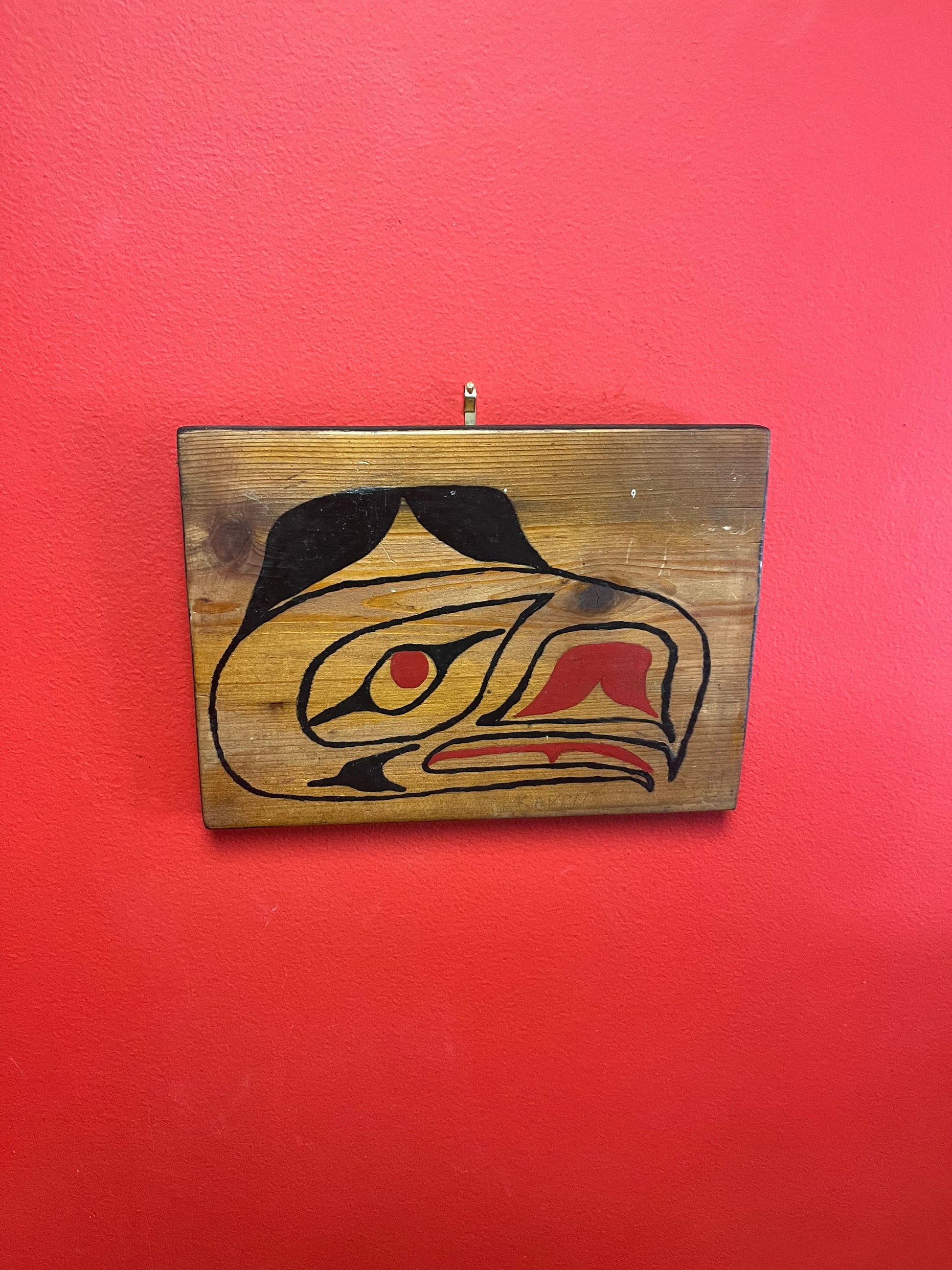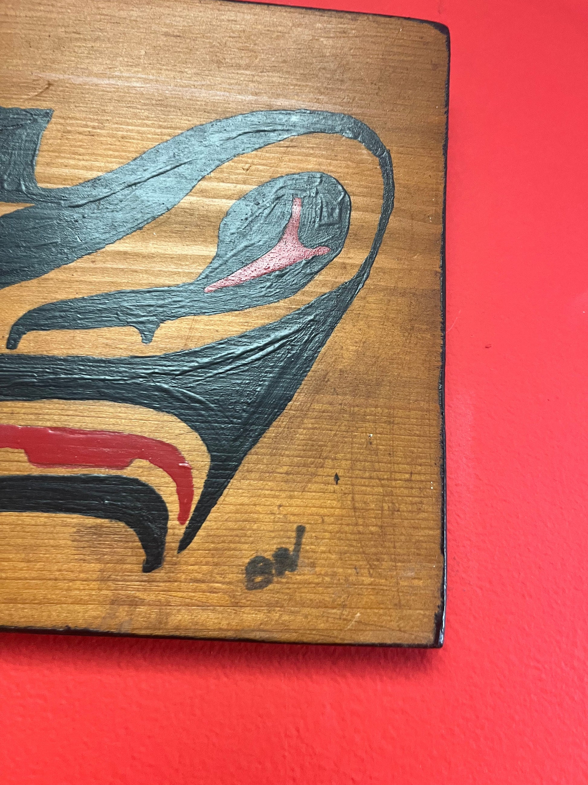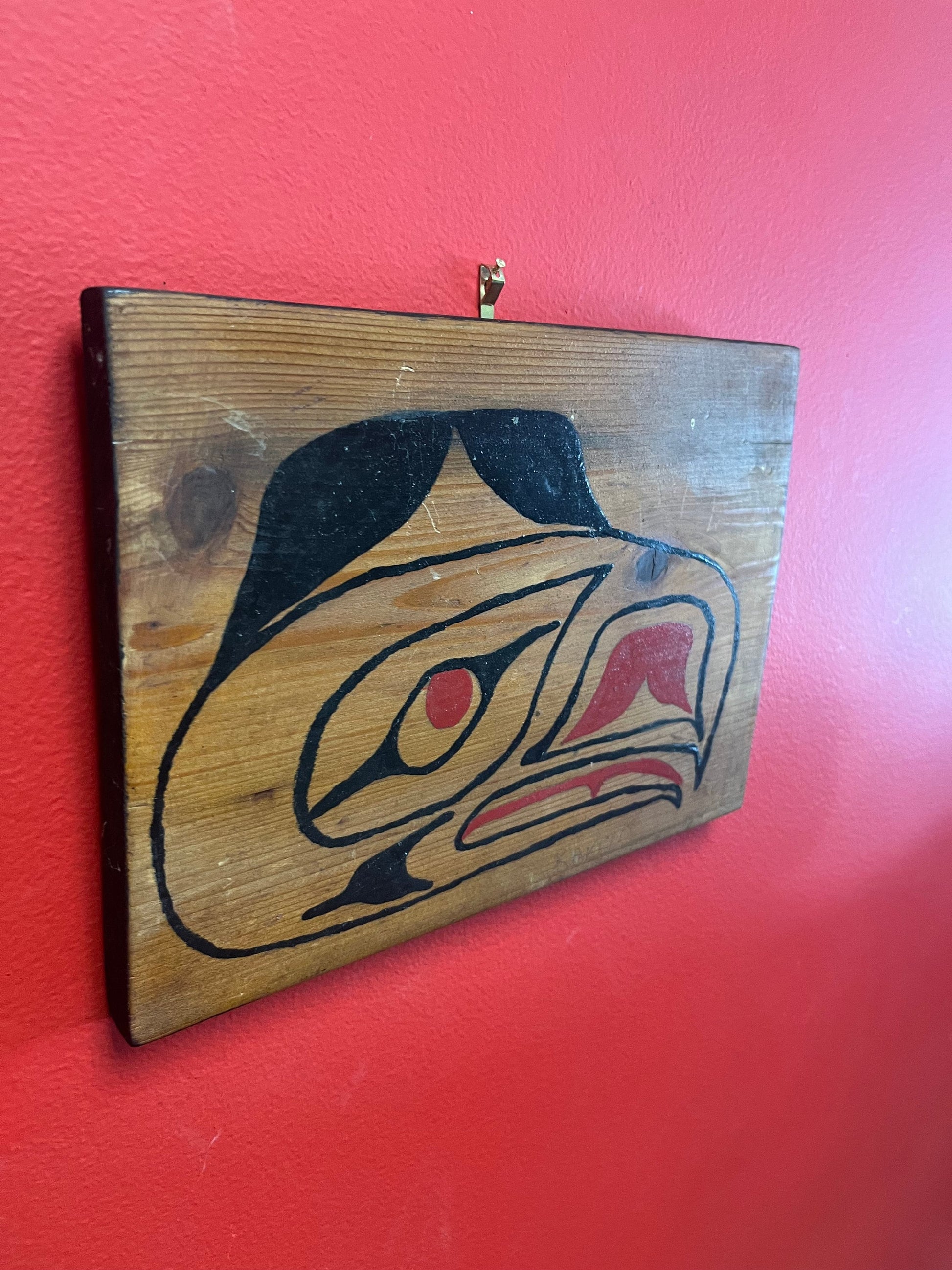 Lovely pair Indigenous northwest Coast primitive old plaques 10 x 7 1/2 each one signed Thunderbird and Eagle wow