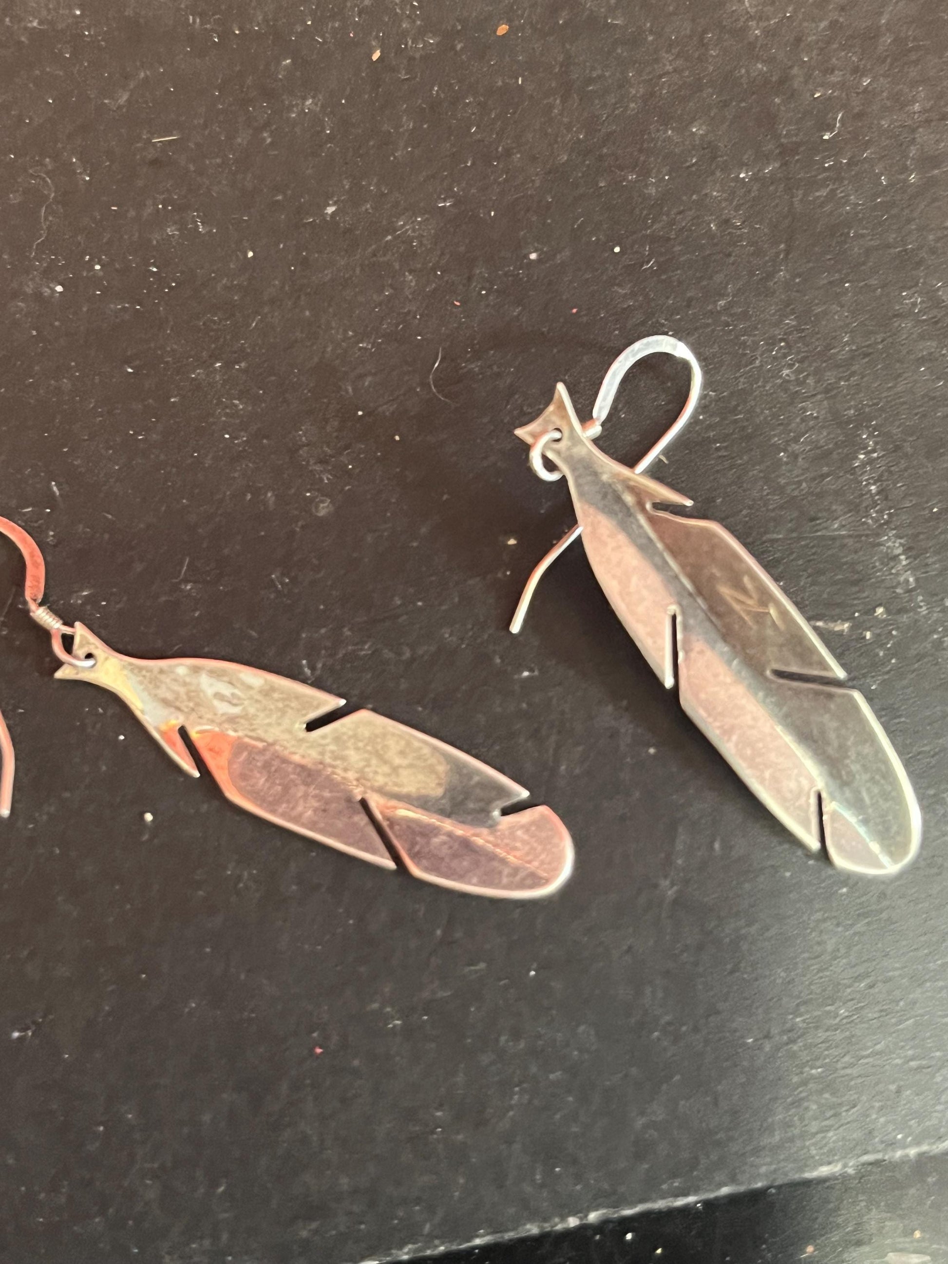 Lovely pair of 2 inch sterling silver indigenous first nations Pacific Northwest Coast feather earrings