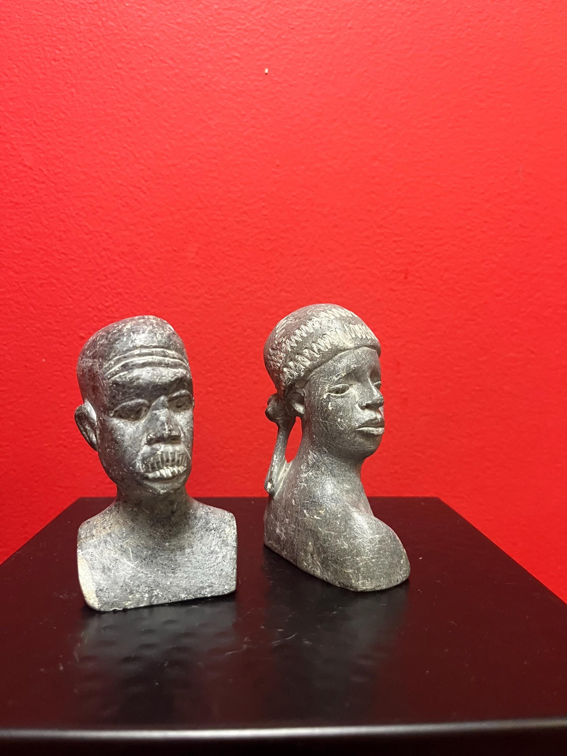 Lovely pair of old African stone statues signed and great detail - good value