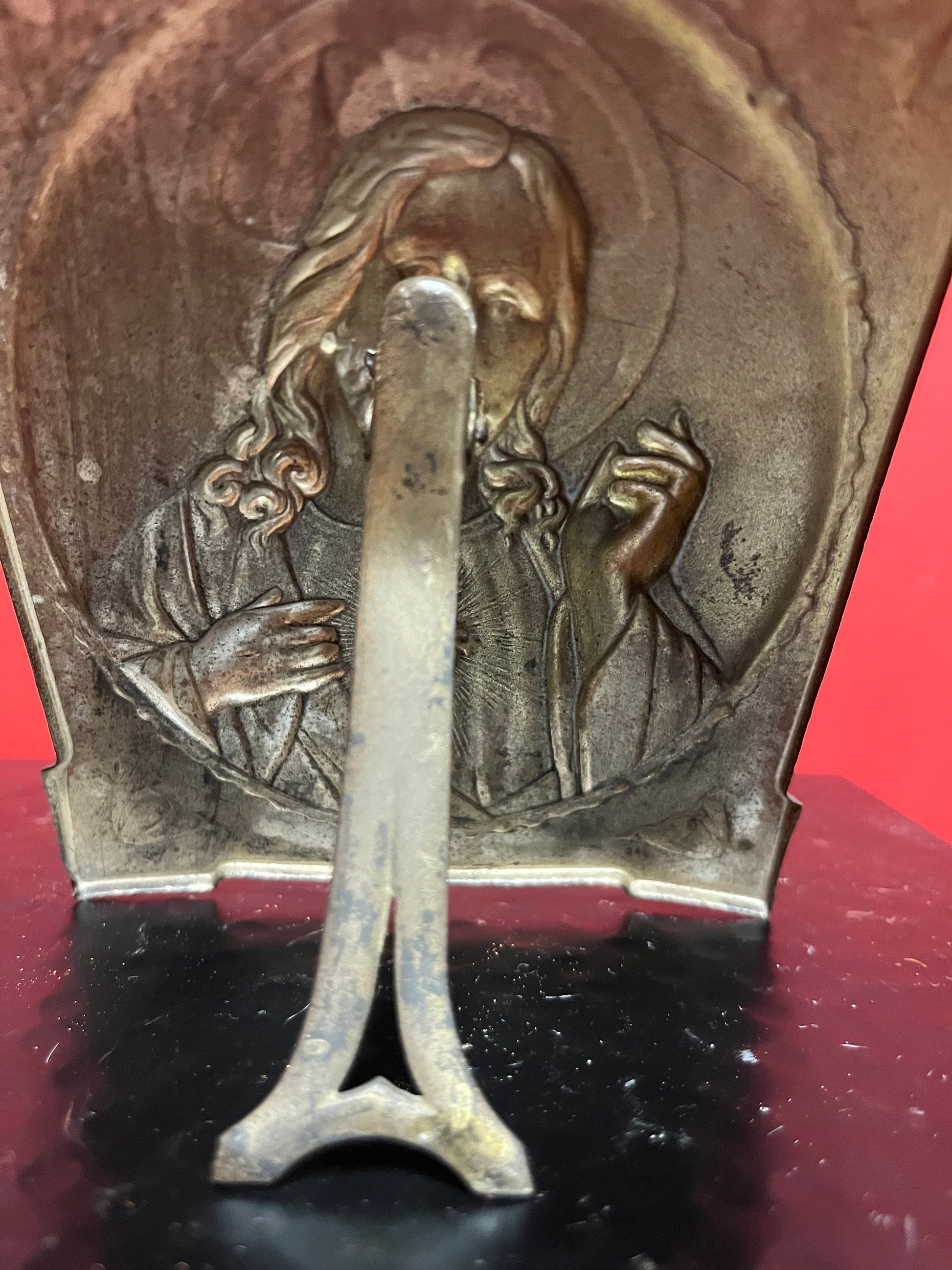Lovely, religious arts and crafts metal European plaque 5 x 4 stands alone Great gift