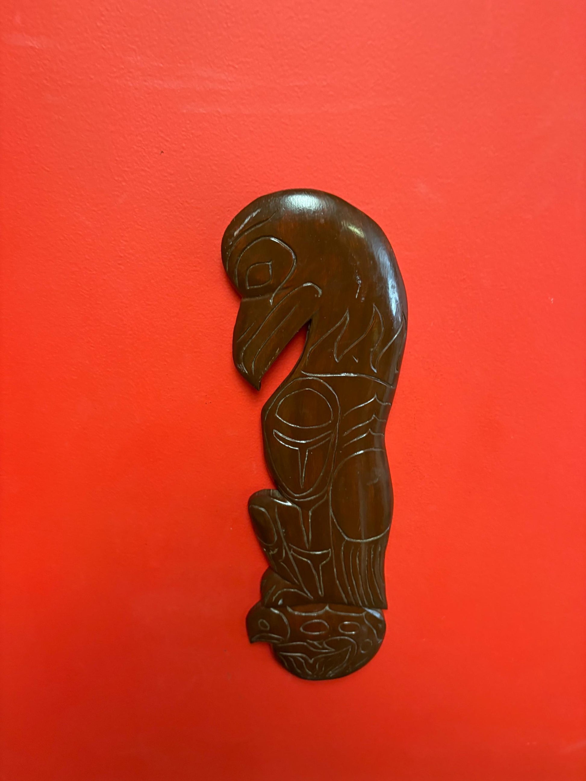 Lovely signed indigenous first nation Pacific north West Coast 19 x 6” wide Eagle and salmon plaque — great value