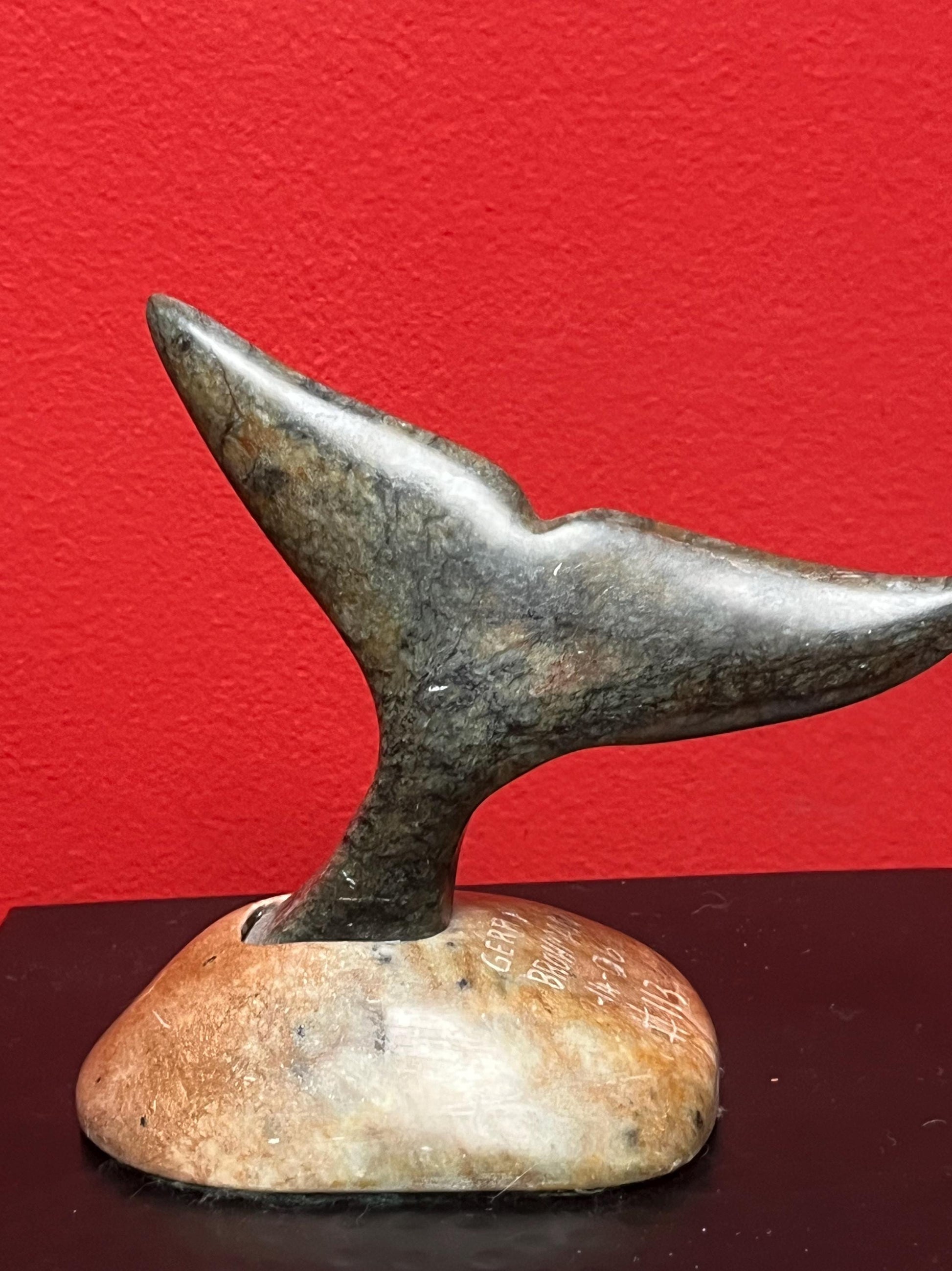 Lovely signed indigenous Inuit soapstone statue of a killer whales tail 6 x 6“ in perfect condition and wonderful detail