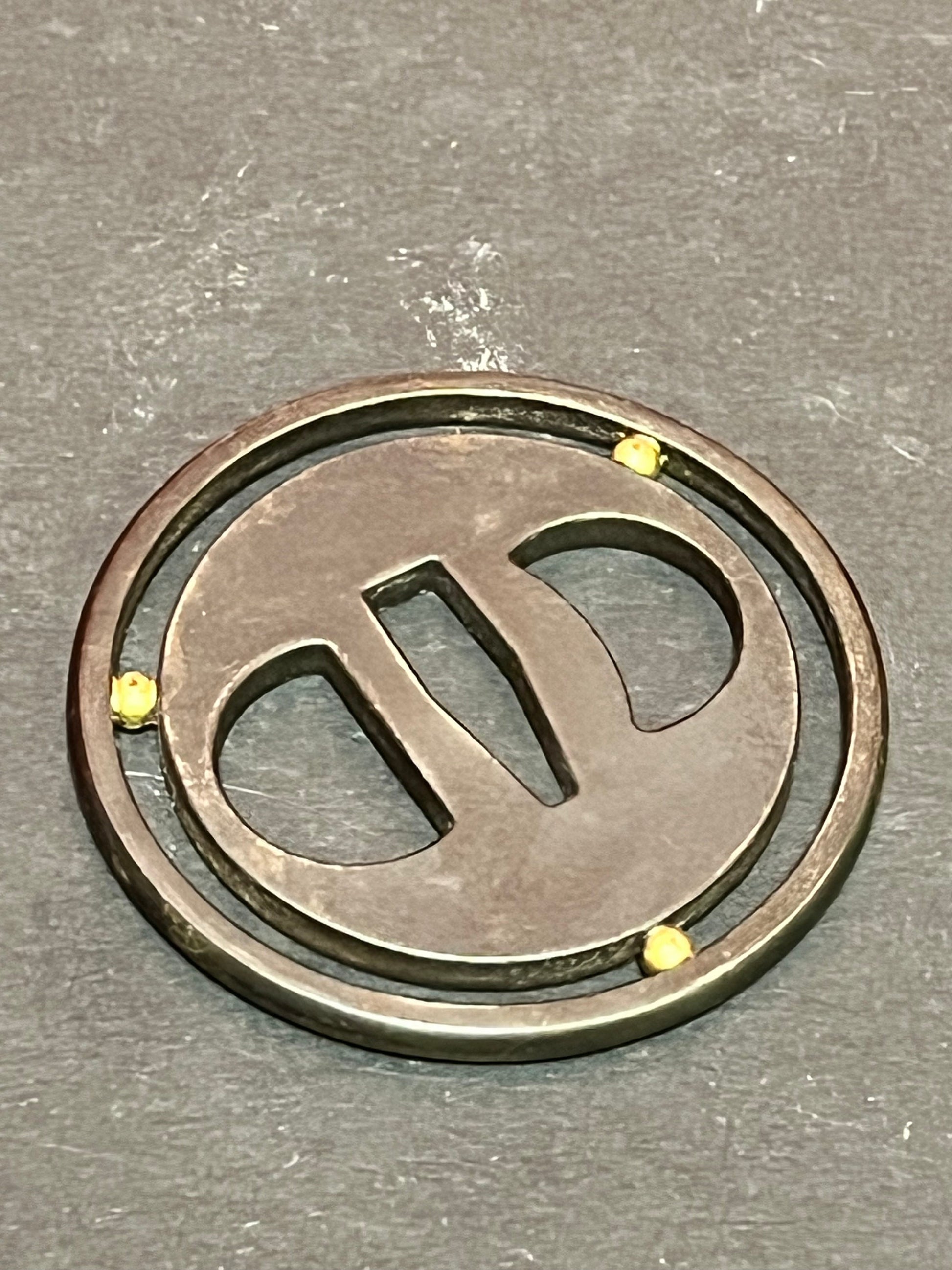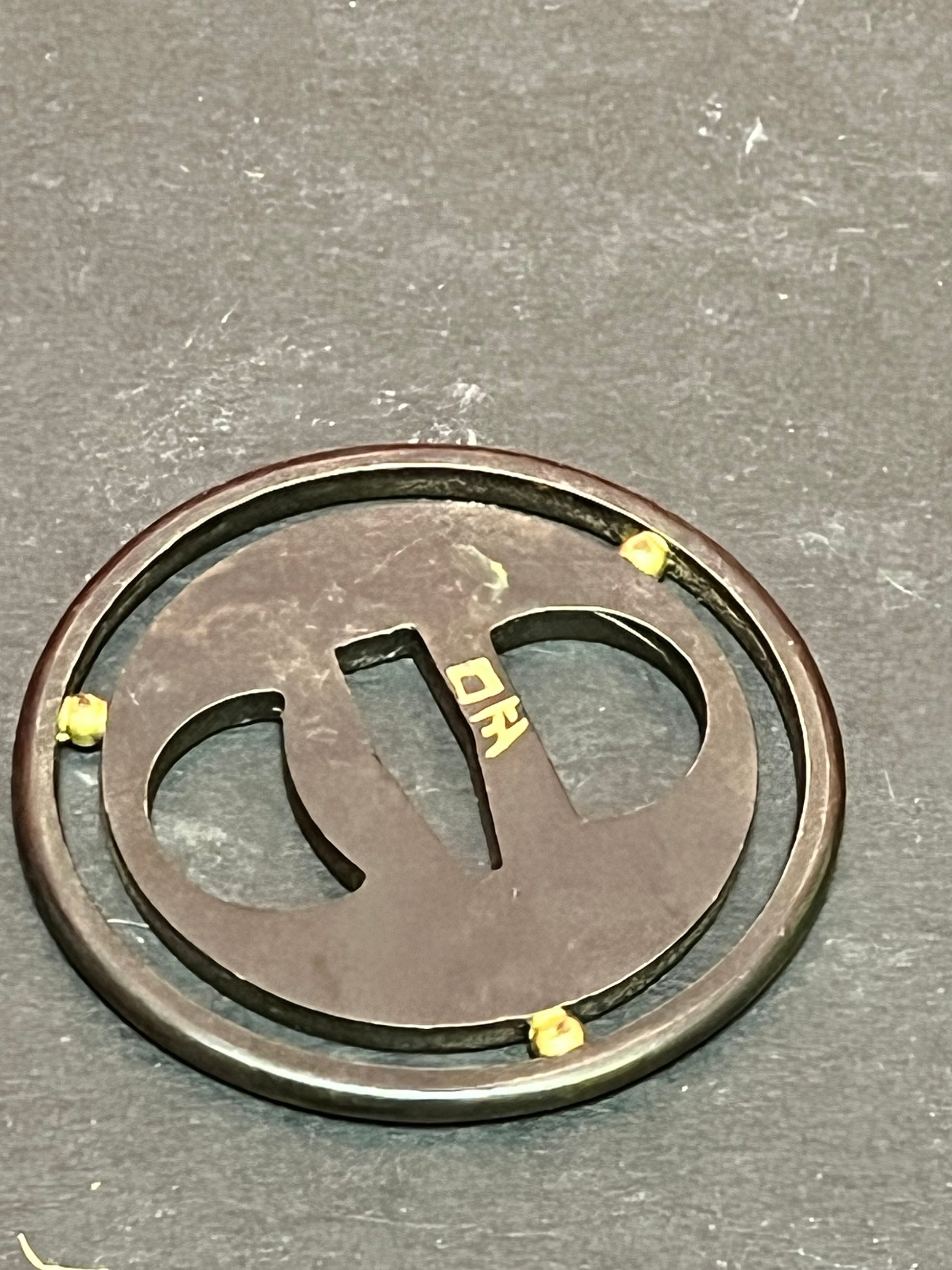 Lovely simple 3 inch bronze signed Japanese samurai tsuba wonderful Patina and Condition from important collection