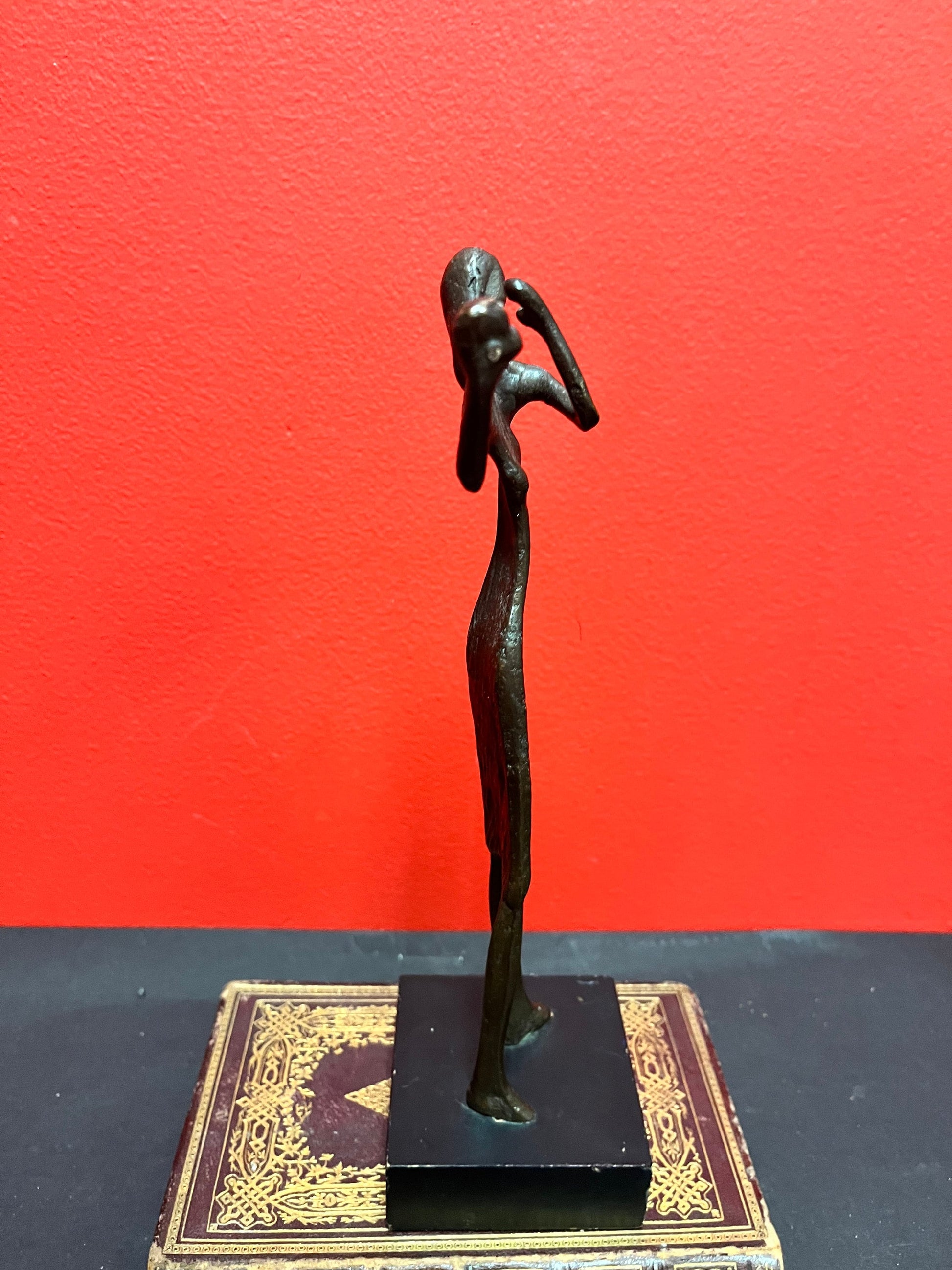 Lovely stylized 10 inch bronze flutist and on stand super gift