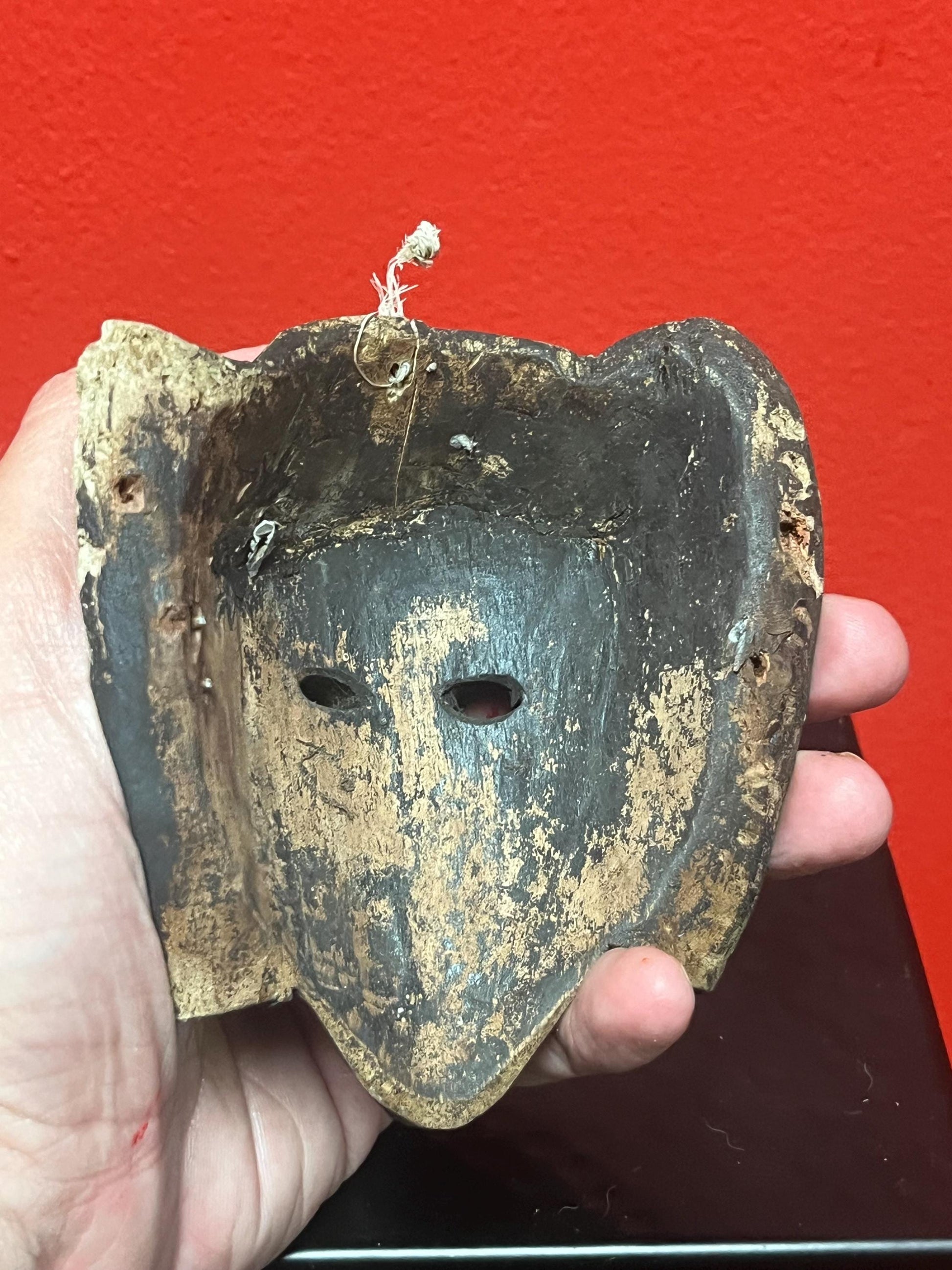 Lovely Unusual 4 1/2 x 4 wide antique African passport mask with magnificent patina wow