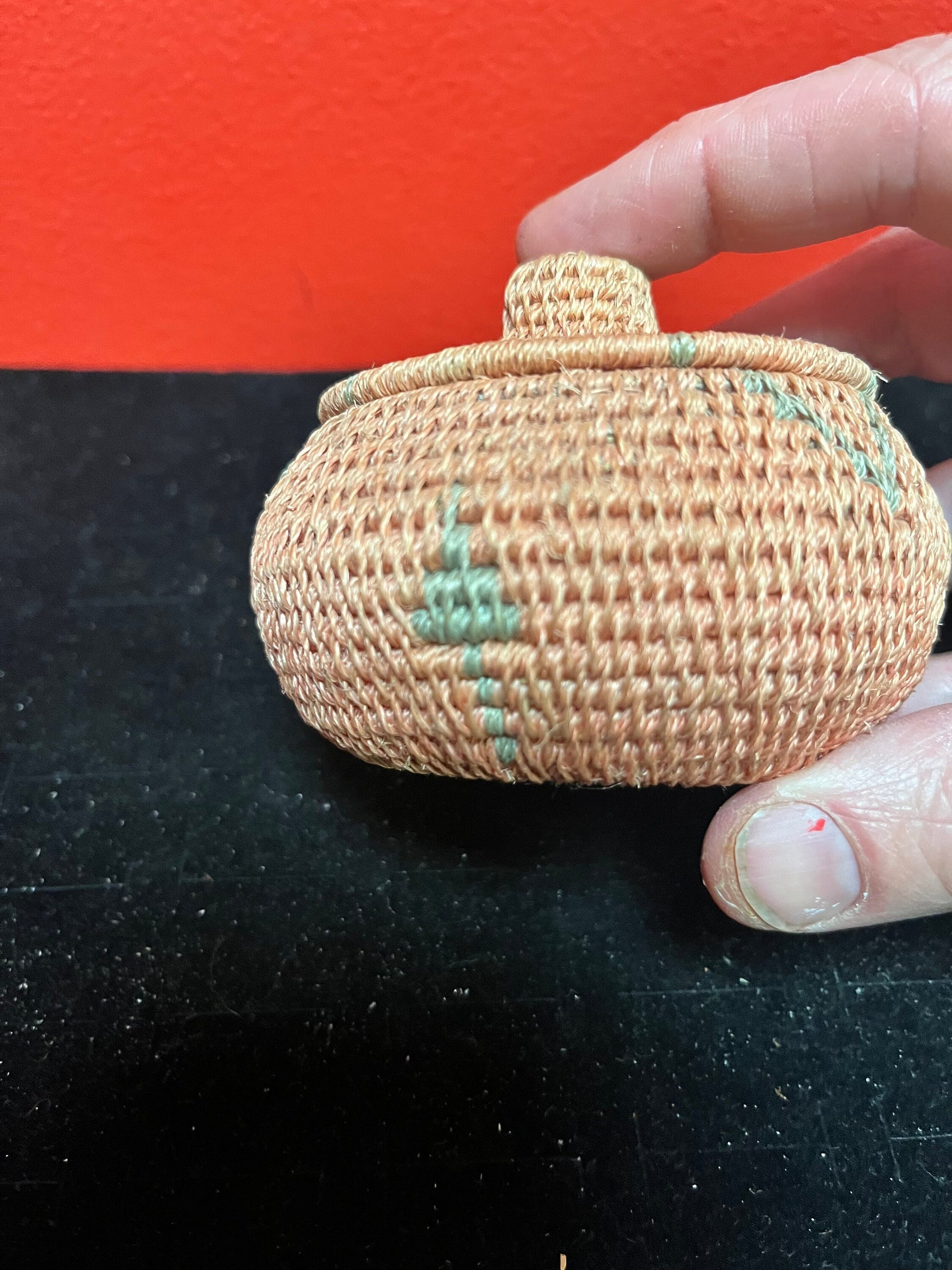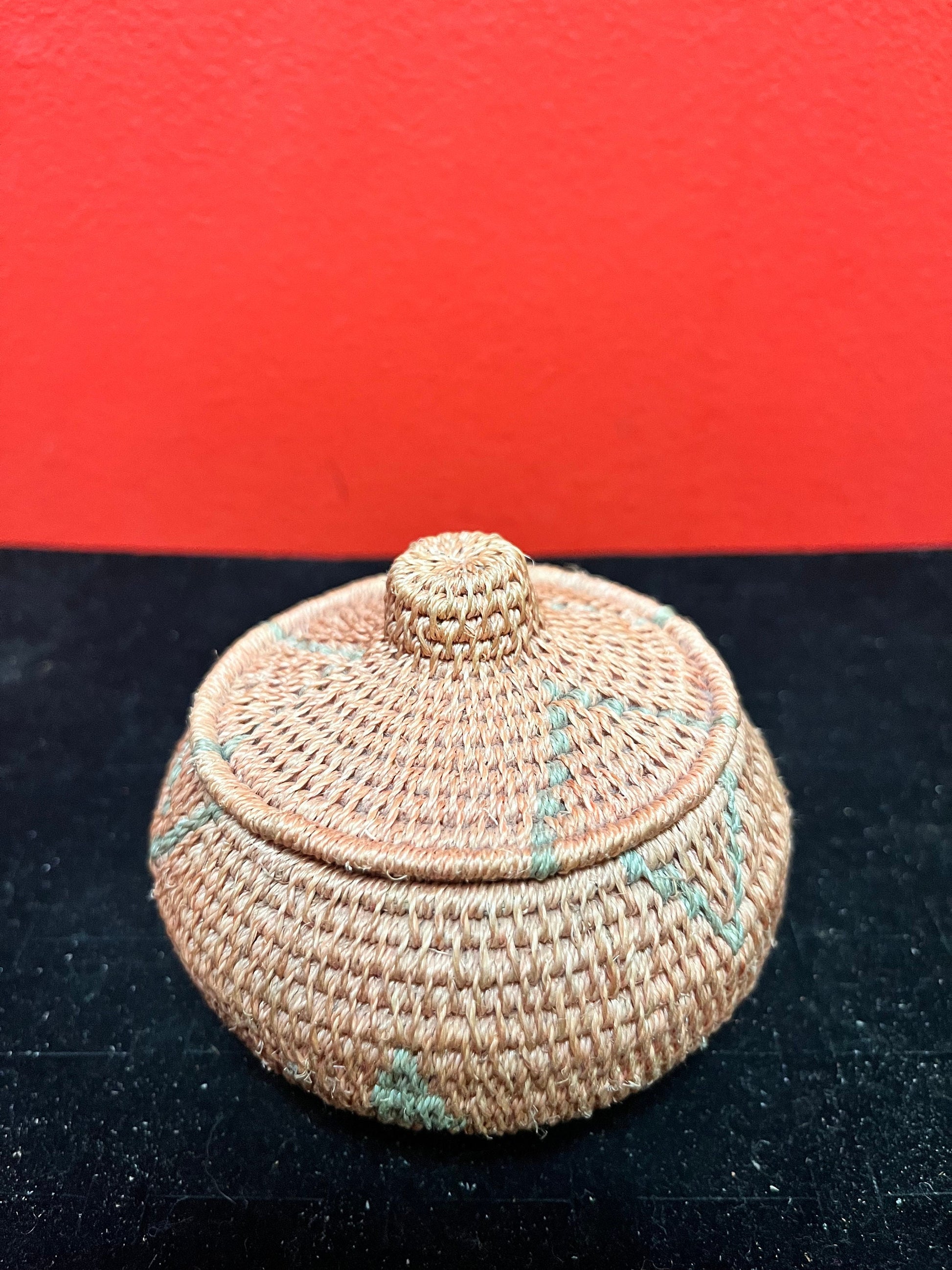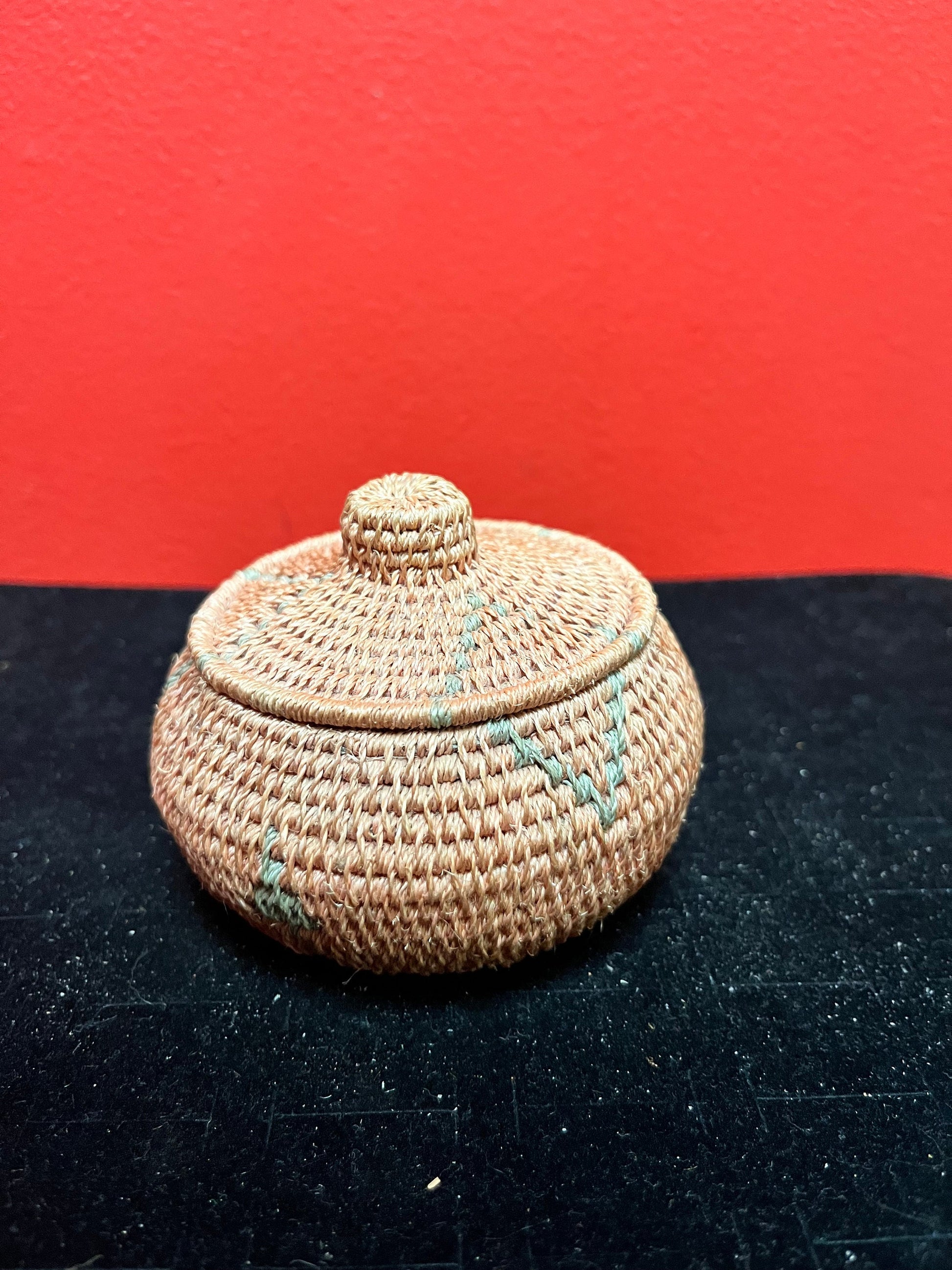 Lovely Unusual indigenous Canadian First Nations 4 inch high woven basket in perfect condition