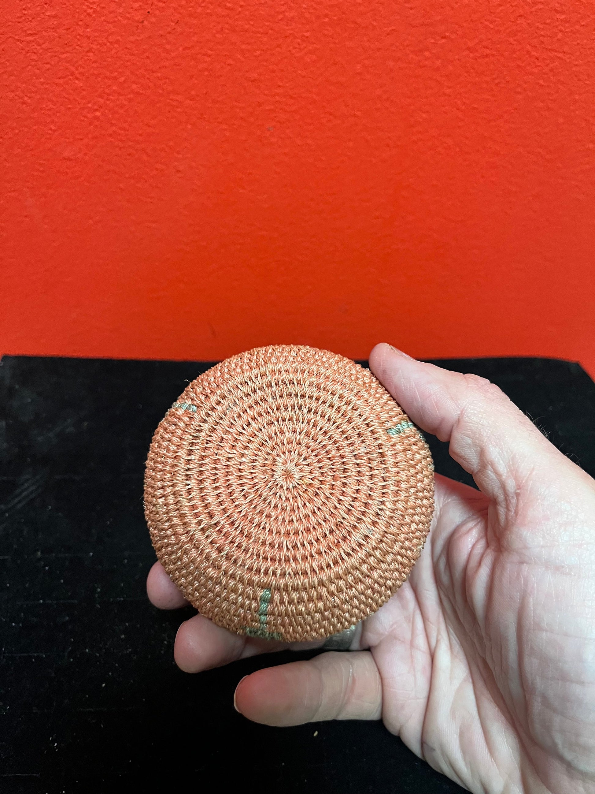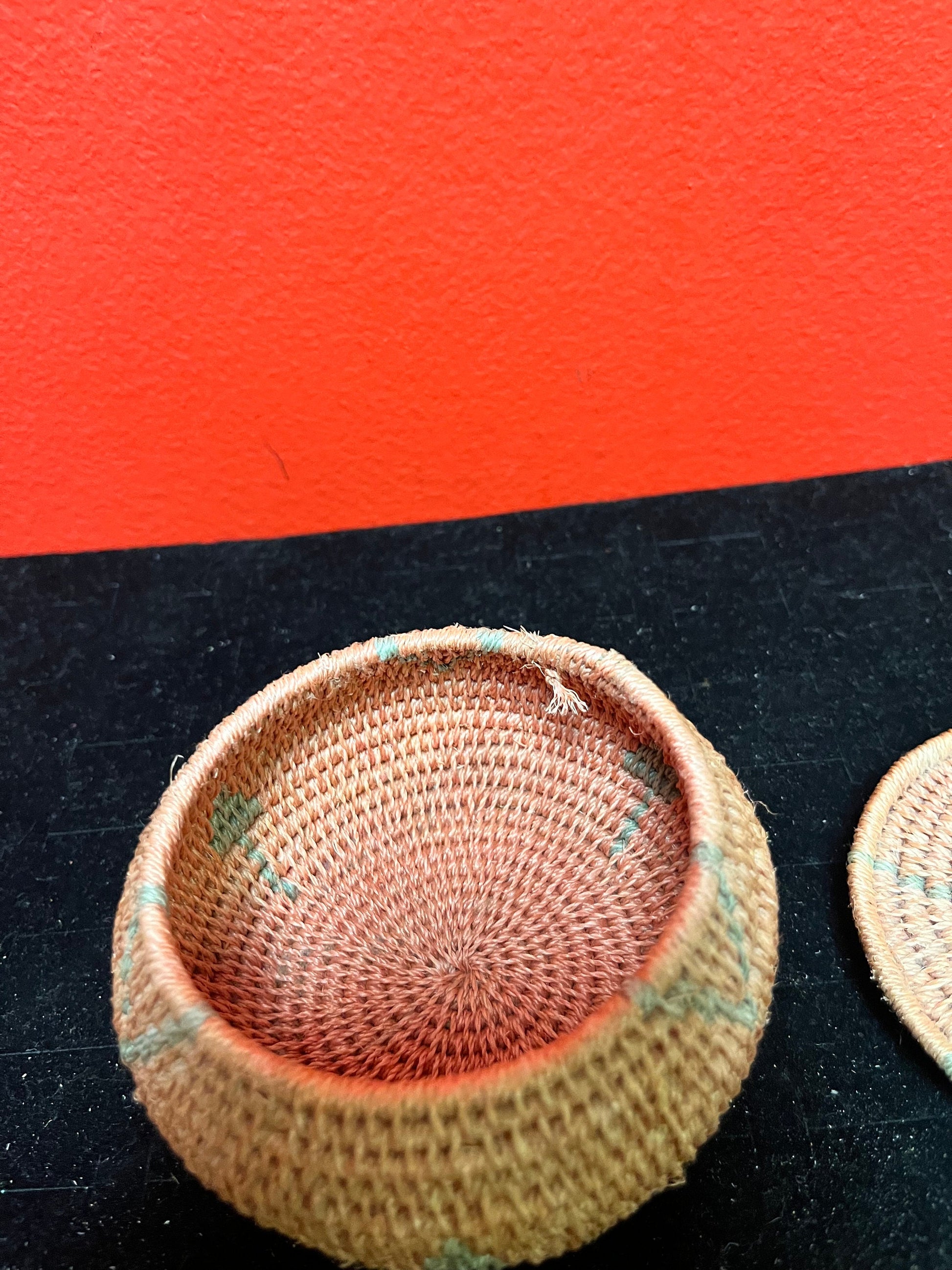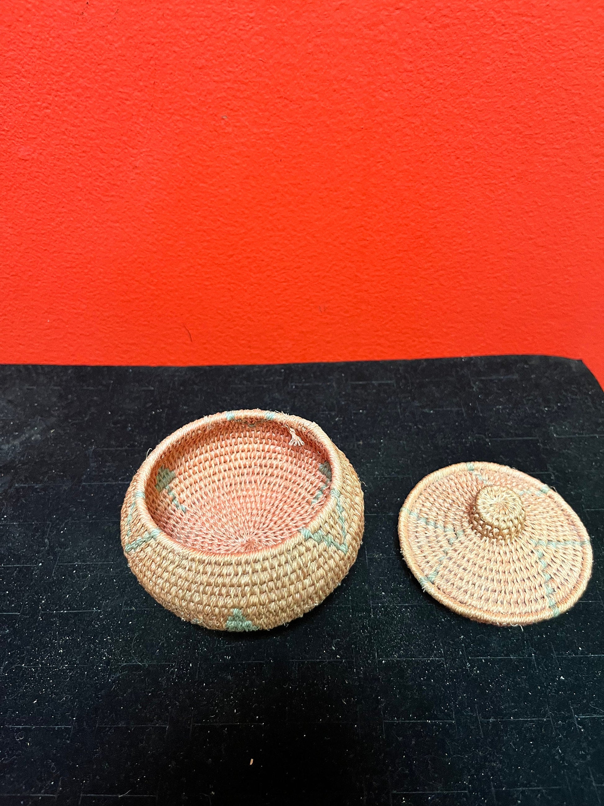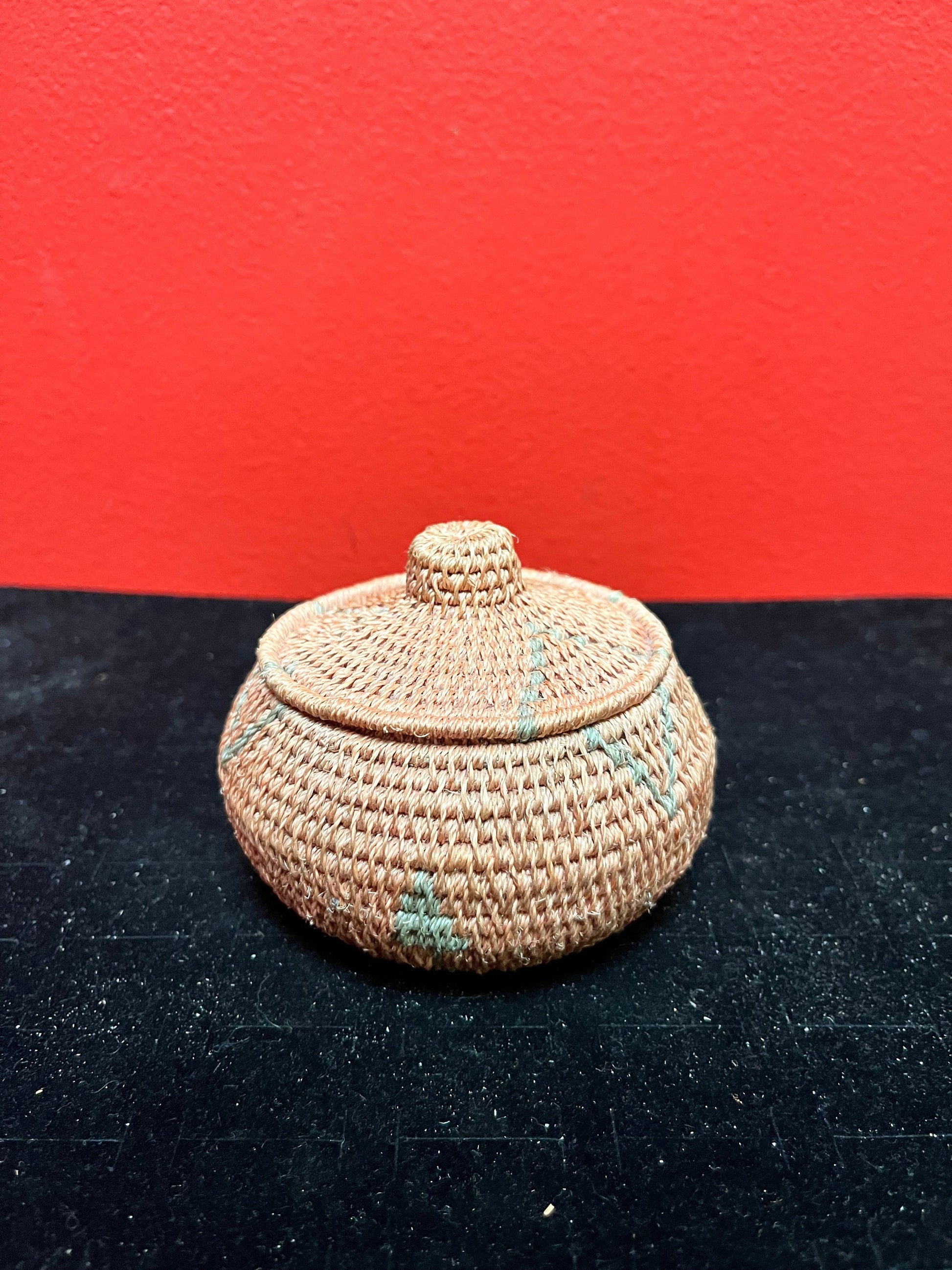 Lovely Unusual indigenous Canadian First Nations 4 inch high woven basket in perfect condition