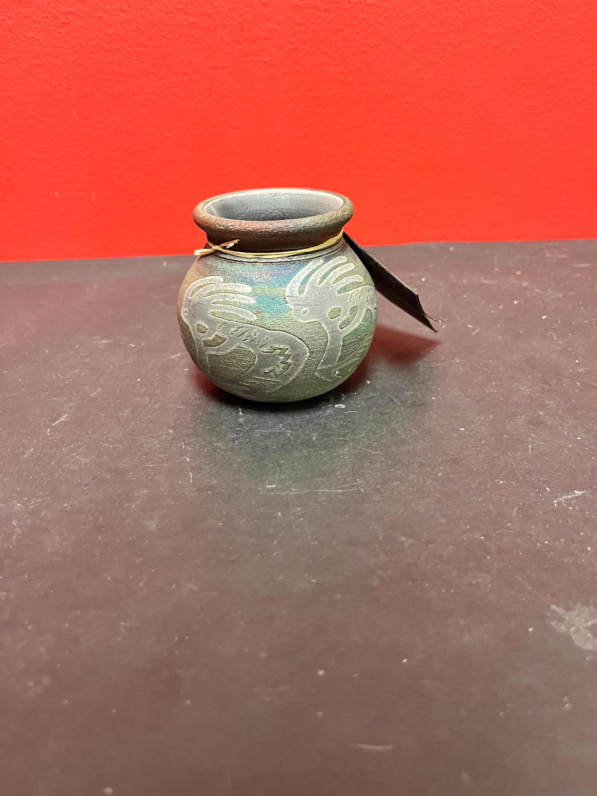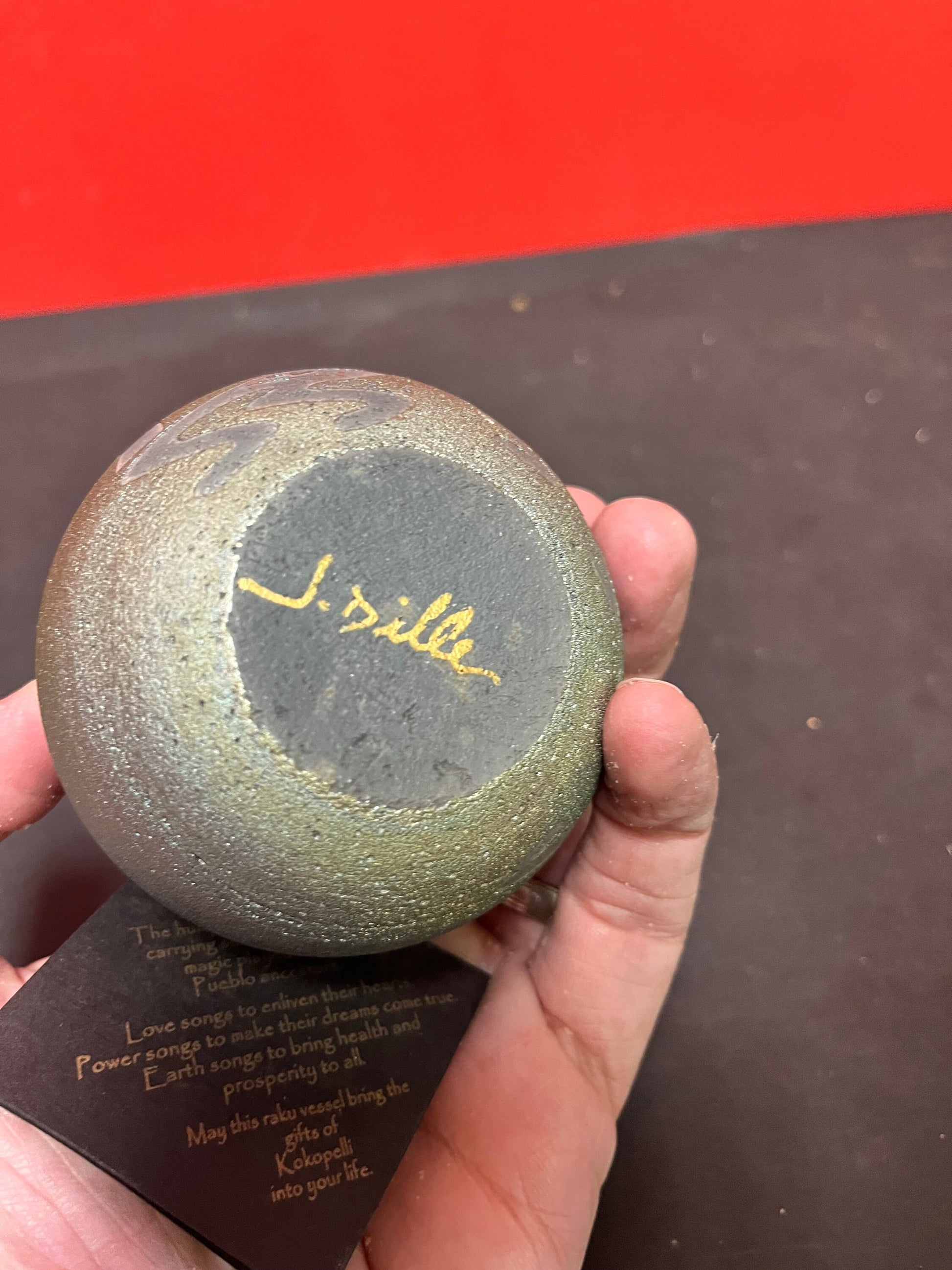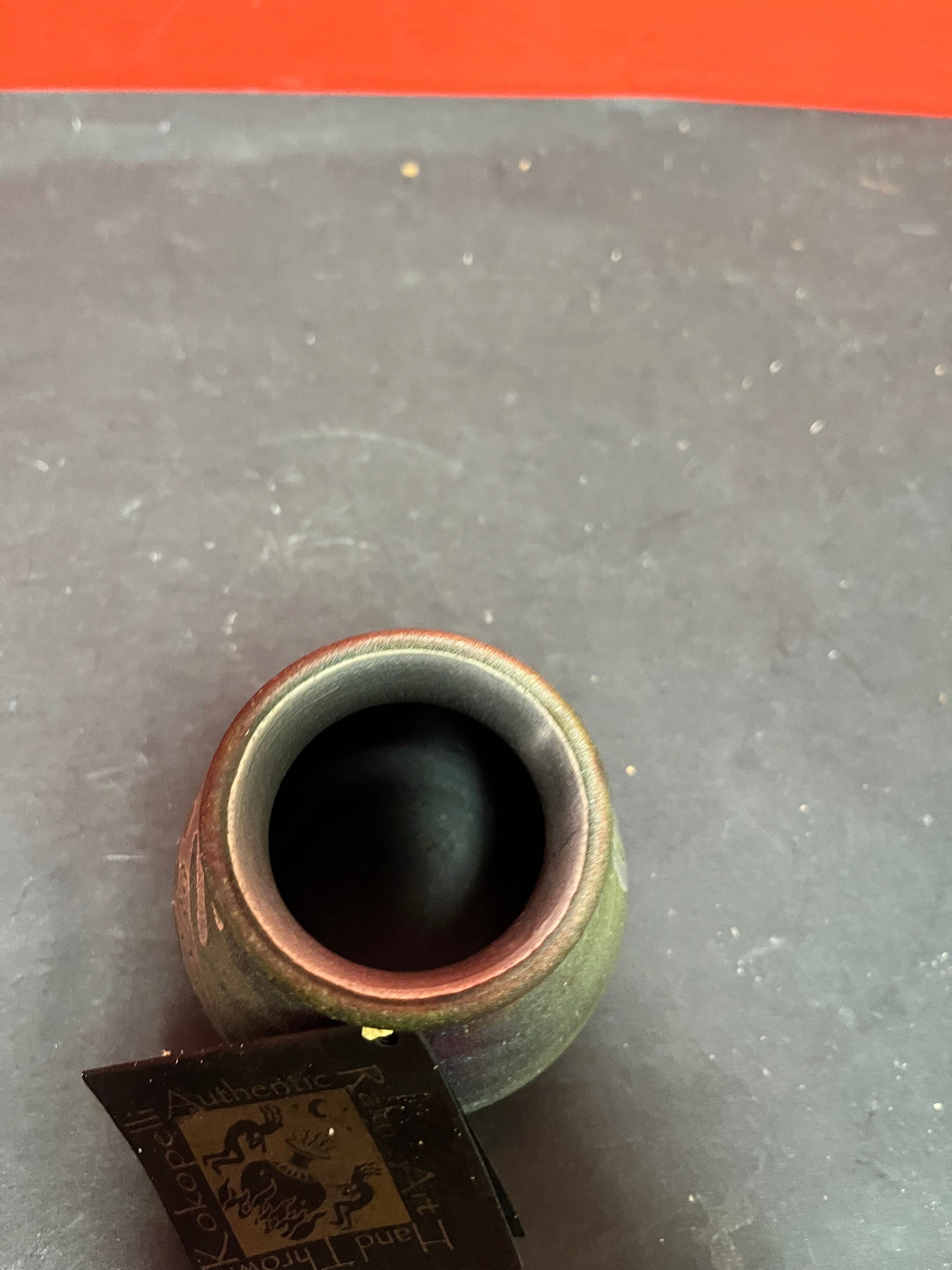 Lovely vintage Navajo Kokopelli signed handmade pottery vase with the original tag perfect condition
