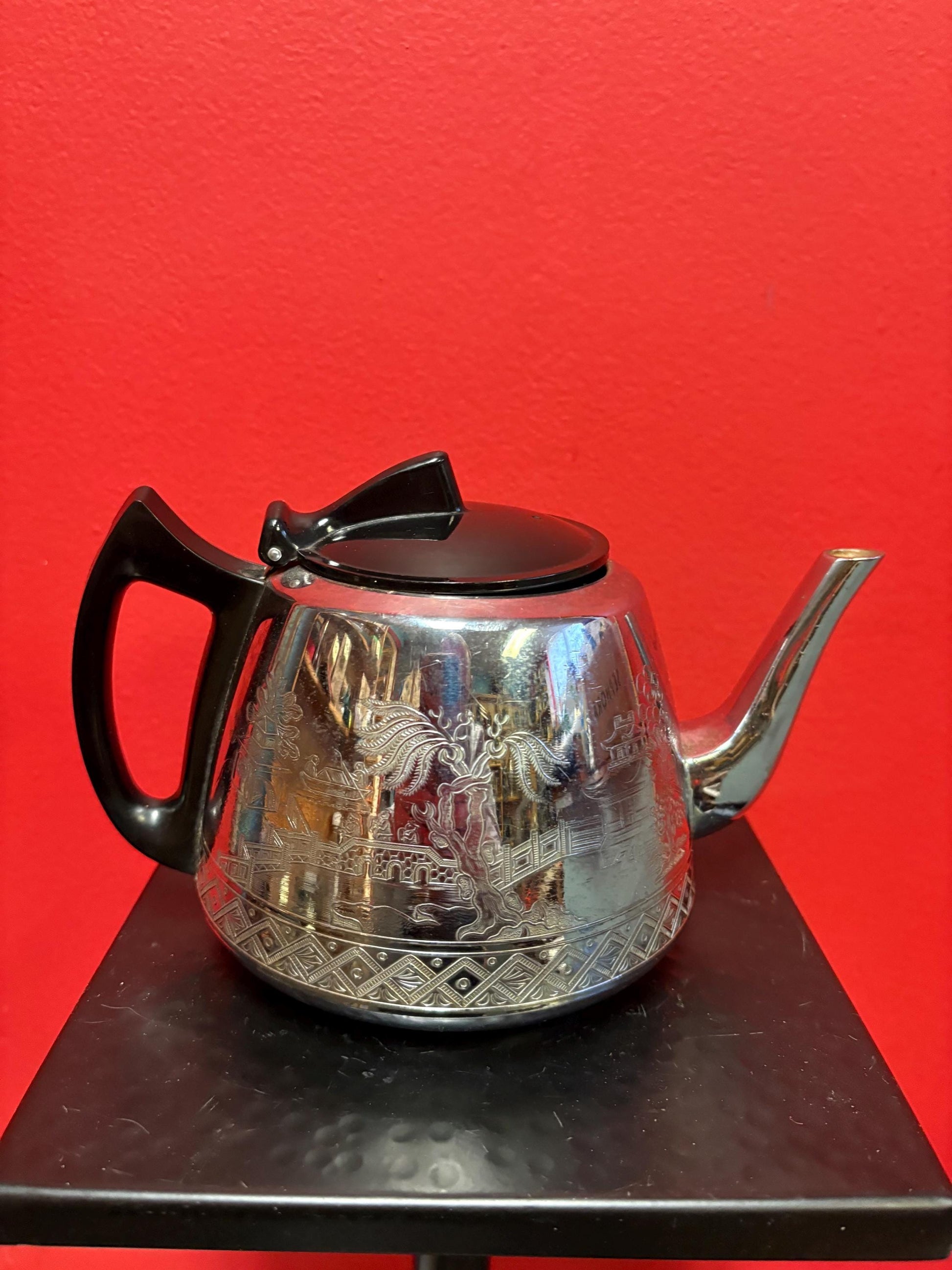 Lovely Willow Ware vintage chrome teapot - 8 x 5 tall and ready to use see photos Unusual cool piece