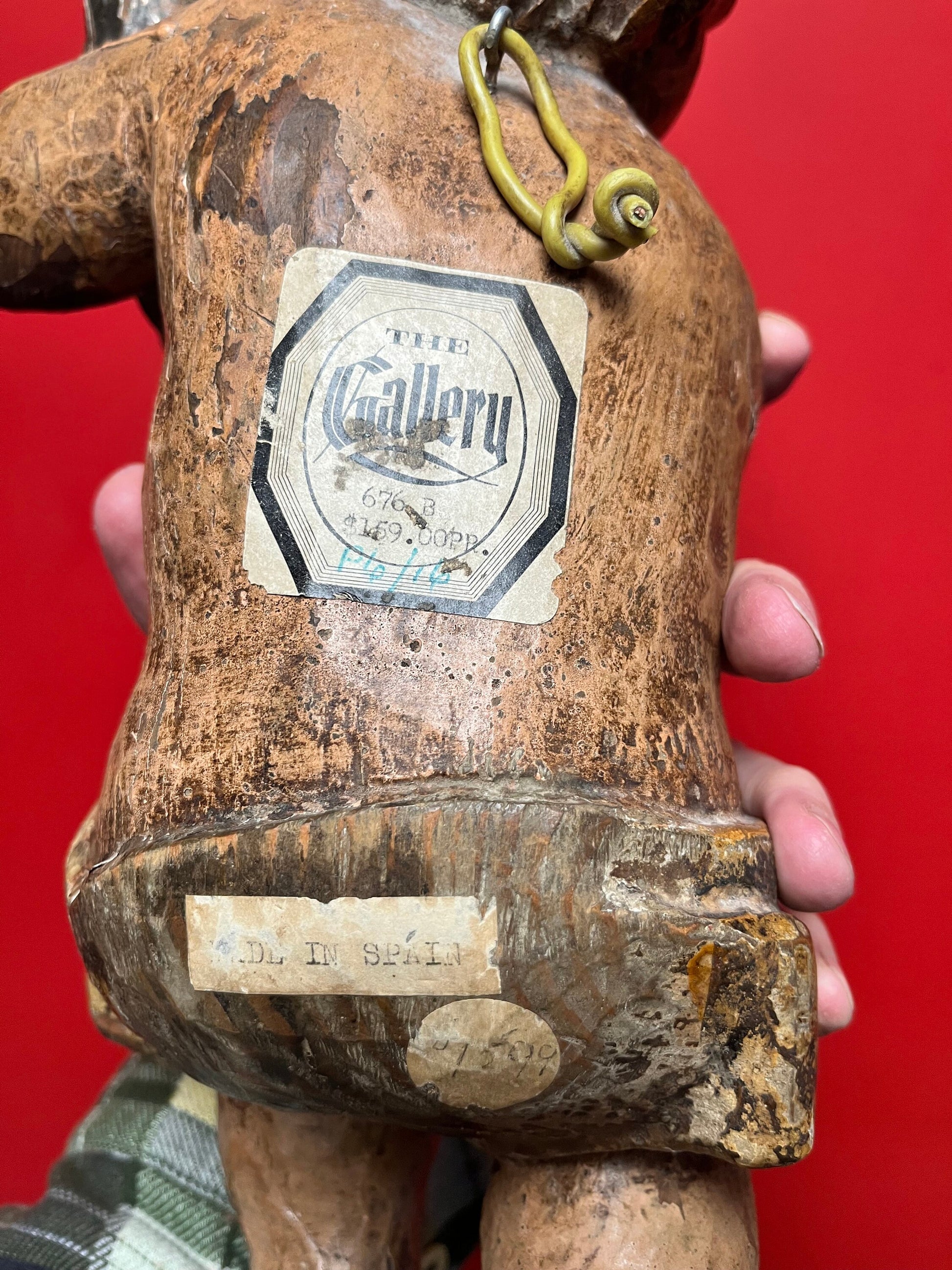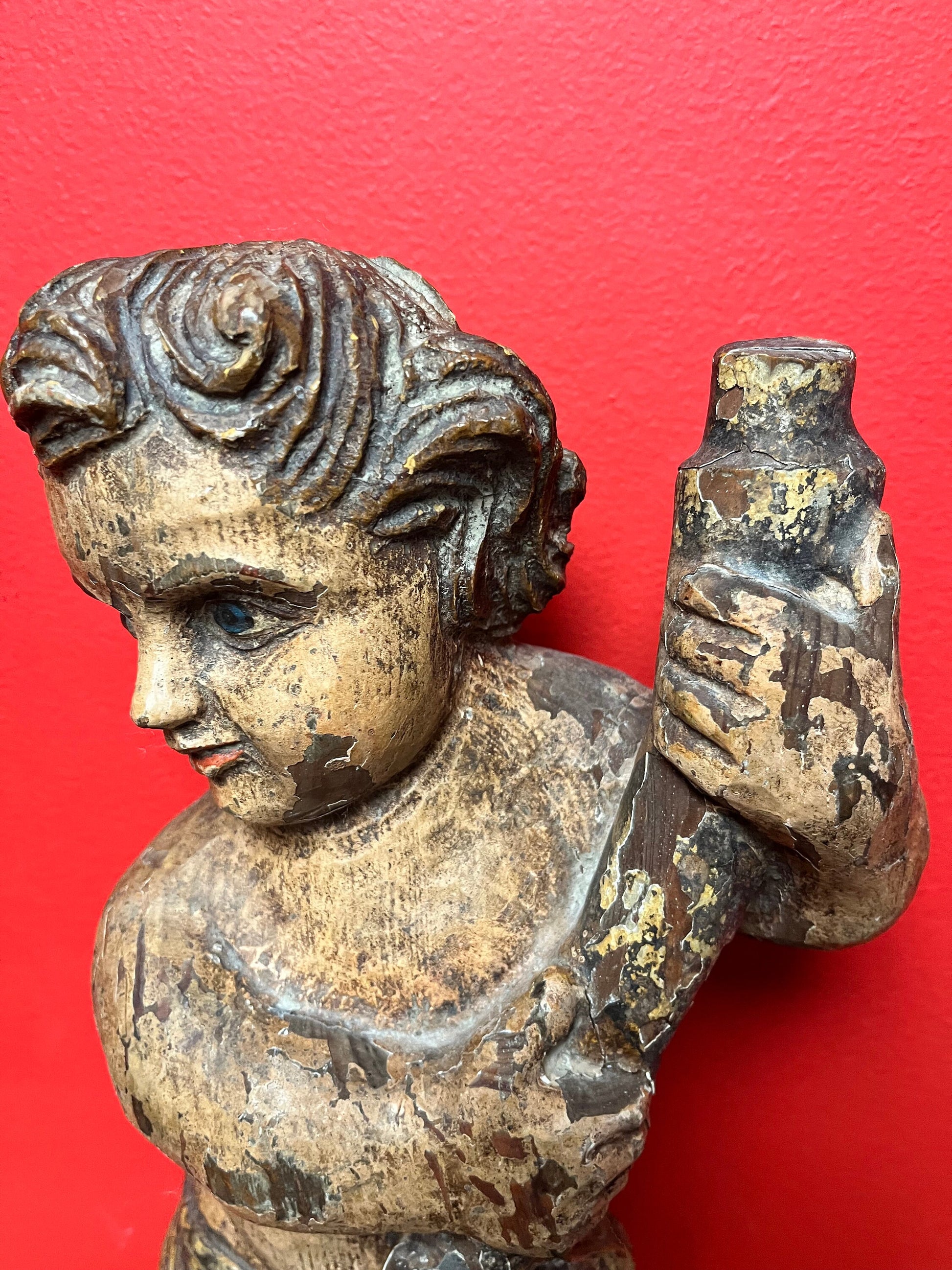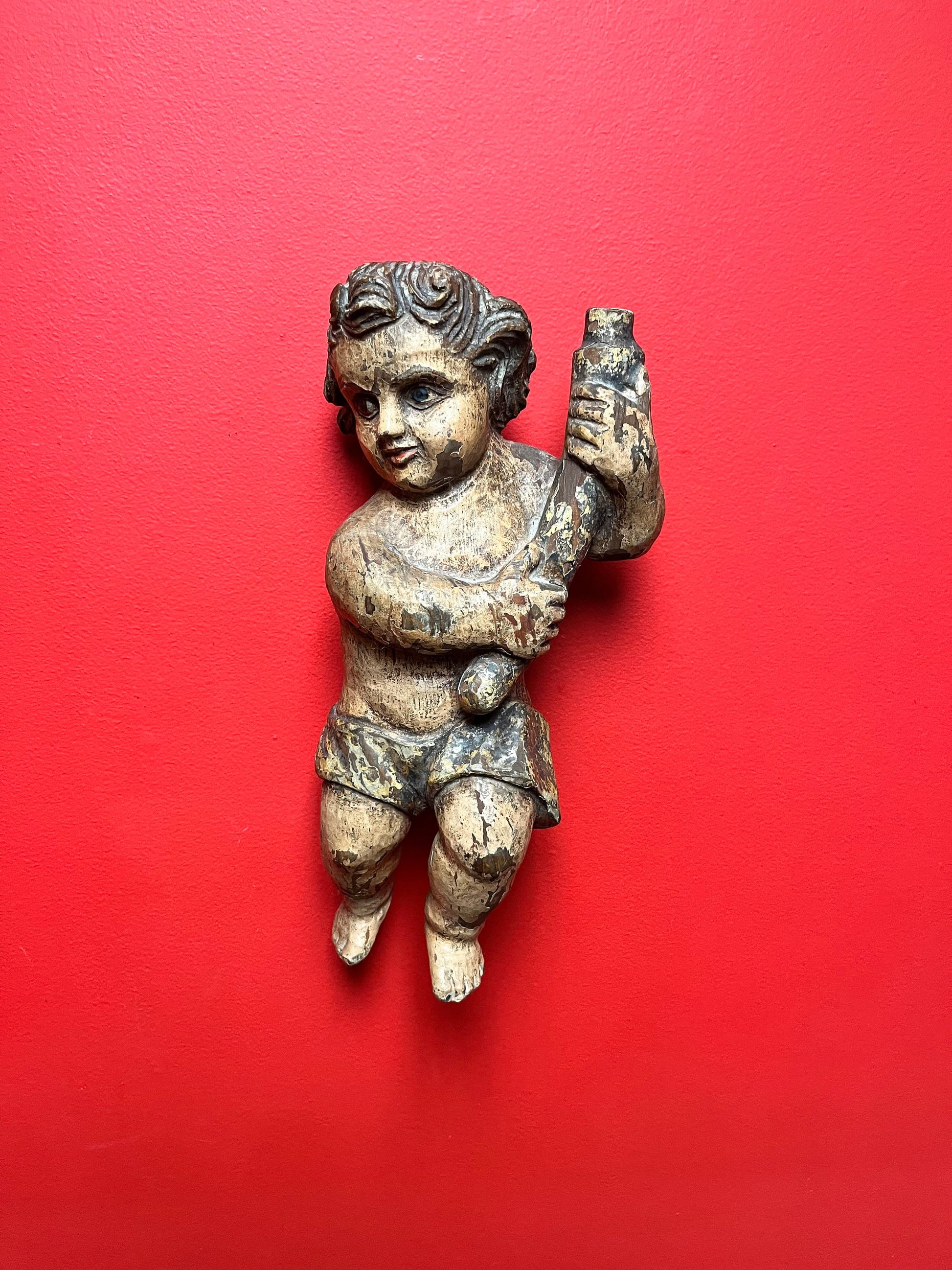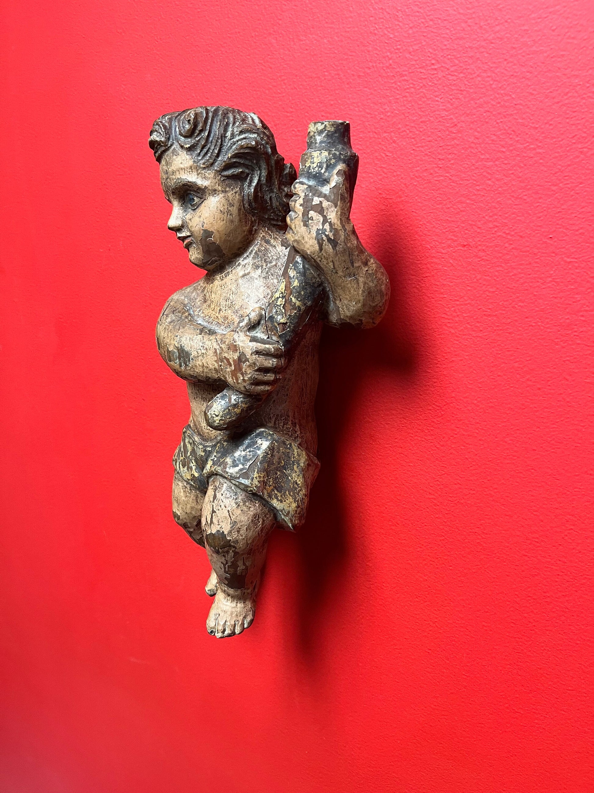 magnificent 14 inch tall late 19 century Spanish polychrome cherub plaque wonderful provenance on back exquisite patina