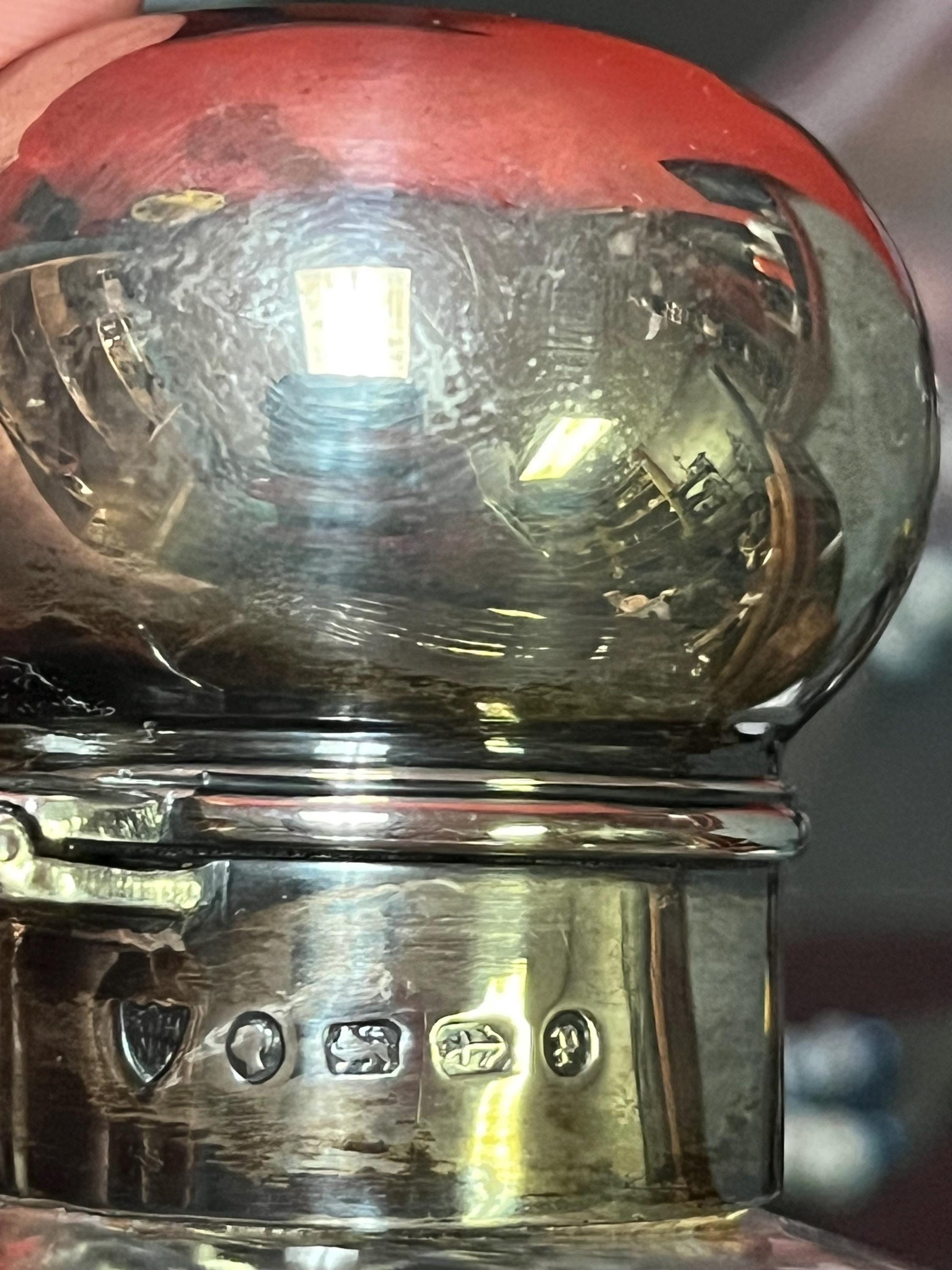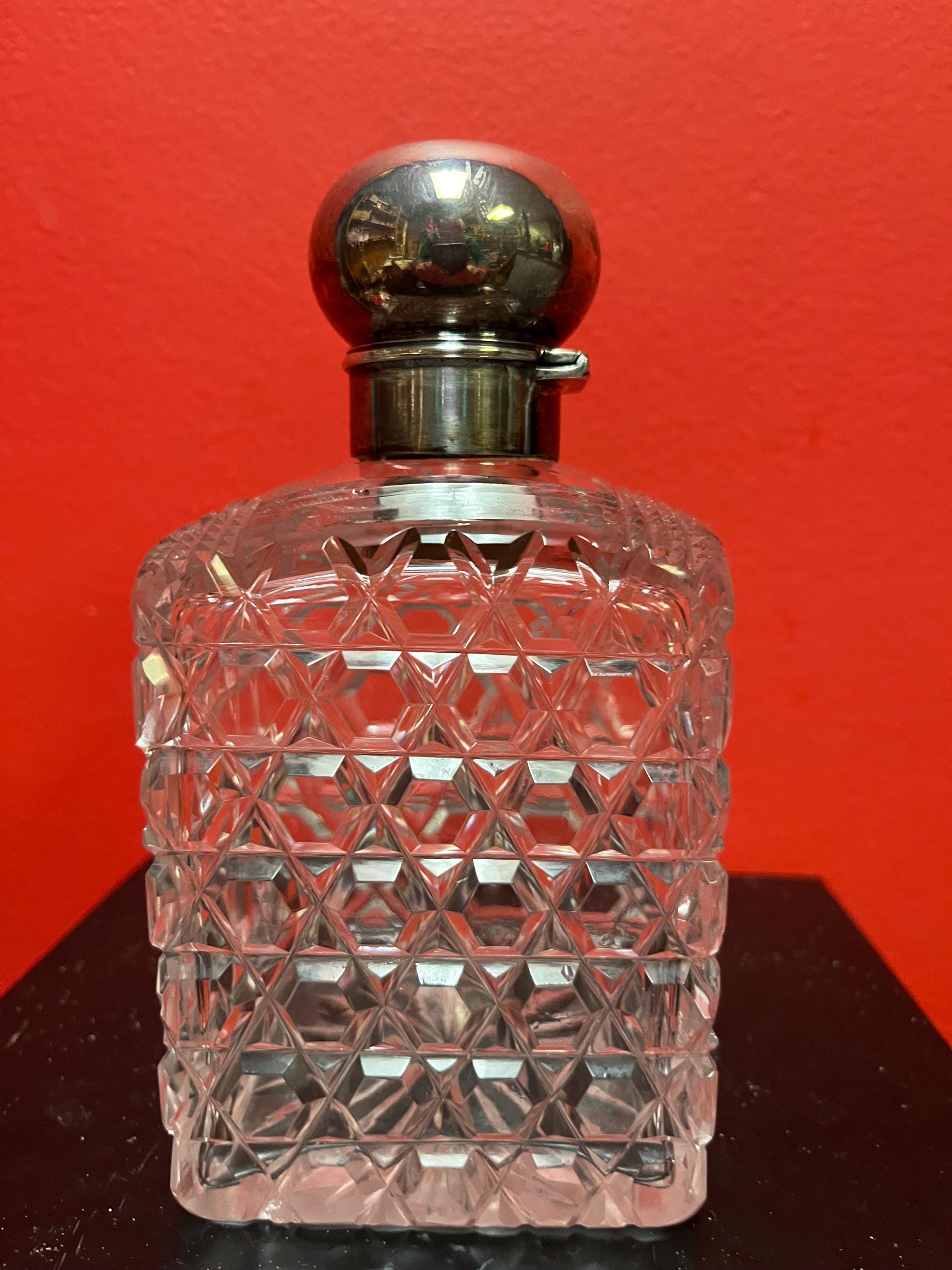 Magnificent 6 inch tall antique hallmark 1898 mens crystal and Sterling scent bottle in fabulous condition with original stopper