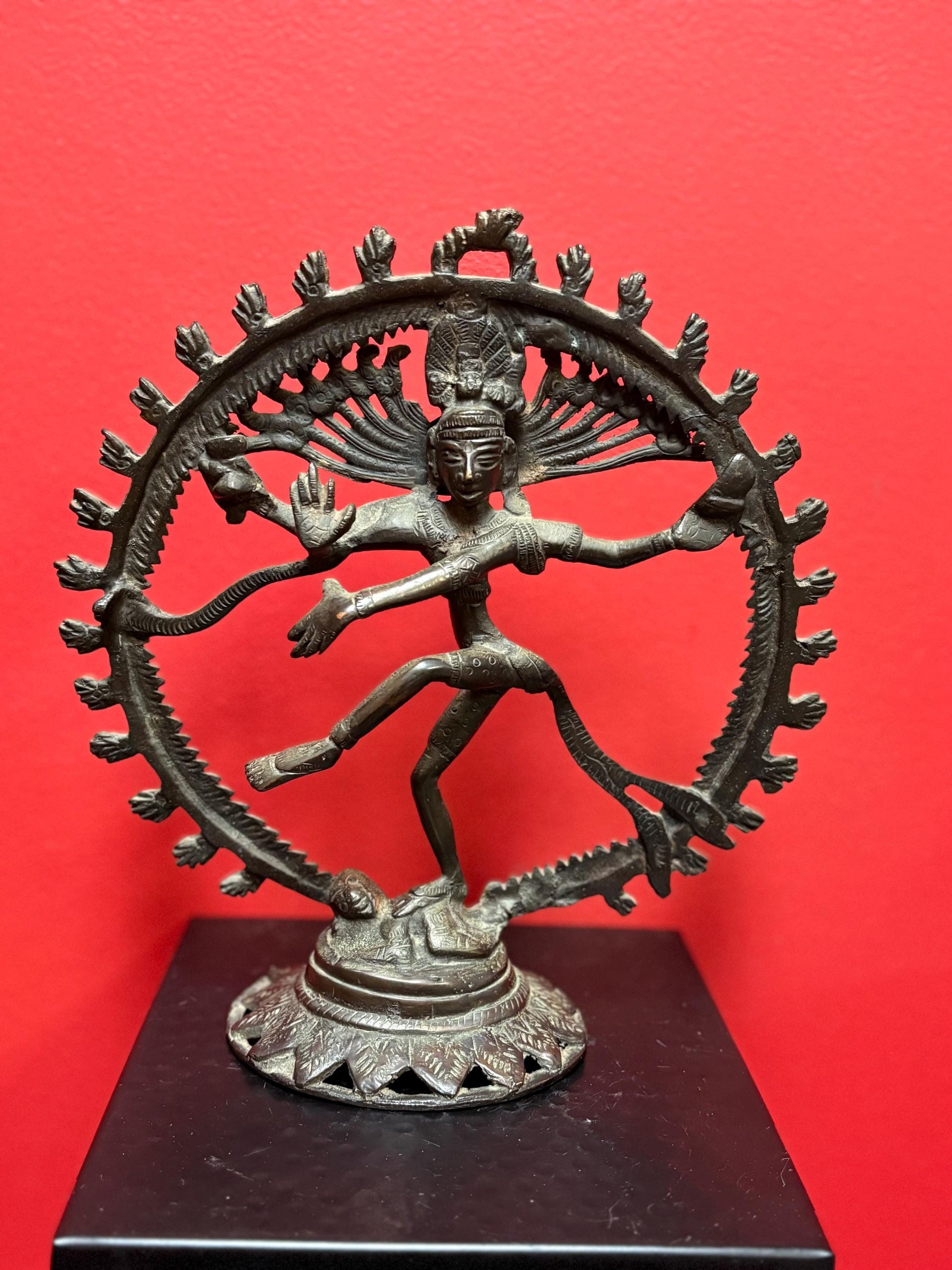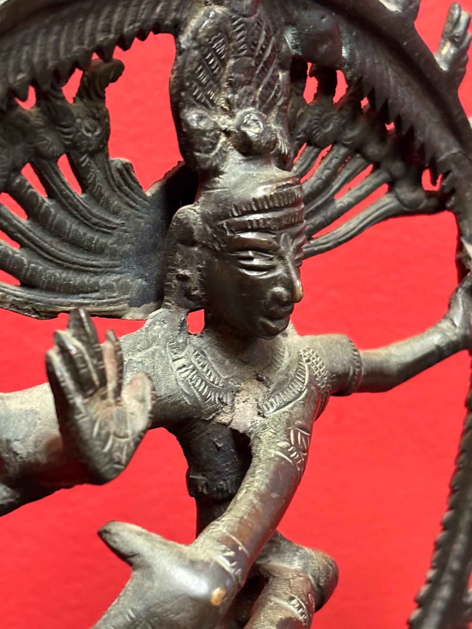 Magnificent antique 19 century 10 inch tall well detailed bronze shiva statue — incredible patina and imagery— the very best