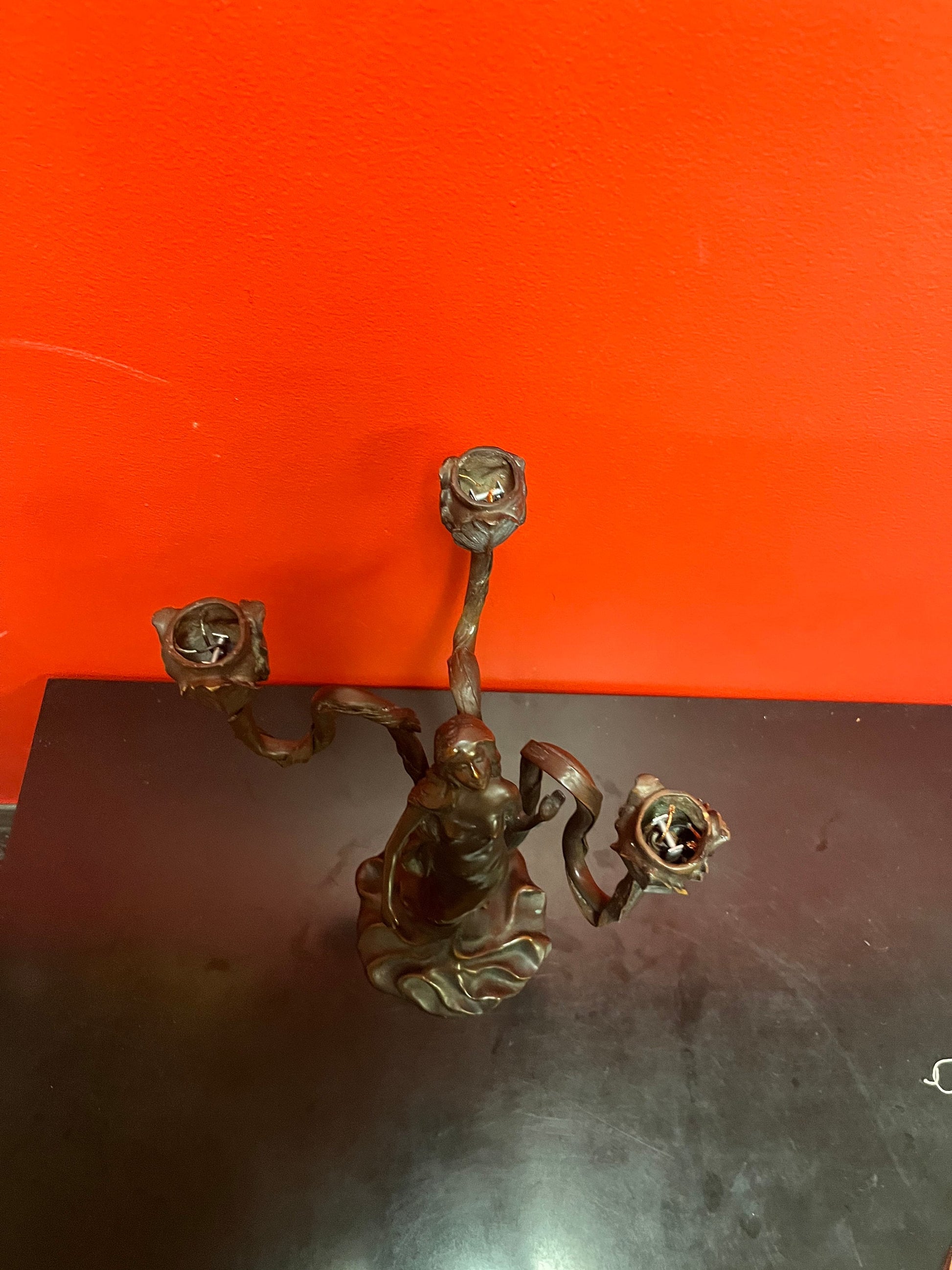 Magnificent antique European bronze lady candelabra/ lamp fabulous Patina and Condition an absolute beauty - 14 inches tall! - wow
