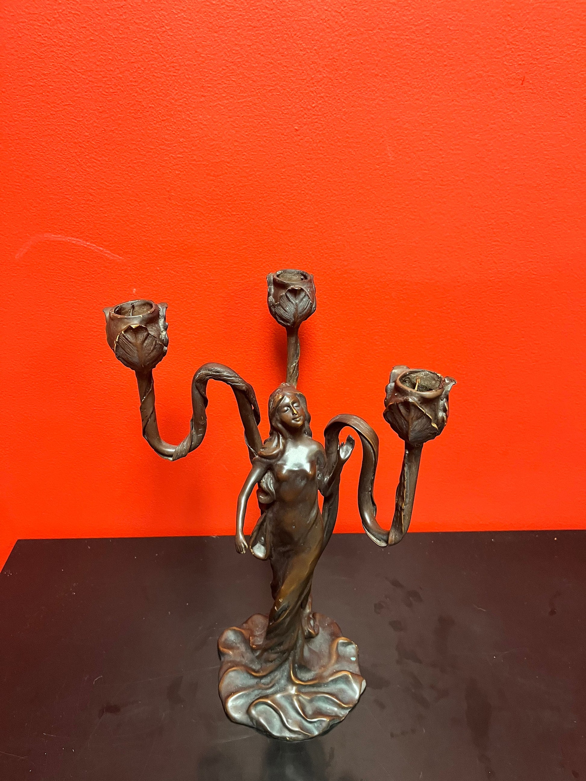 Magnificent antique European bronze lady candelabra/ lamp fabulous Patina and Condition an absolute beauty - 14 inches taller! - wow