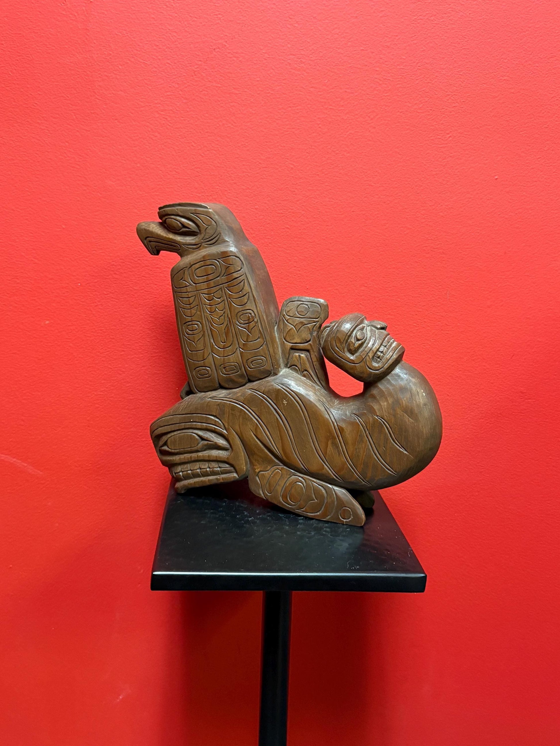Magnificent indigenous first nations pacific north West Coast 10 x 10” 3-D carving of Eagle human killer whale transformation — wow
