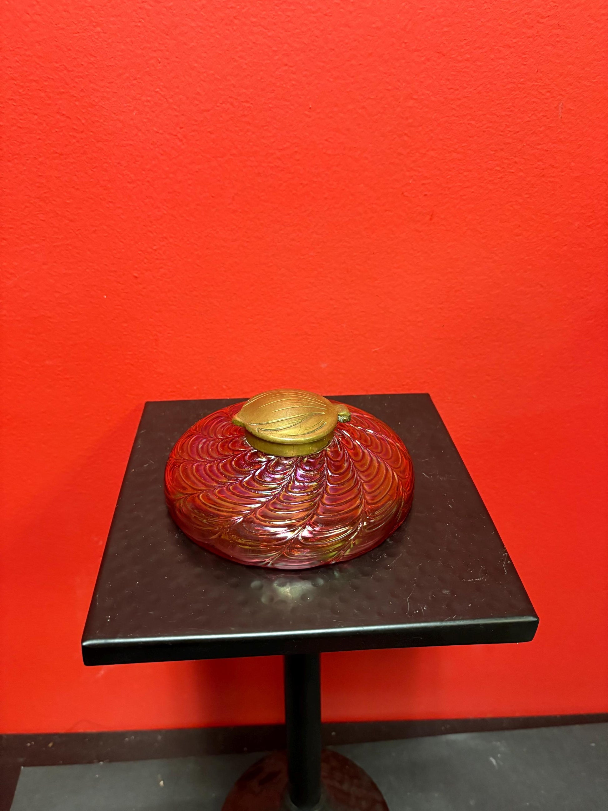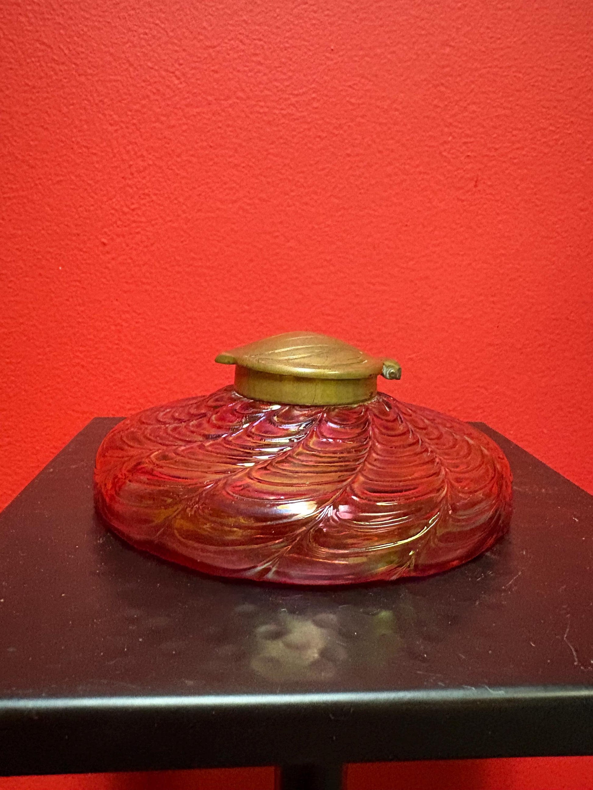 Magnificent Kralik Loetz authentic art nouveau inkwell with bronze top— fabulous colour and condition — wow — 5 x 2 1/2” high
