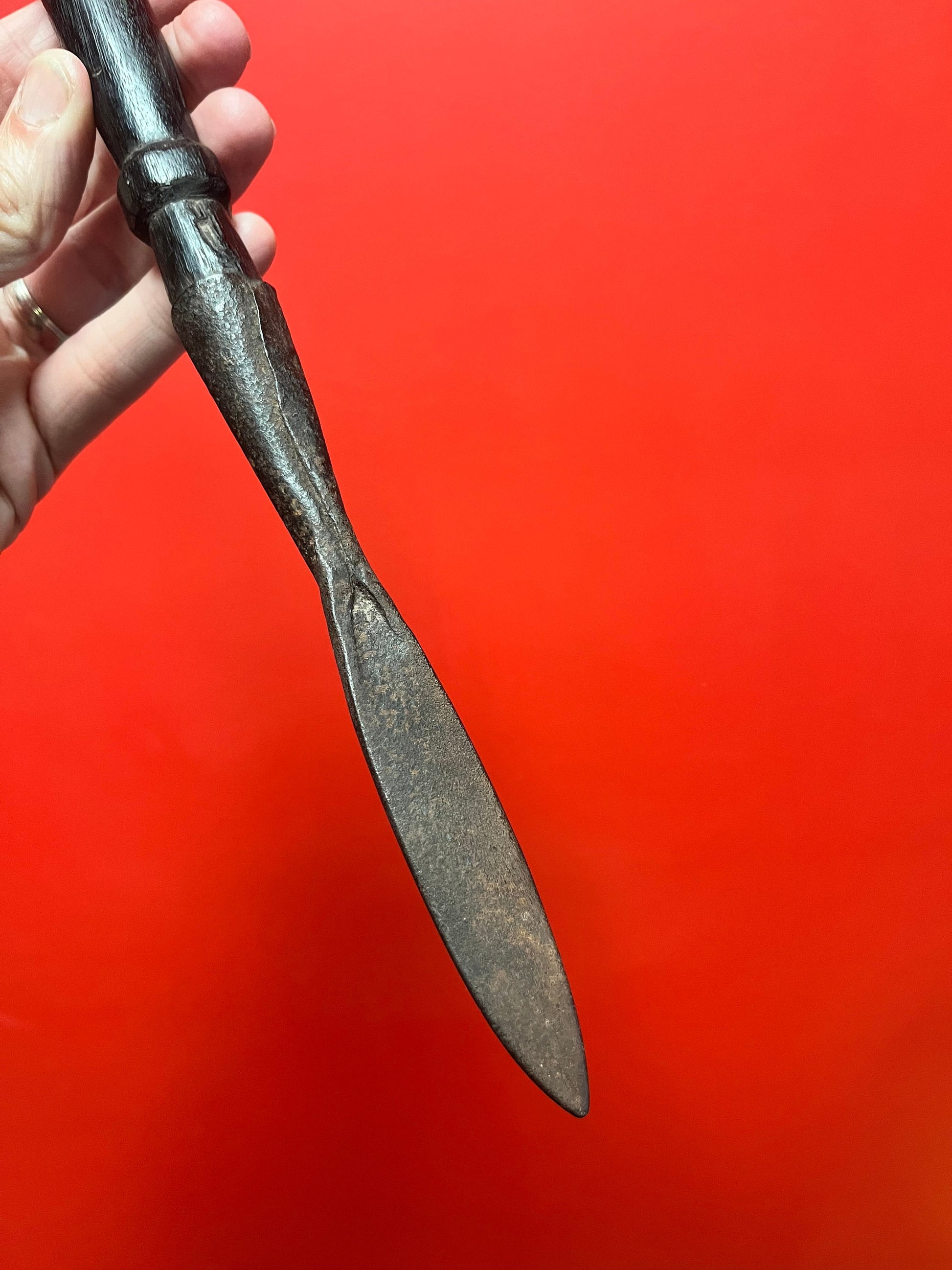 Most unusual and rare 19 century African spear or tool 16 inches long amazing patina wow
