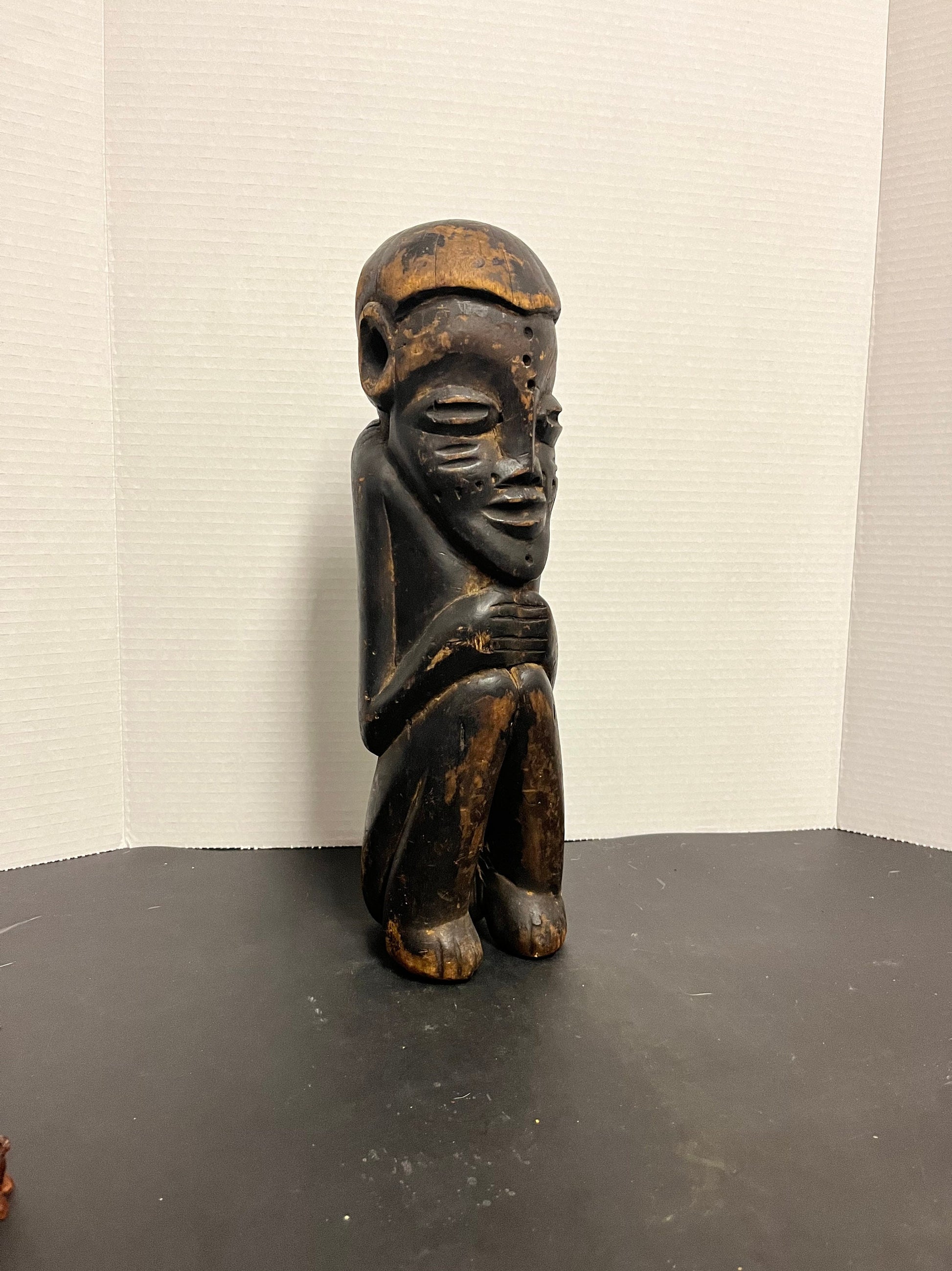 Museum quality 14 inch tall western African seated statue of a man Great Patina and wonderful detail Historical beauty