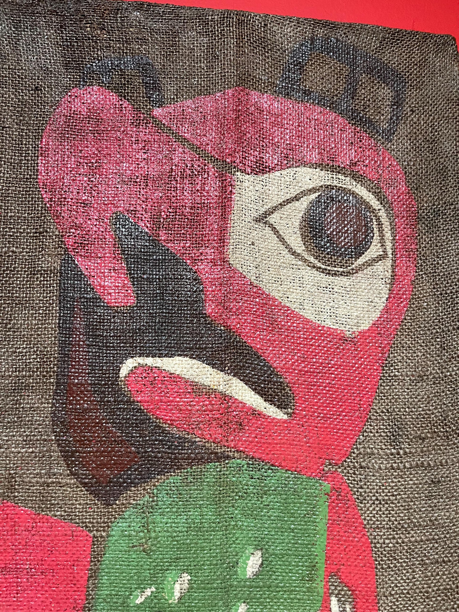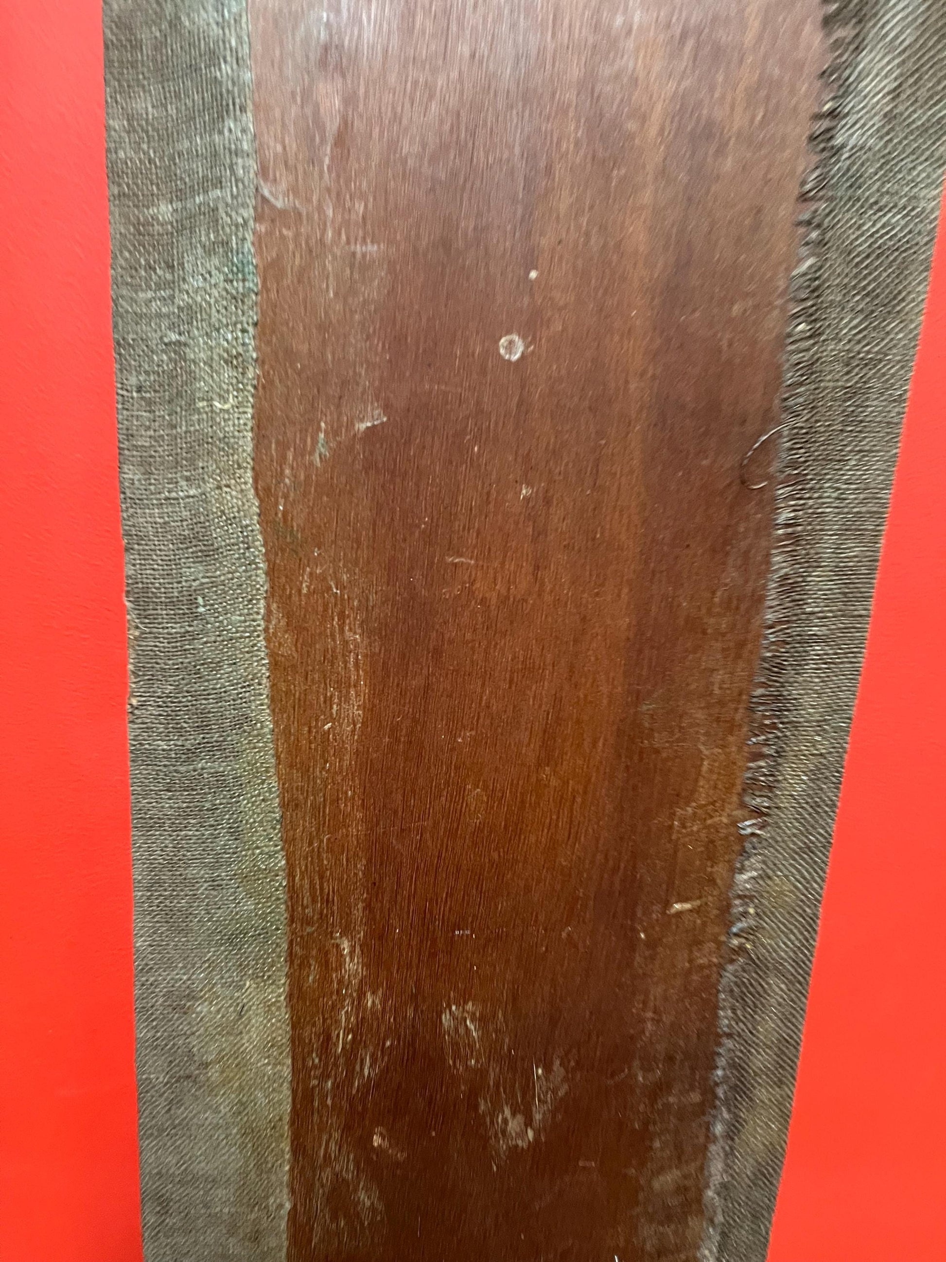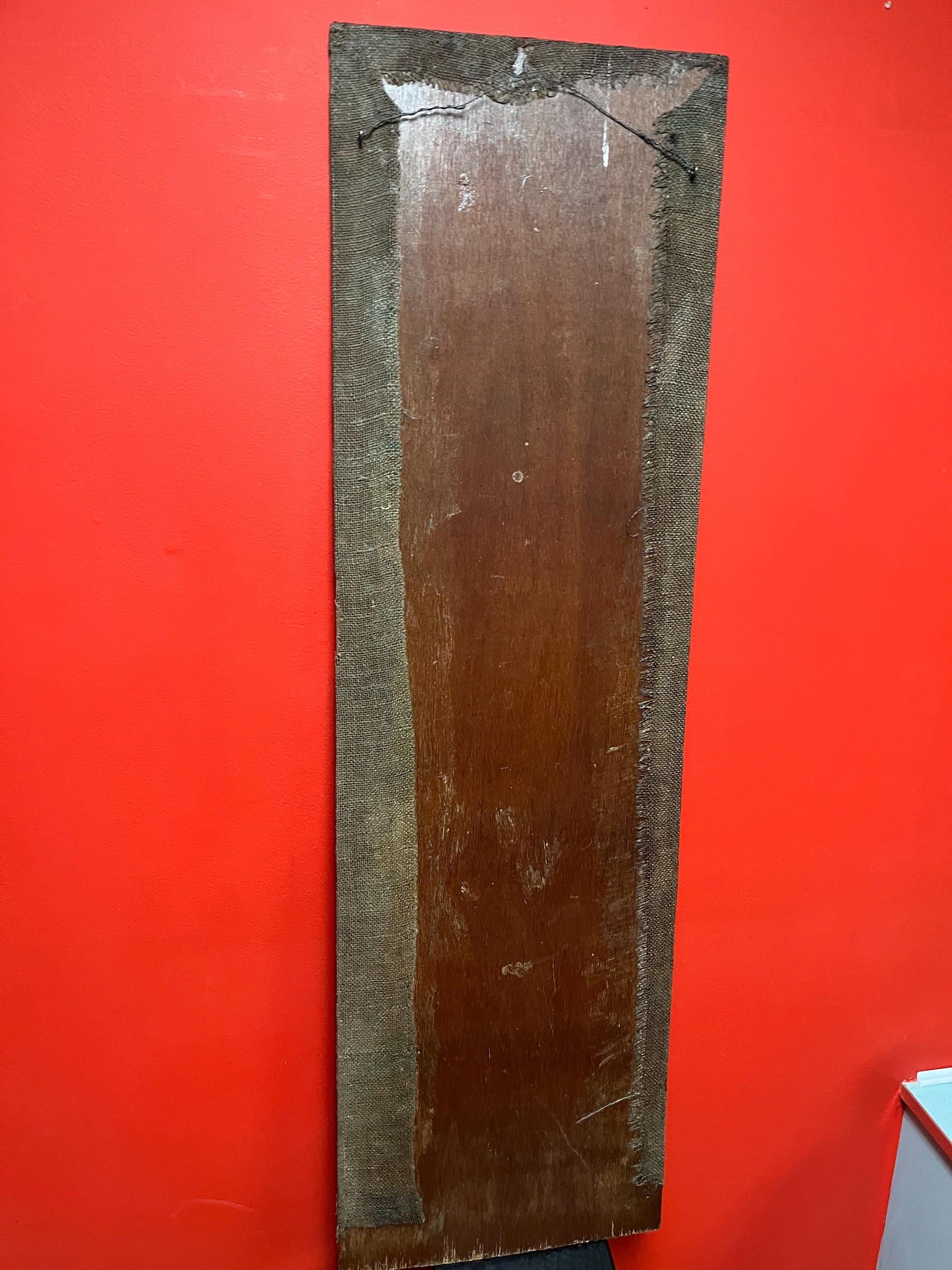 museum quality 19 century indigenous First Nations Pacific Northwest coast painted fabric on wood panel totem pole plaque art -47 x 14
